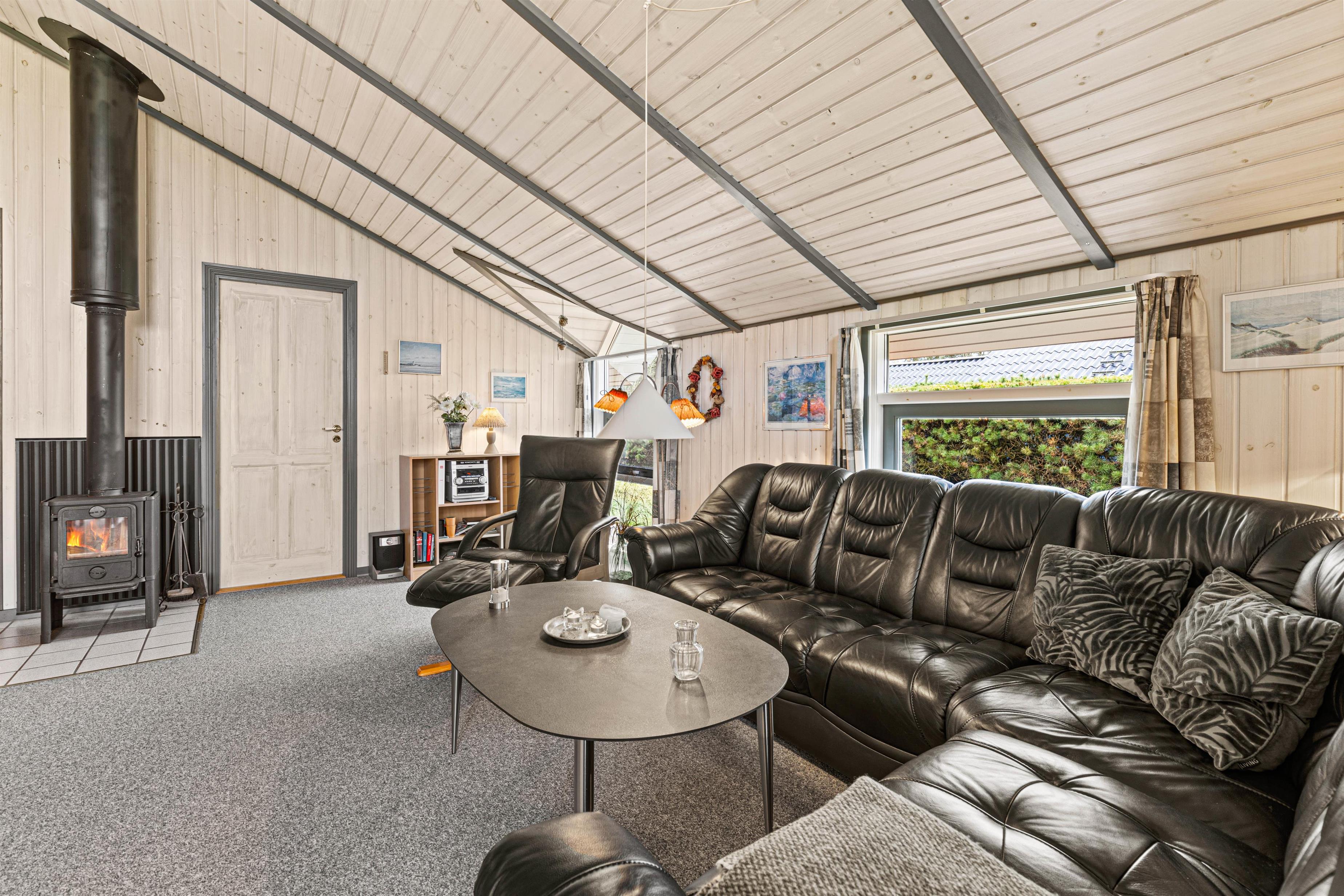 Den venlige og lyse indretning byder jer varmt velkommen i jeres nye feriehjem. Den store opholdsstue bliver centrum for mange herlige familiestunder med fælles madlavning, lækre hjemmelavede måltider rundt om spisebordet og sene aftener på sofaen foran den knitrende brændeovn og med et sidste glas rødvin, mens de sidste timer rinder ud.