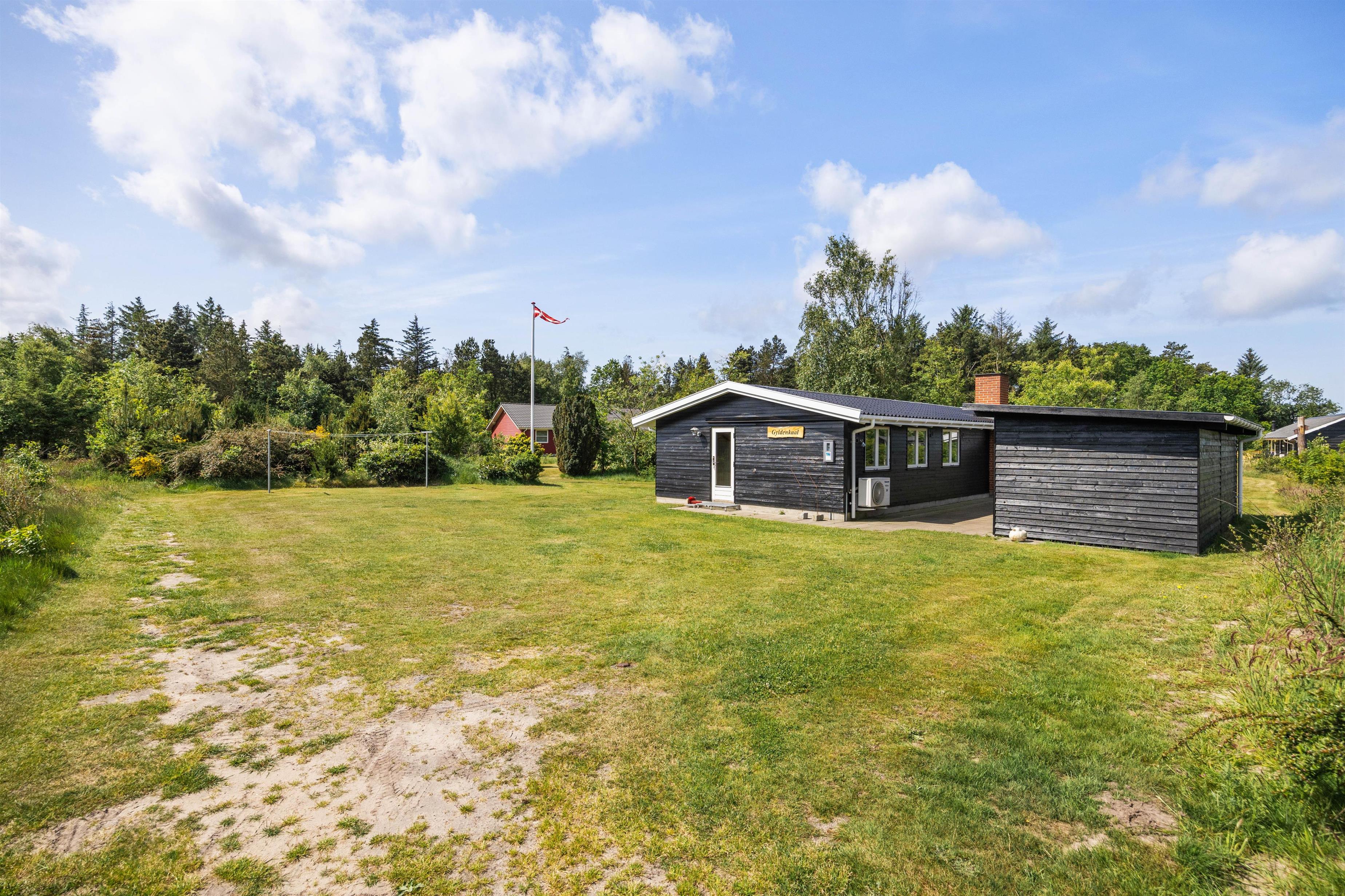 Dette hyggelige sommerhus på Ponyvej 4 i Henneby fremstår både hyggeligt og indbydende. Feriehuset ligger på en herlig grund blandt høje træer midt i den smukke, vestjyske natur. Her kan I tilbringe en afslappende ferie med familien.