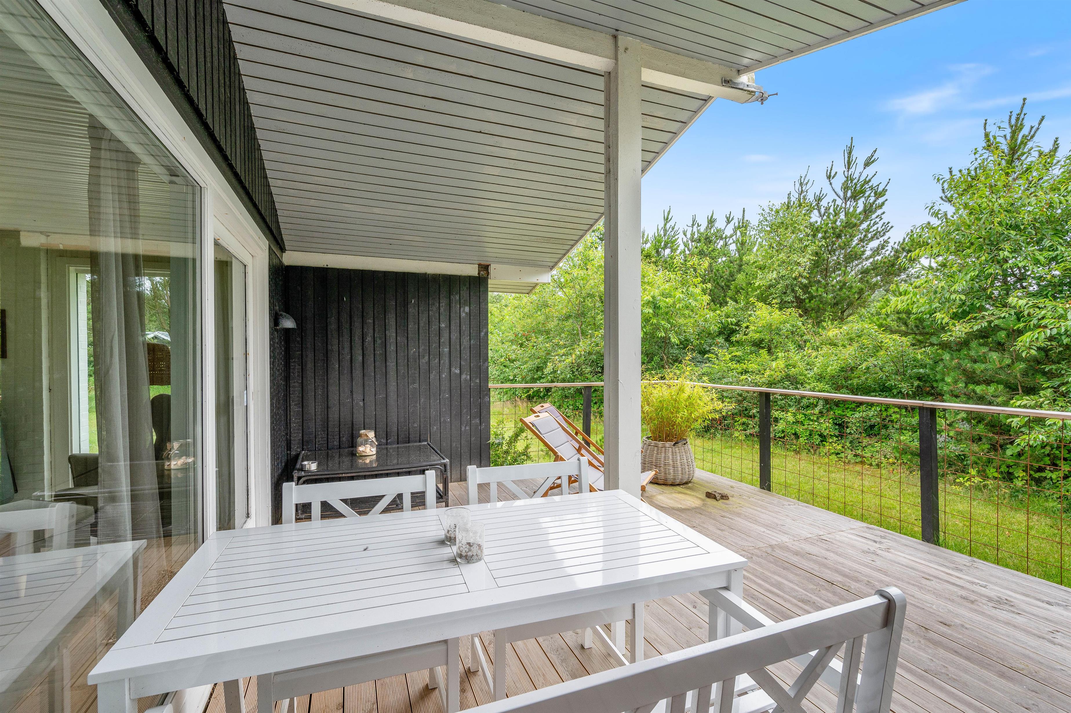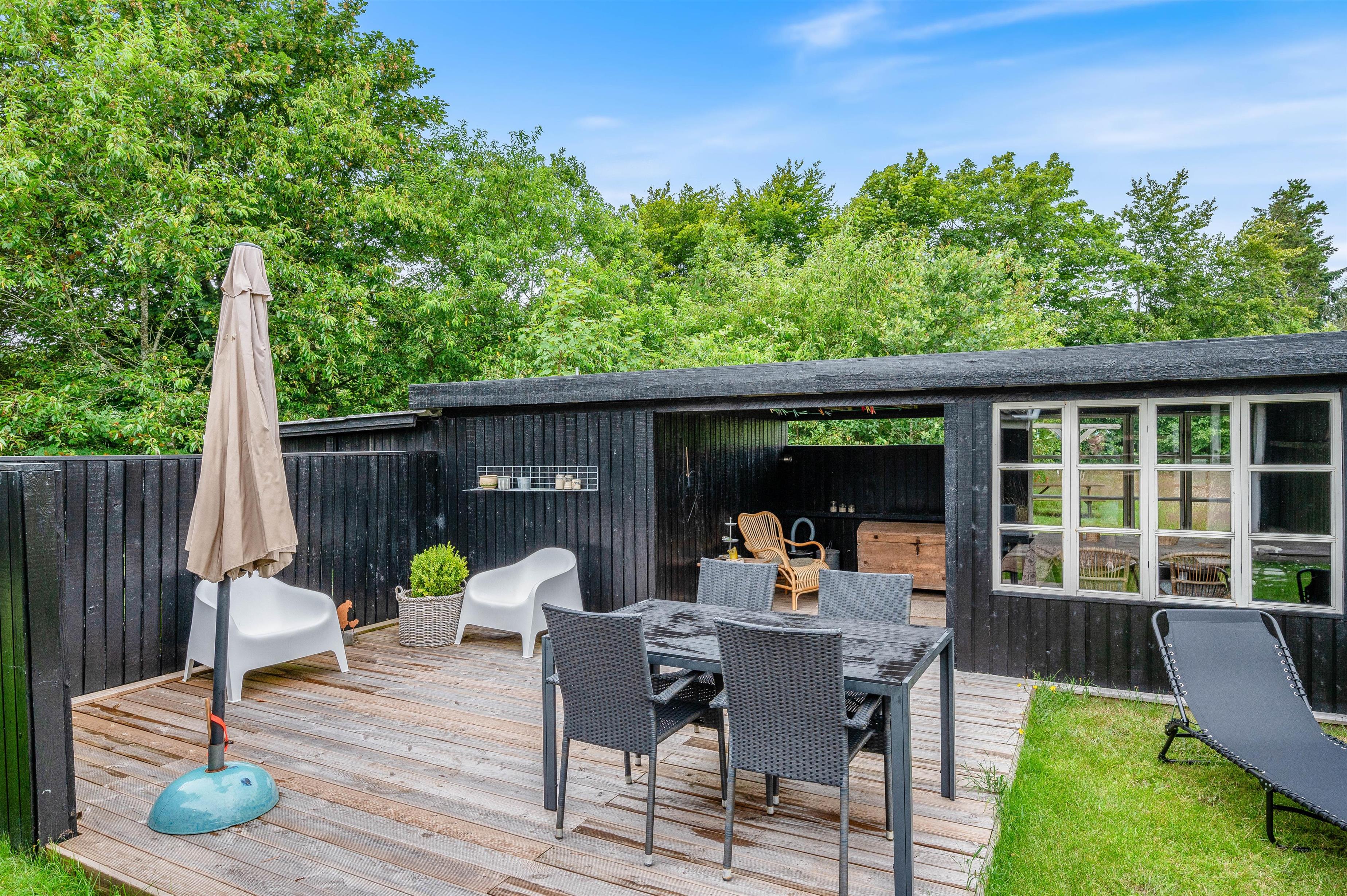 I et traditionelt sommerhus må en brændeovn selvfølgelig ikke mangle. Når I vender tilbage til jeres ferieadresse efter en aktiv dag i den friske luft, er det tid til hygge, og her er brændeovnen med til at have den helt specielle sommerhusstemning. På varme dage kan I gøre jer godt tilpas på terrassen, spise noget lækkert fra grillen og lytte til fuglesang fra de mange forskellige skovfugle, der fortæller hinanden nyhederne i trætoppene.