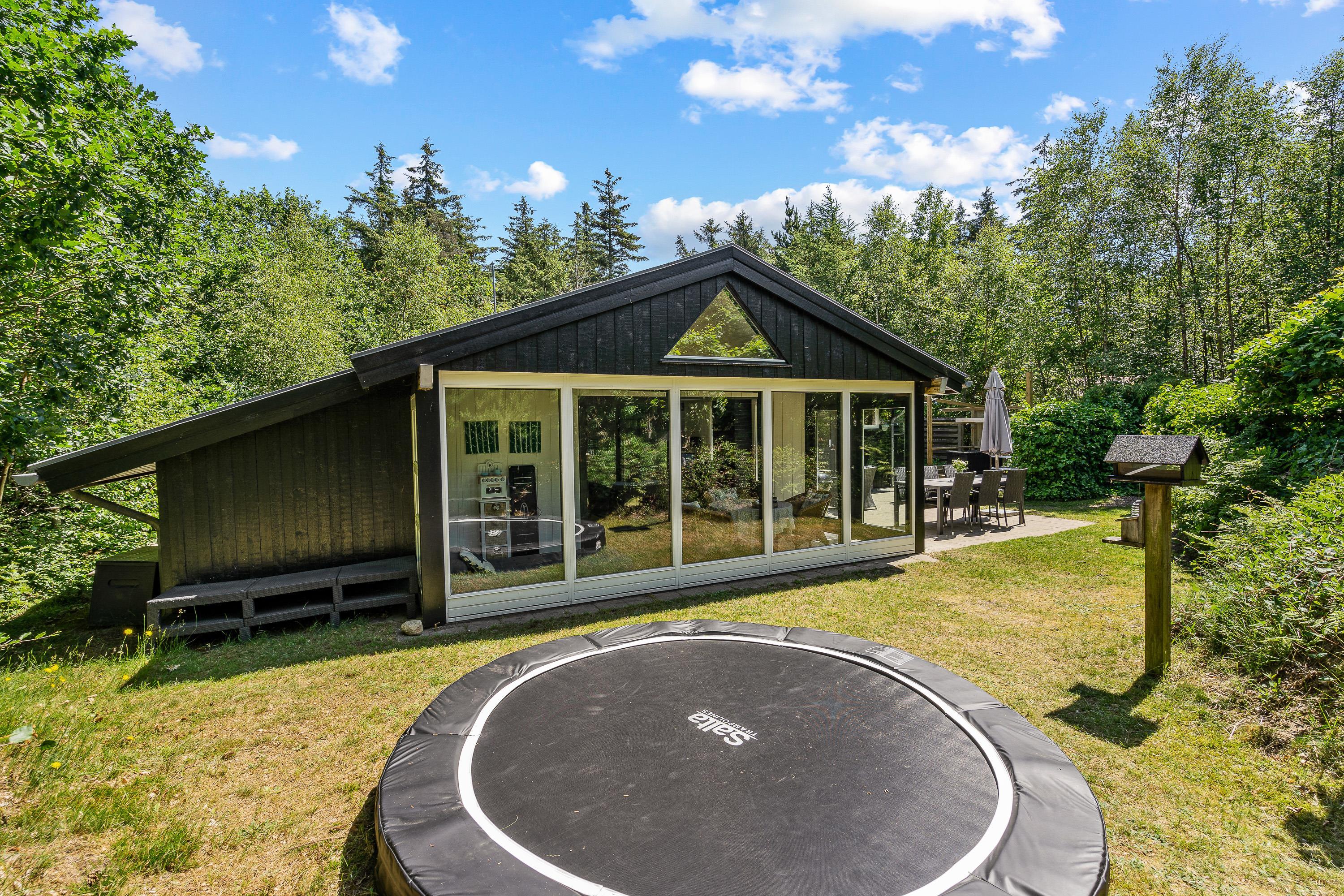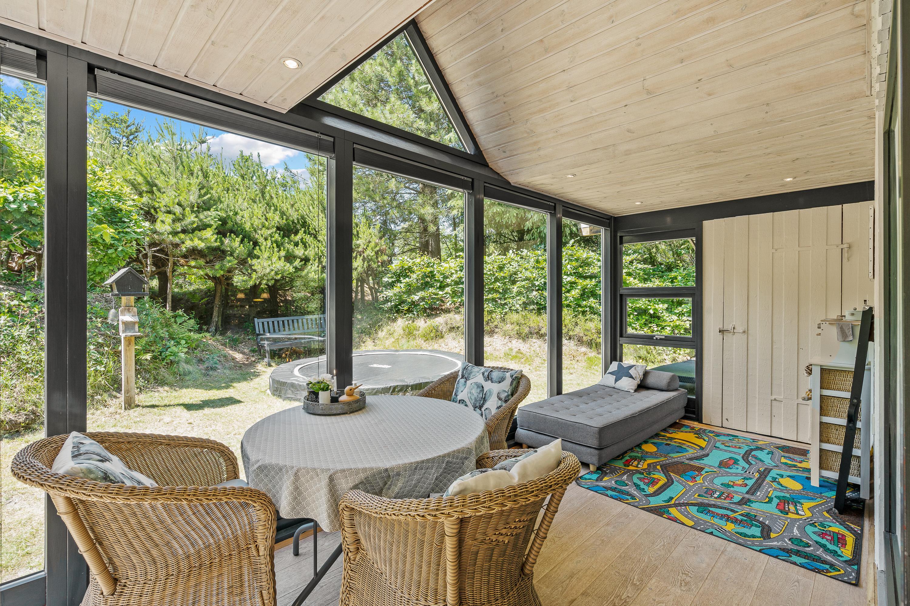 Sommerhuset på Stendyssevej 32 i Henne By er beliggende på en skøn naturgrund, og på udeområdet er der noget for alle, så I sammen kan nyde de solrige og varme feriedage udendørs. Til familiens mindste er der en trampolin i haven, hvor de kan hoppe dagen lang.