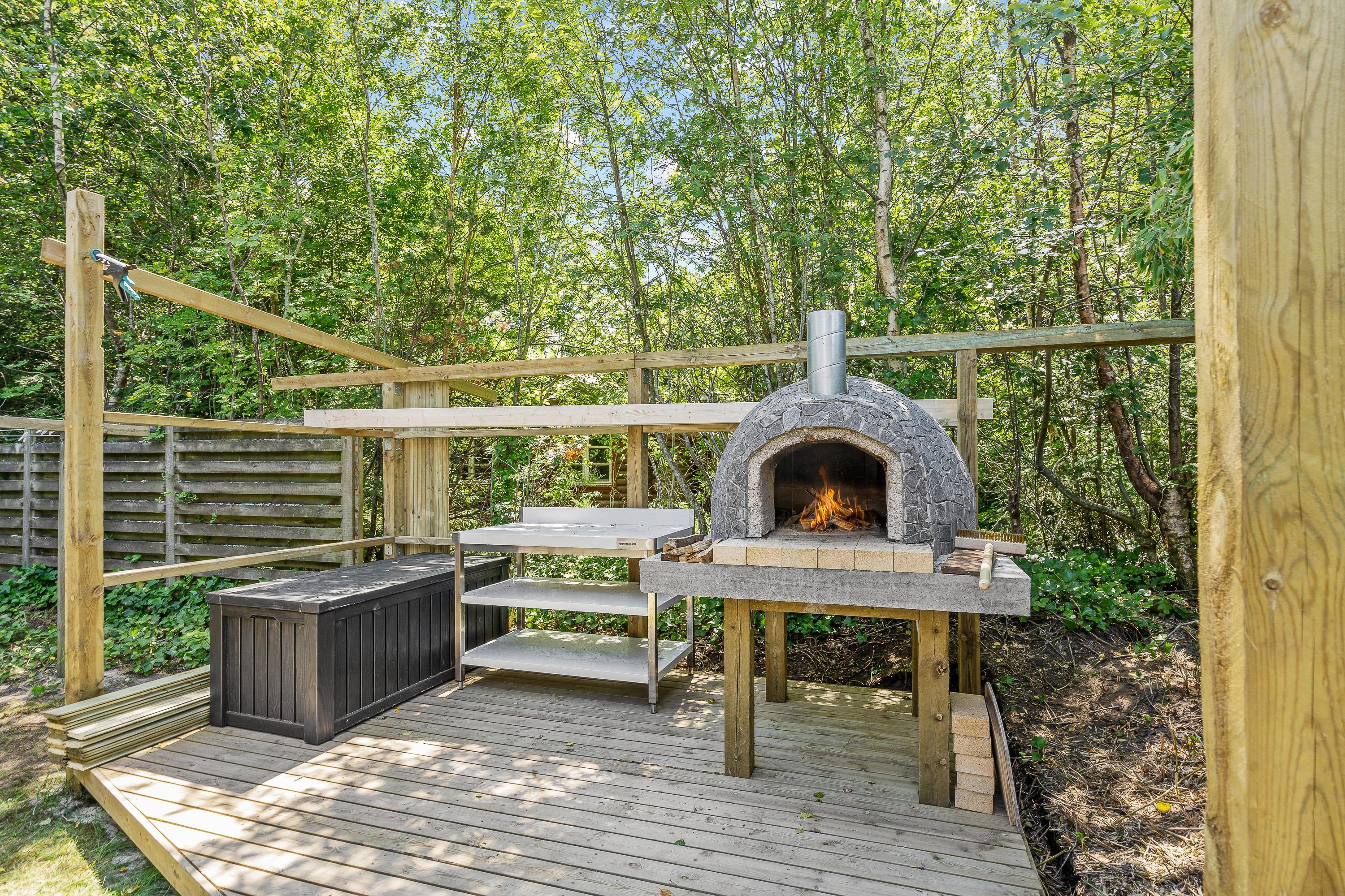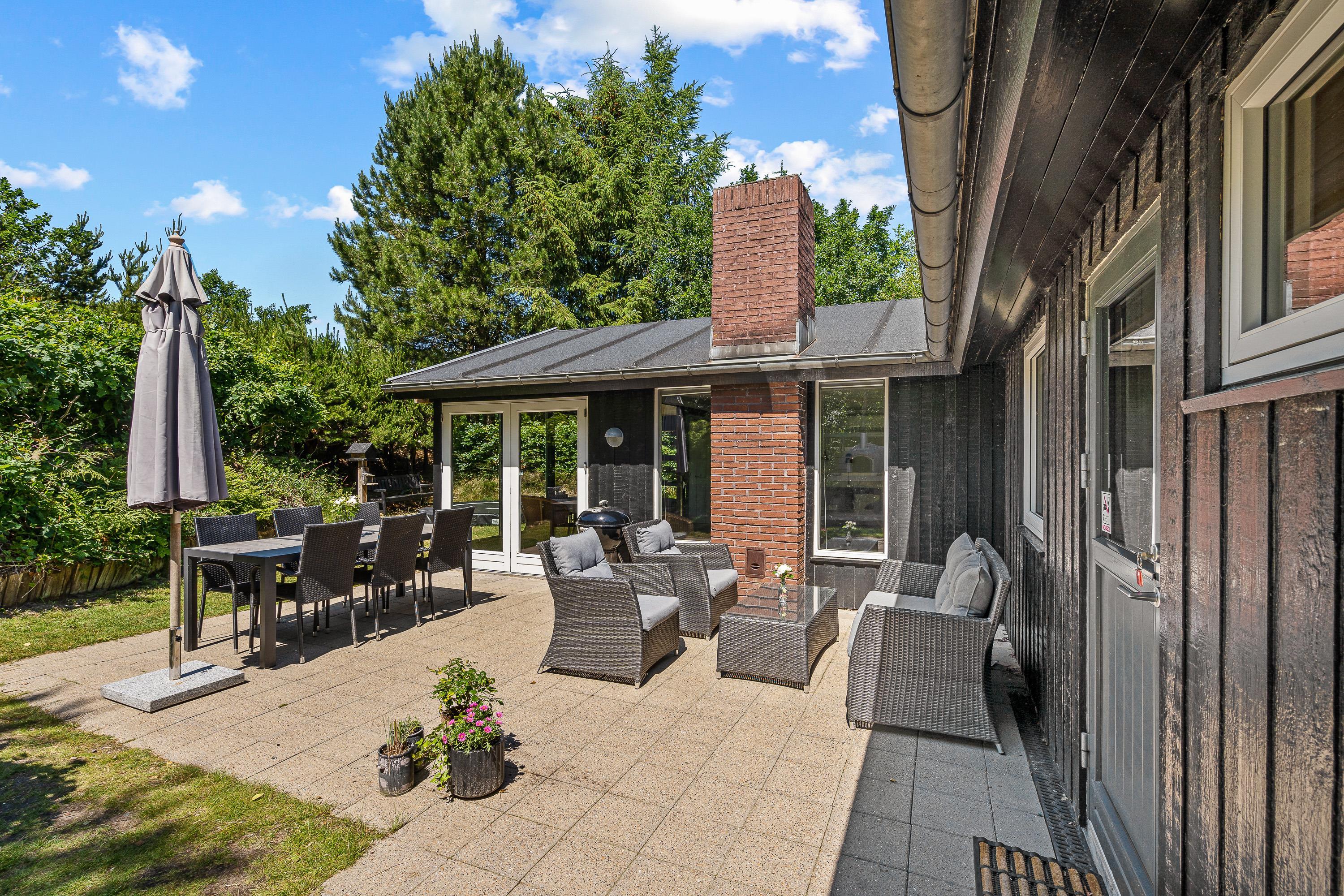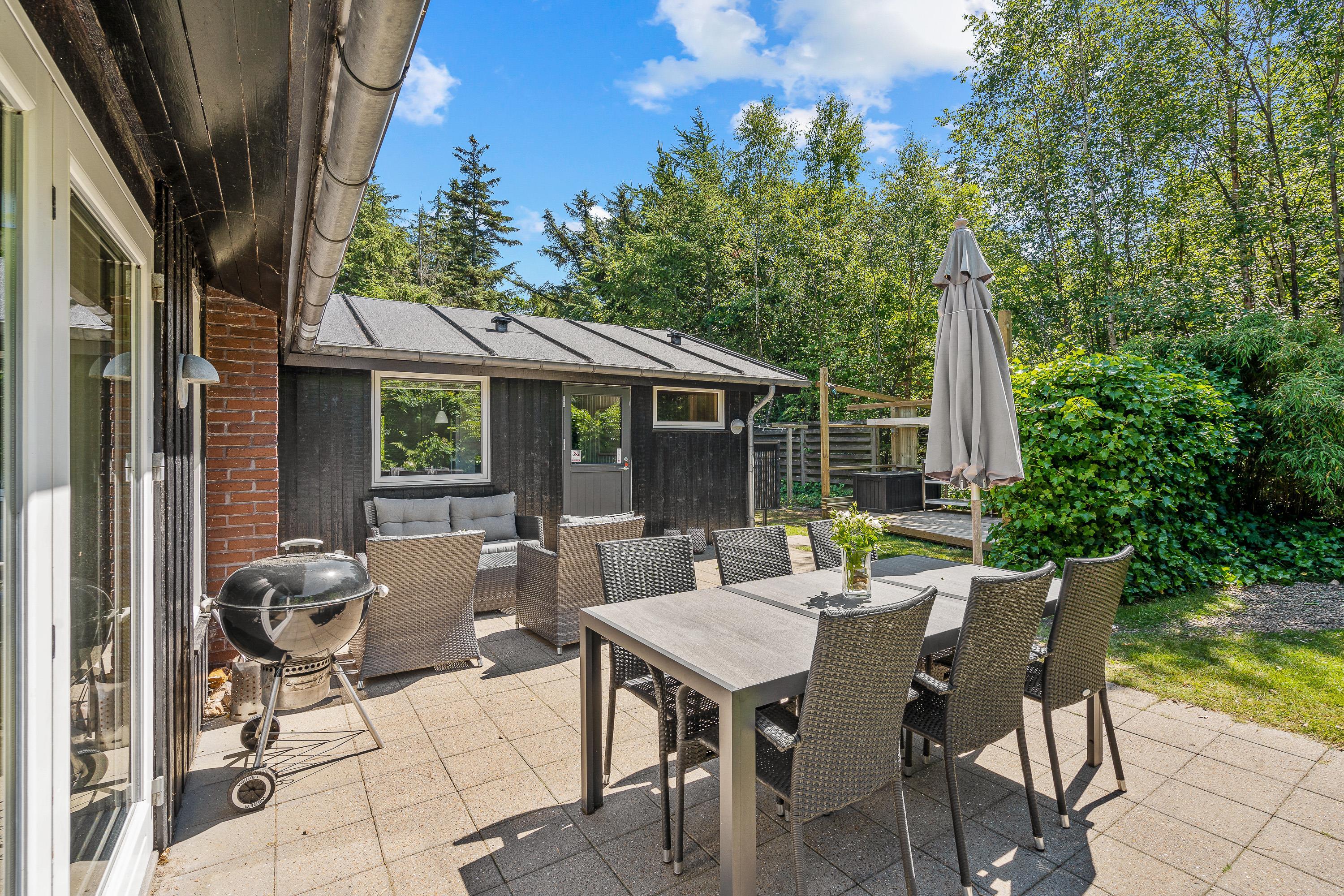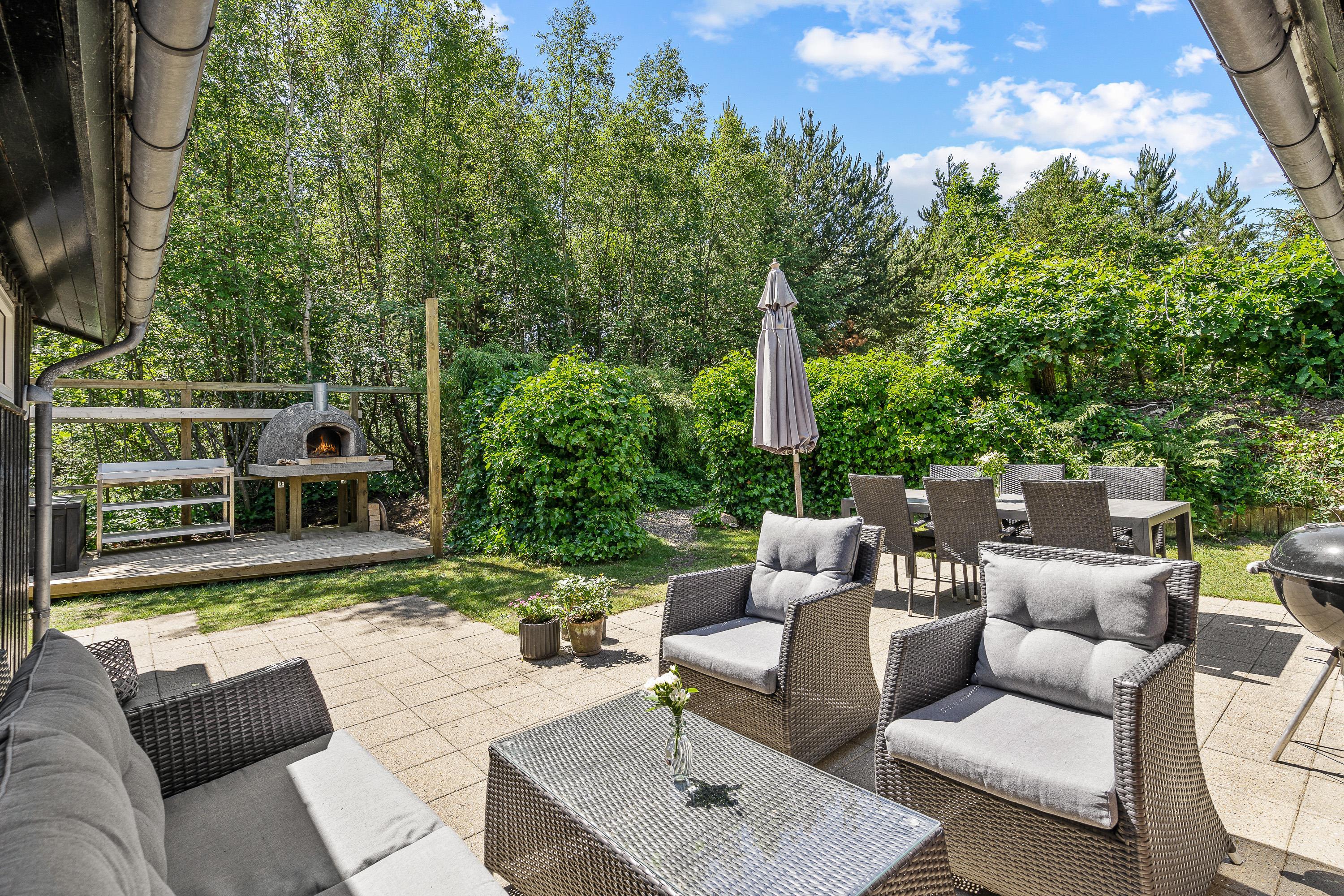 Mens børnene hopper på trampolinen og leger i haven, kan I slappe af på den åbne terrasse, hvor I kan læne jer tilbage i havemøbler og liggestole. Er vejret stadig lunt om aftenen, kan I lave lækker grillmad på gasgrillen, som I kan samles om på terrassen.