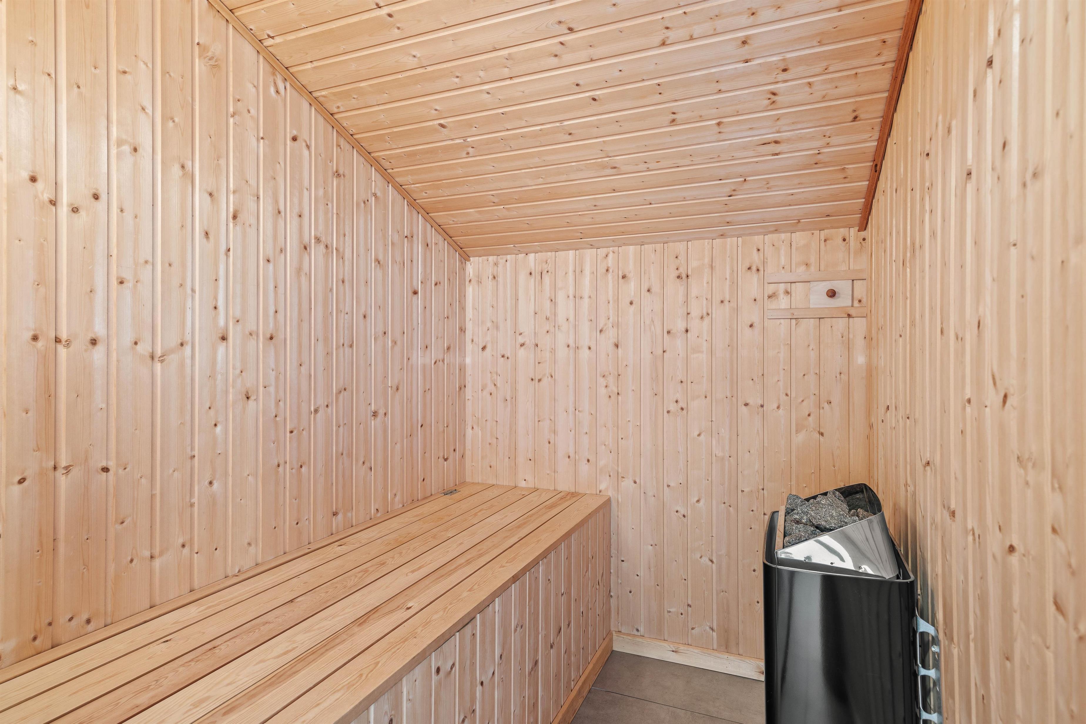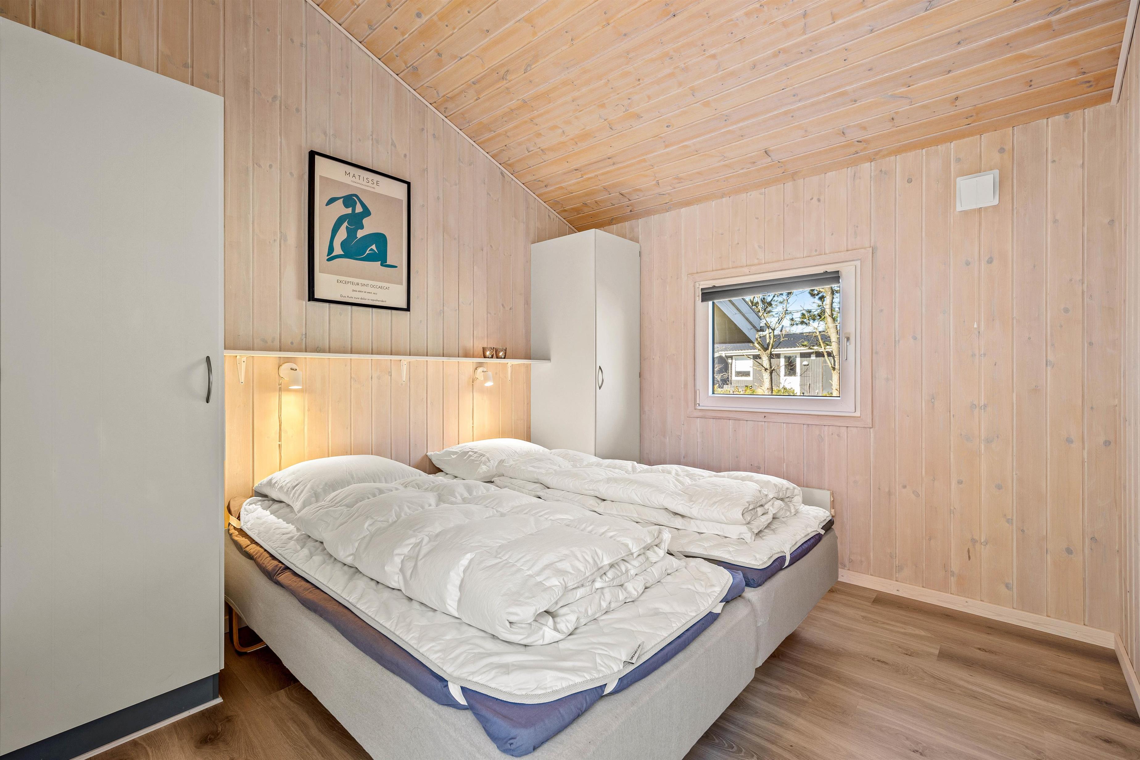 På Thomas Jensens Vej 18 er der rigelig mulighed for en afslappende ferietid for op til 6 personer. Her har I både et gæste-wc og et stort lækkert wellness-badeværelse med gulvvarme, vaskemaskine og tørretumbler. Fyld spaen og nyd en stund i det varme sprudlende vand, eller tænd op i saunaen og bliv varmet godt igennem, inden I får en god nats søvn i en af de brede senge: her er 2 dobbeltsenge (2x90x200) og 2 enkeltsenge at vælge imellem.