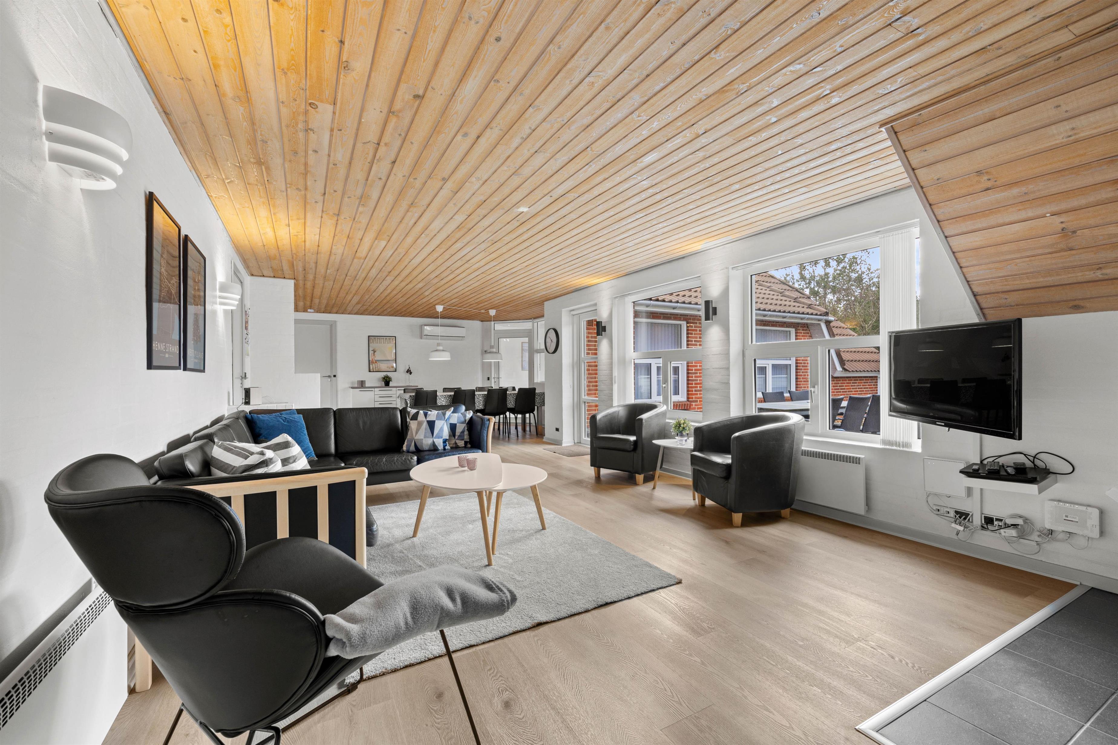 I det flotte skov- og klitområde i Henneby venter jer dette hyggelige sommerhus: Her har I mulighed for at holde en dejlig, afslappende ferie, hvor I kan nyde et veludstyret aktivitetsrum, sauna og udespa.