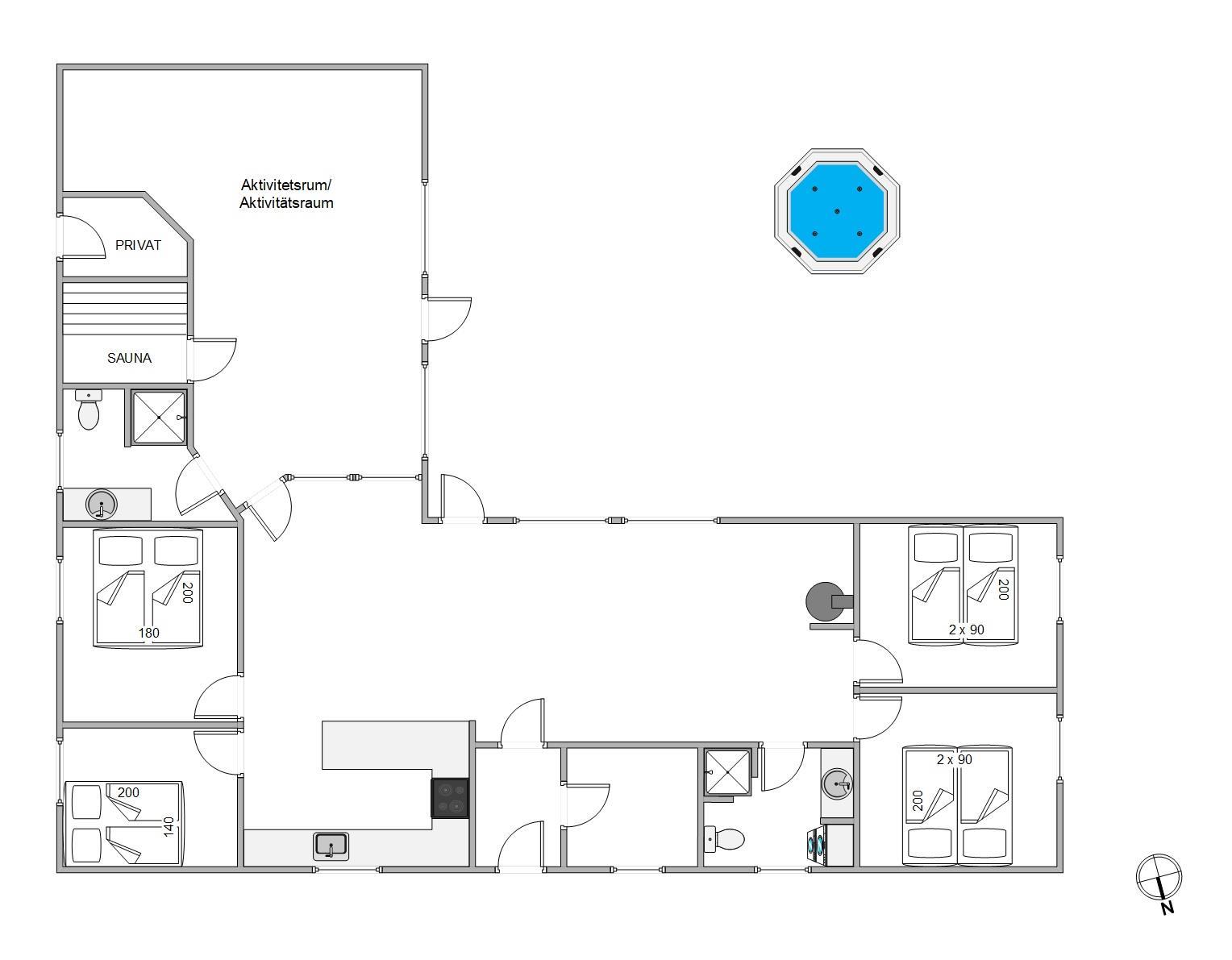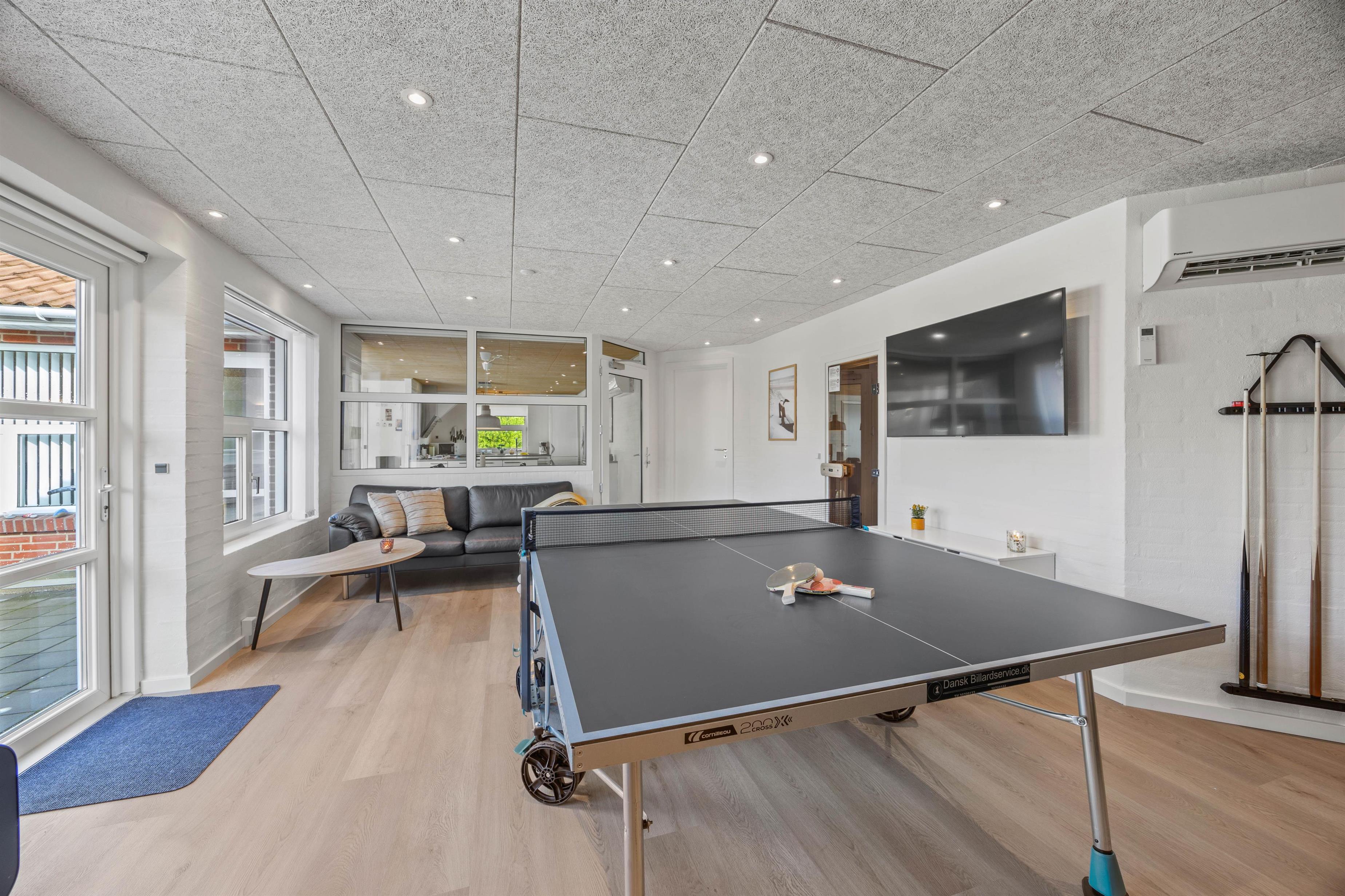 For at fuldende luksusfornemmelsen finder I også et stort aktivitetsrum i dette sommerhus. Dette rum byder på et poolbord, bordtennis, bordfodbold og dart, og er dermed et sandt paradis for især børnene og de barnlige sjæle.