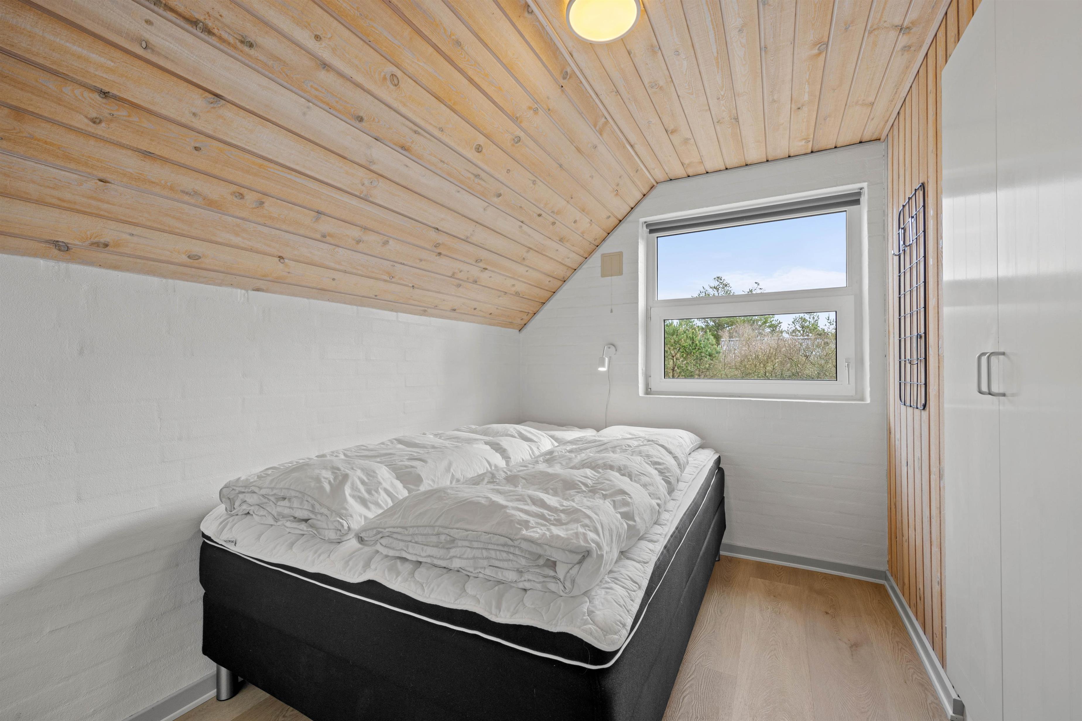 Sommerhusets gode soveværelser er fordelt over 4 værelser med 2 enkeltsenge i hver. Hver af rummene har trælaminat på gulvene.