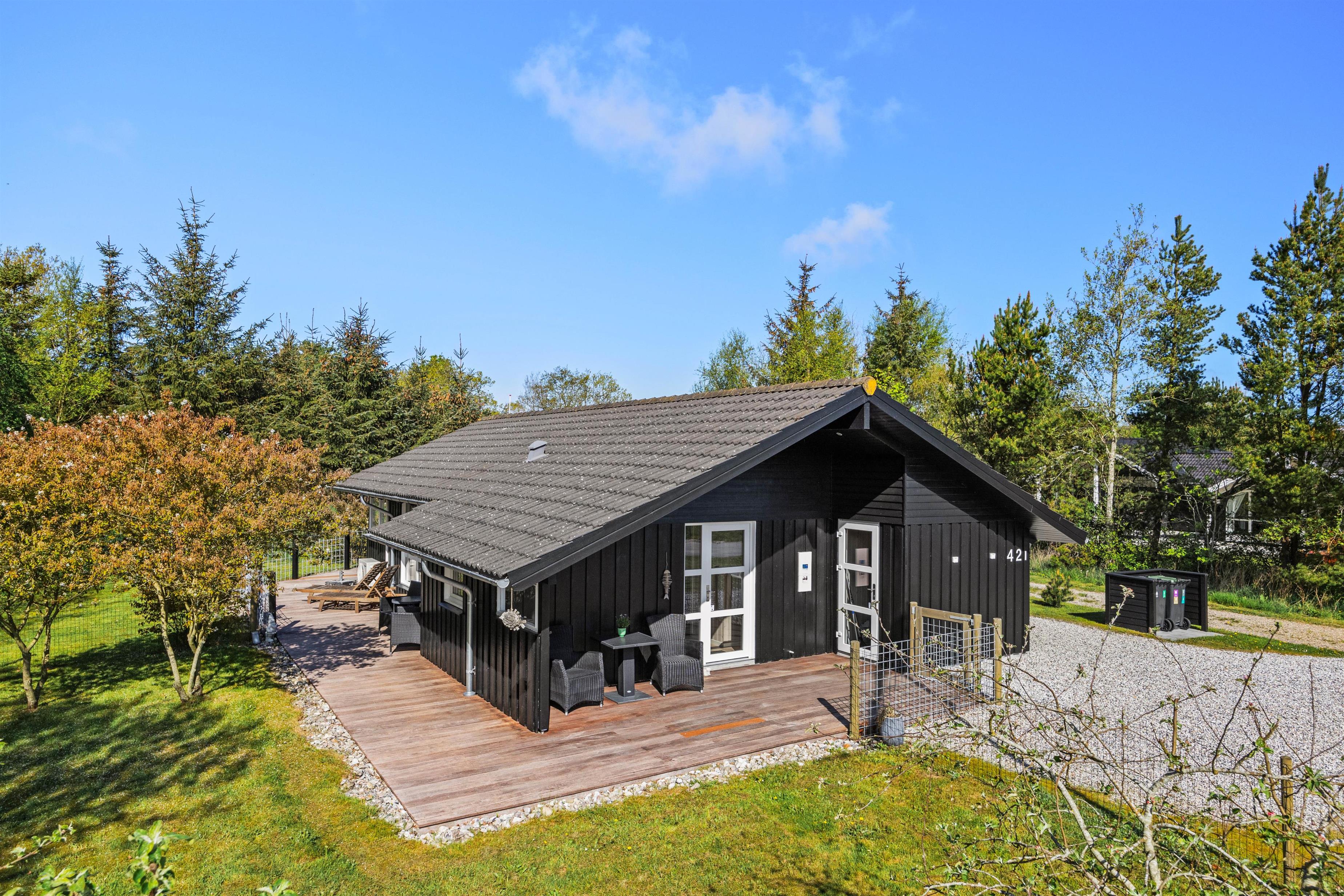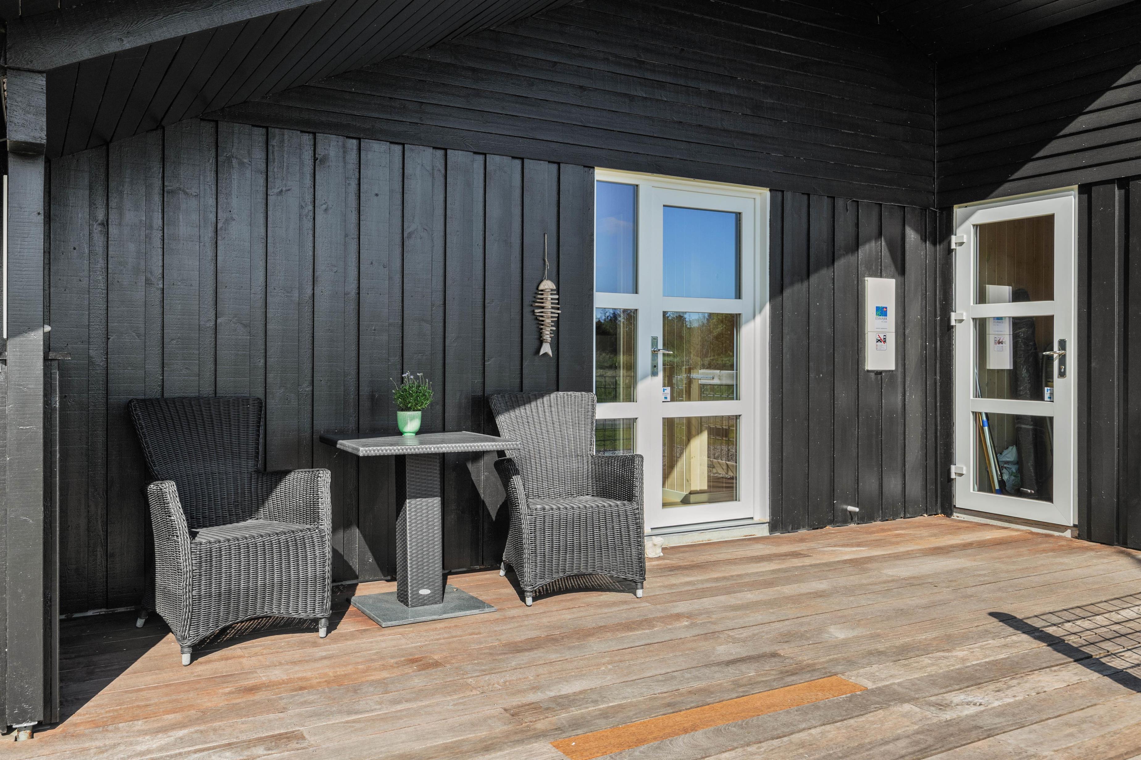 Og om aftenen kan I tænde op i gasgrillen og nyde både aftensmaden og aftensolen på den afskærmede og delvis overdækkede vestvendte træterrasse, som I kan træde ud på direkte fra sommerhusets alrum.