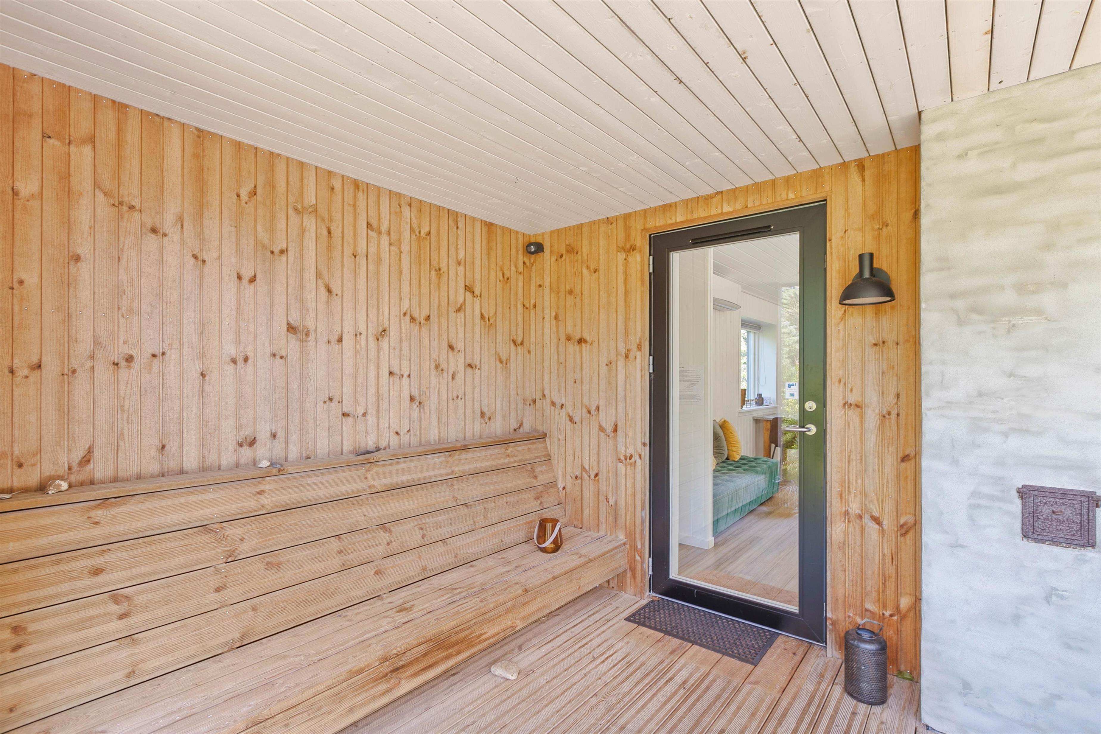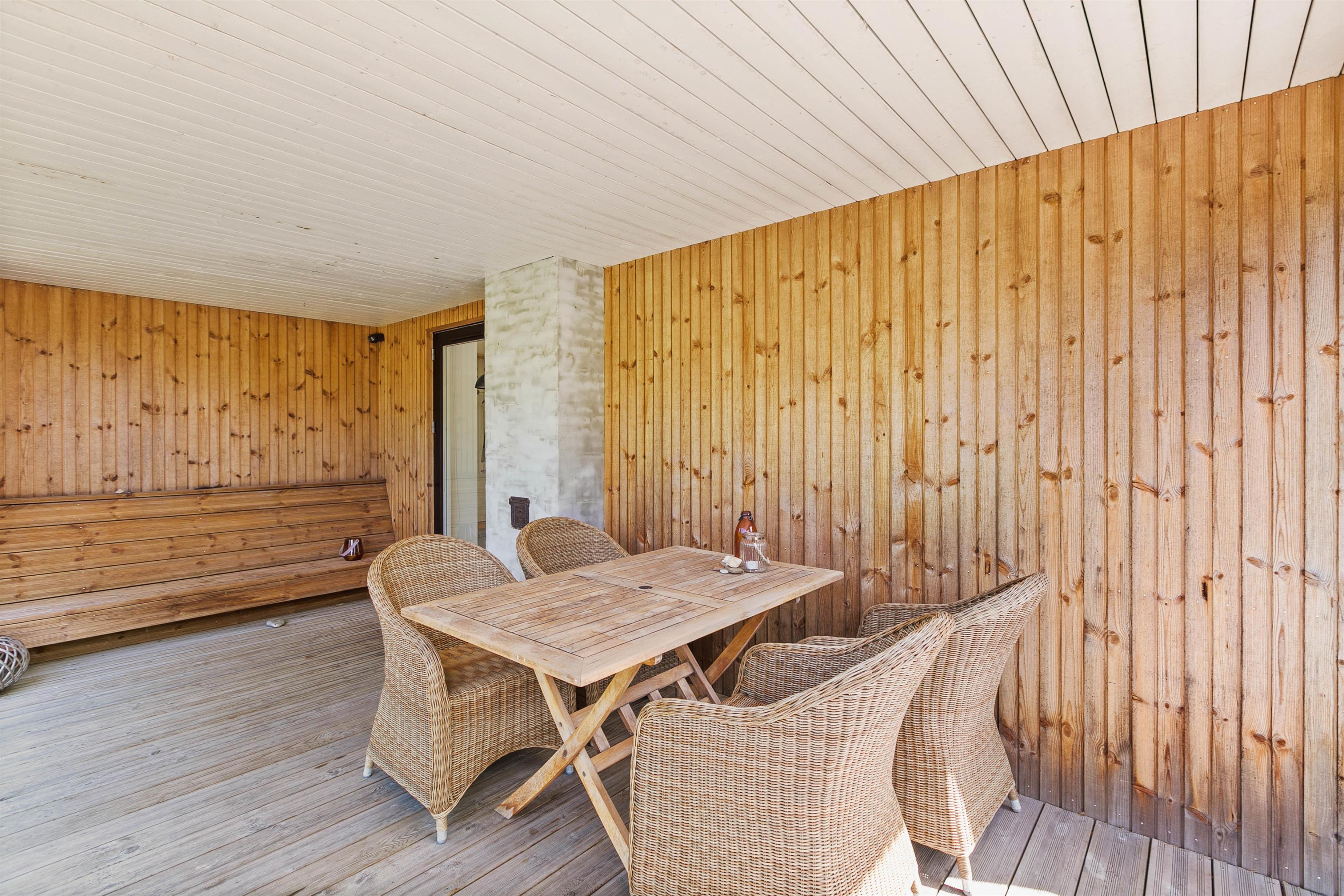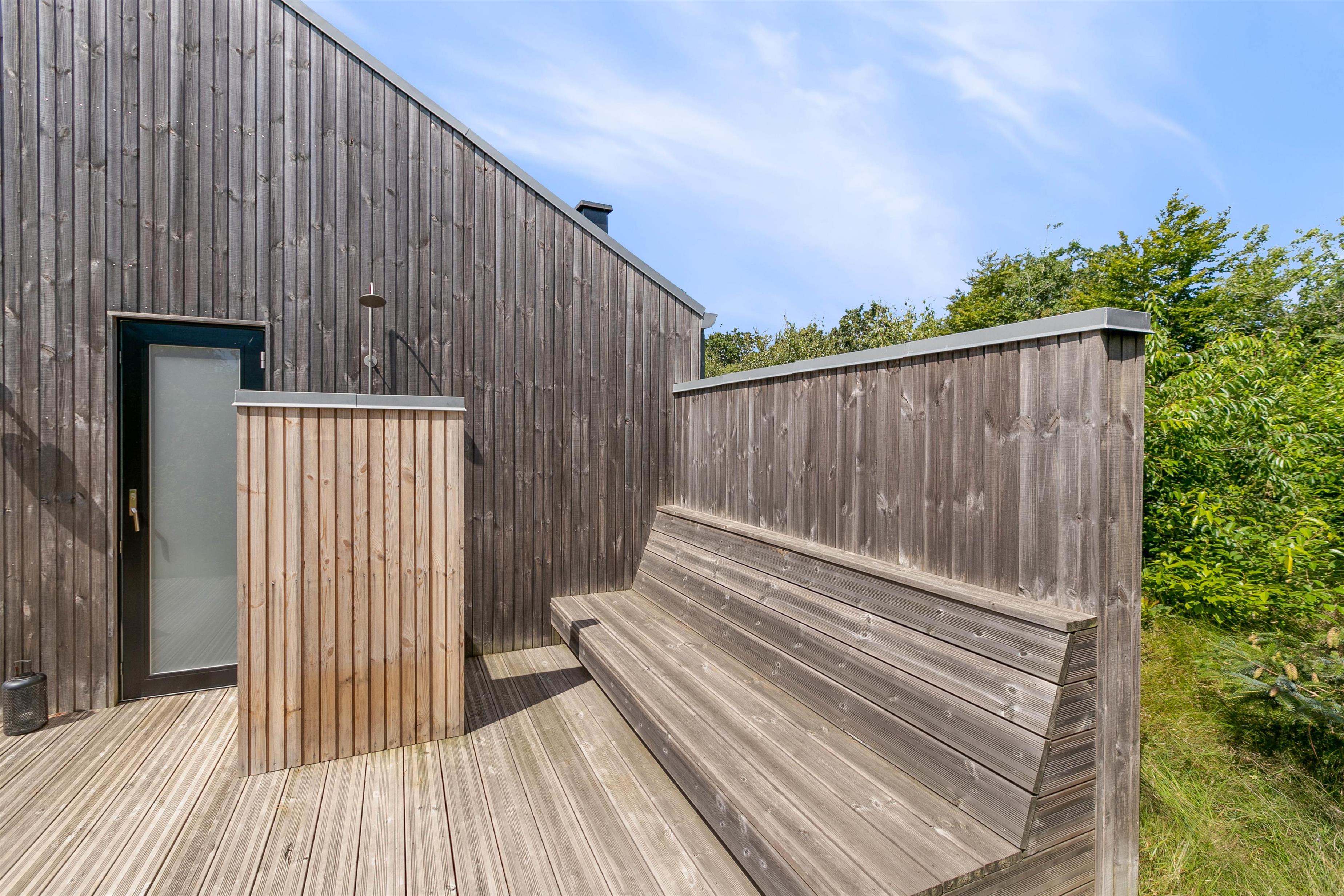 Der er masser af plads til at nyde de dejlige sommerdage på den store terrasse, der både har en overdækket, afskærmet og åben del - naturligvis udstyret med gode møbler og en grill. Et særligt highlight er det lækre vildmarksbad, hvor der rigtigt kan slappes af. Også børnene vil nyde at lege udenfor, hvor de har et legetårn eller de kan udforske den omkringliggende natur. Og skulle I have brug for at køle lidt af, kan I benytte den skønne udebruser*, der byder på både koldt og varmt vand.
