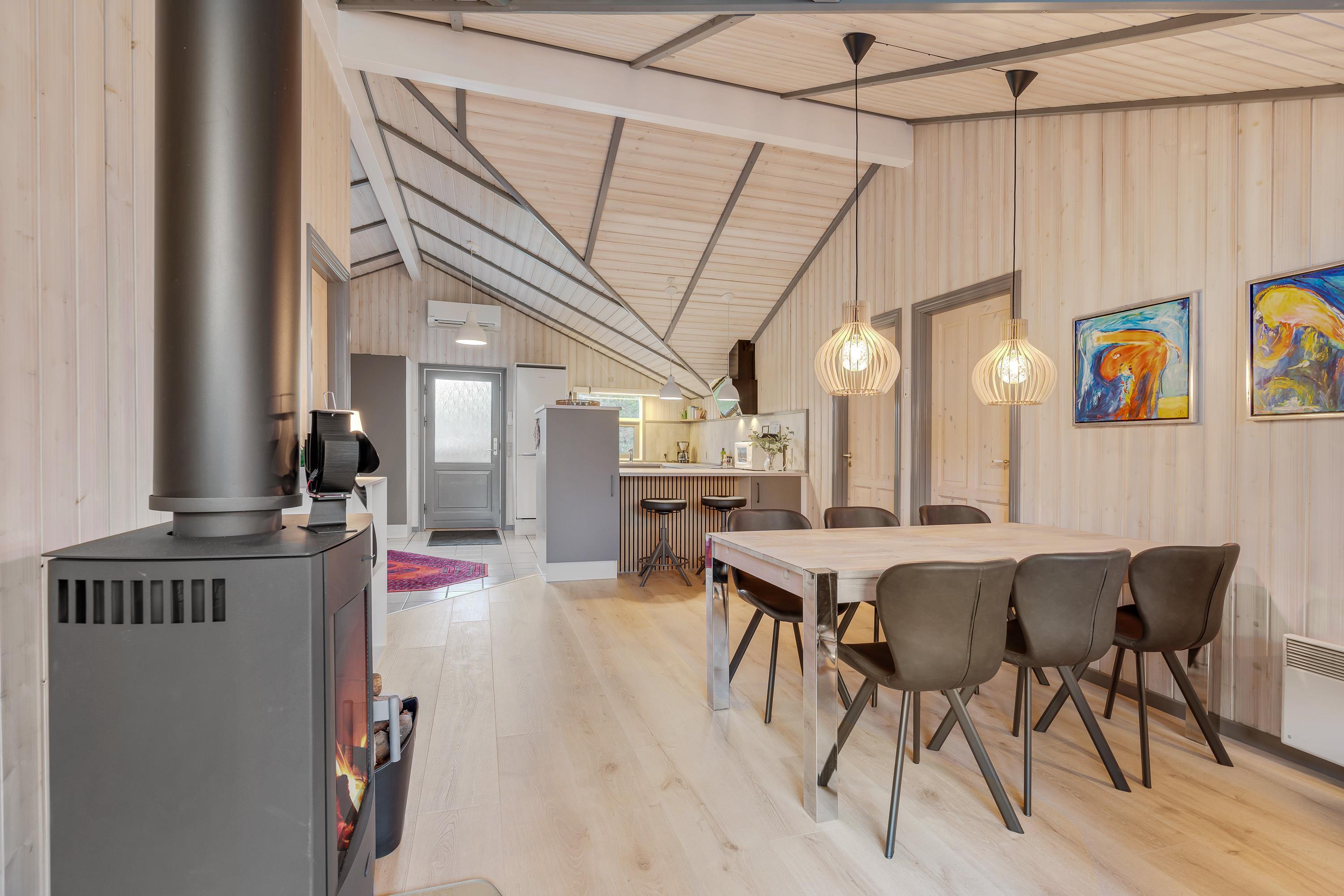 Dette fine feriehus i Henne er veludstyret og har 4 soveværelser, 1 badeværelse med spa og sauna og 1 gæstetoilet. Feriehuset blev renoveret i efteråret/vinteren 2021/2022, så I kan være sikker på, at alle detaljerne er på sin plads. Med plads til op til 7 personer og jeres hund kan I nyde jeres ferie her og ligge på solvognen på den lukkede terrasse helt uden at bekymre jer om, at hunden løber væk. Henne Strands bymidte med butikker, cafeer og restauranter ligger kun ca. 2 kilometer fra feriehuset, og med cykelstien, der starter lige uden for feriehuset, kan I nemt tage cyklen til Henne Strand. Vil I have ungerne med til vandet, er der kun ca. 10 kilometer til den familie- og børnevenlige strand ved Børsmose, hvor I kan køre bilen helt ned på stranden.