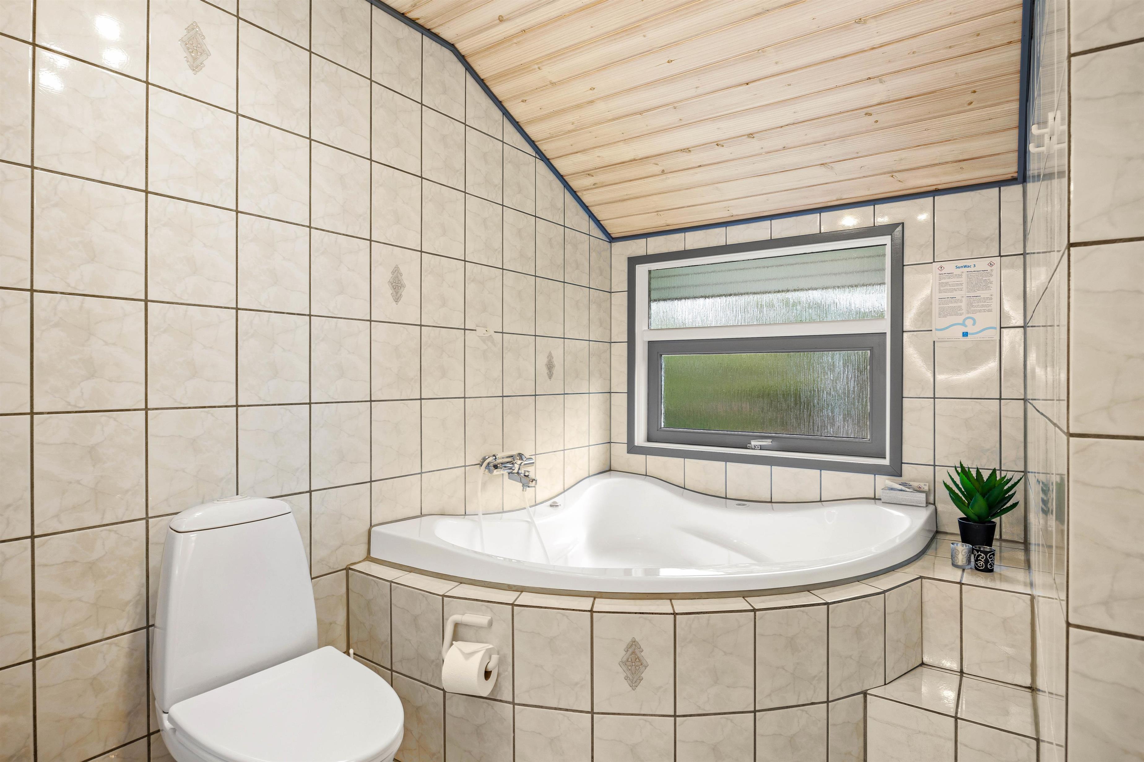 Feriehusets badeværelse og gæstetoilet er begge med gulvvarme, og en vaskemaskine og tørretumbler gør ferien ekstra afslappet.