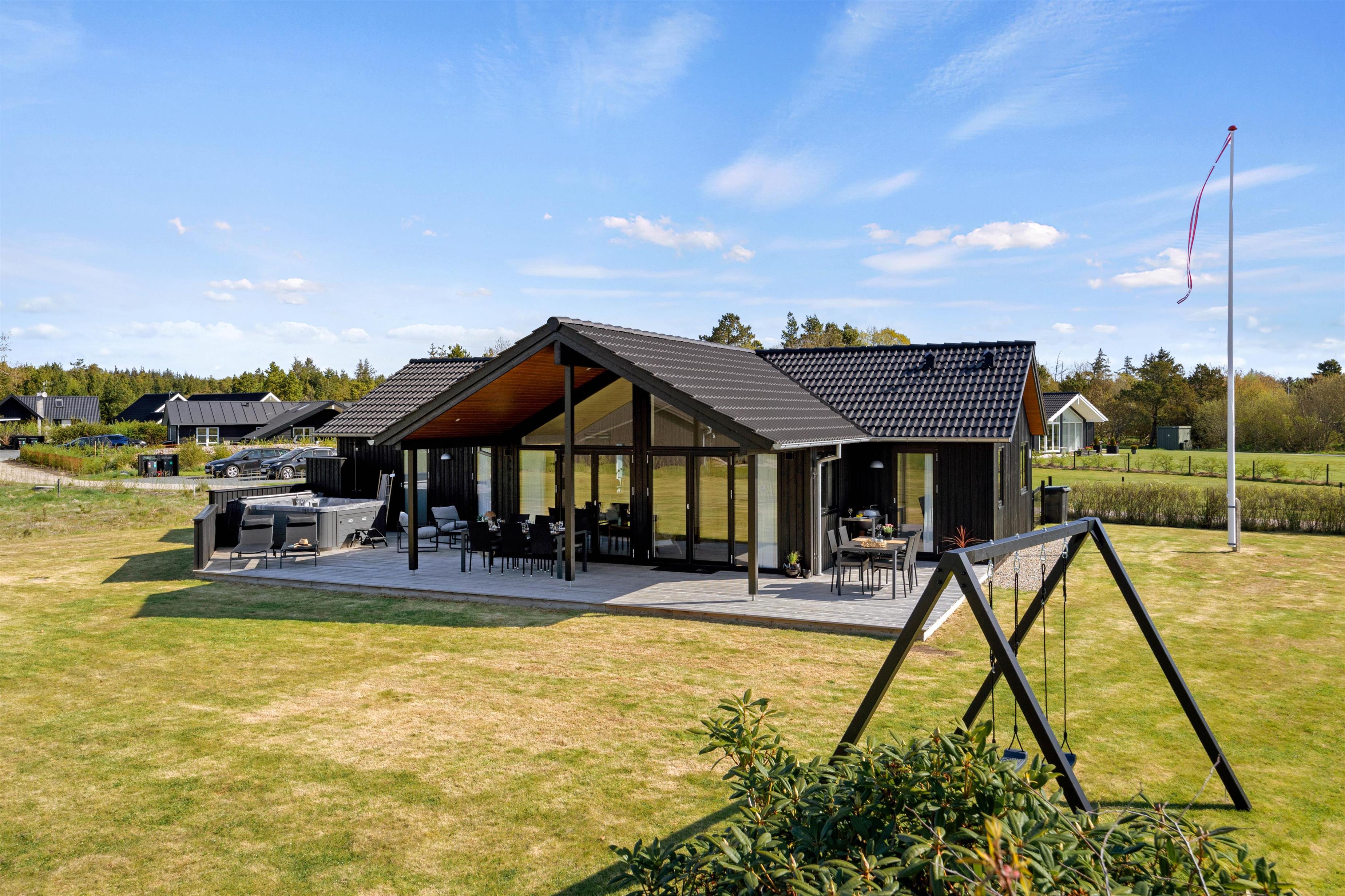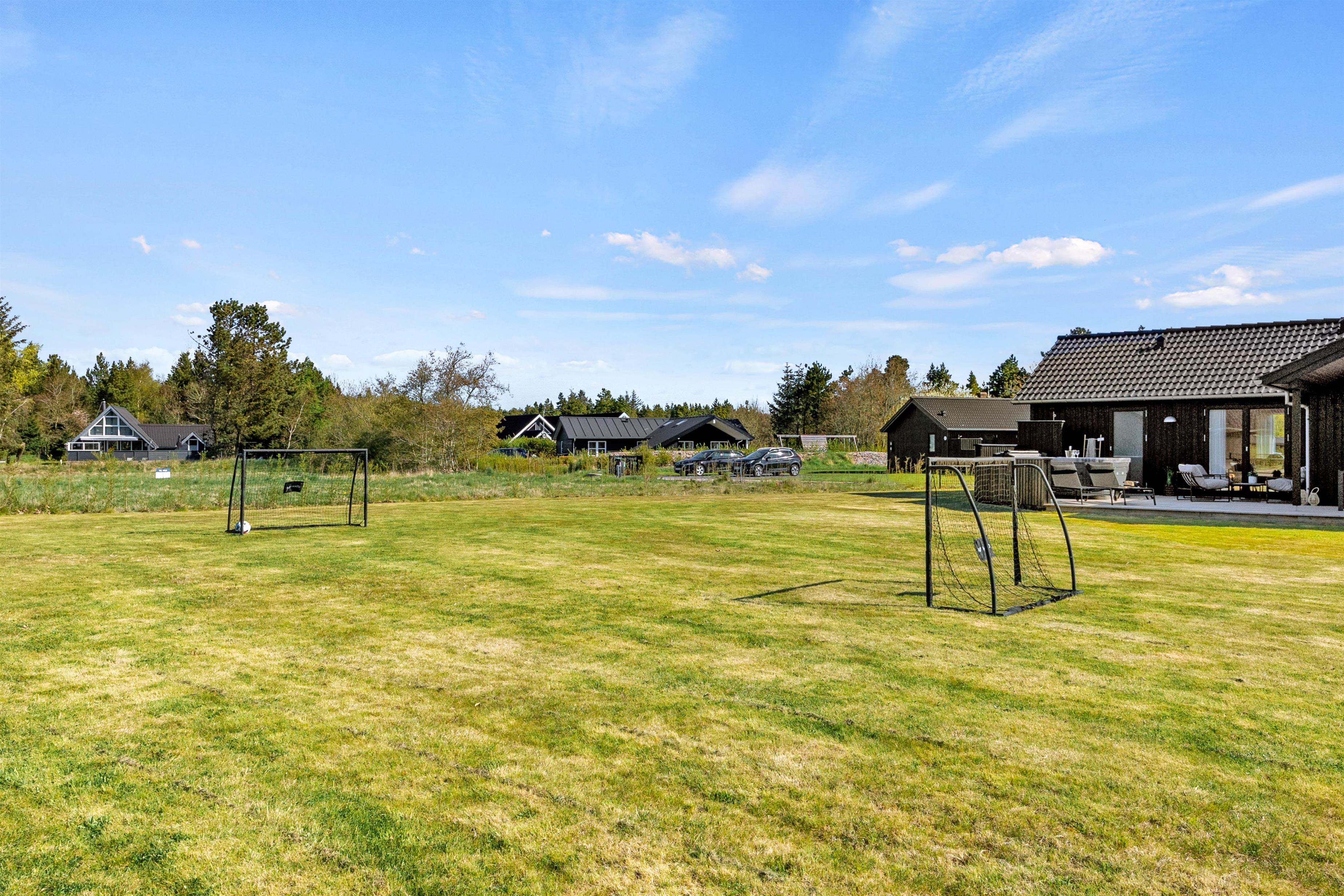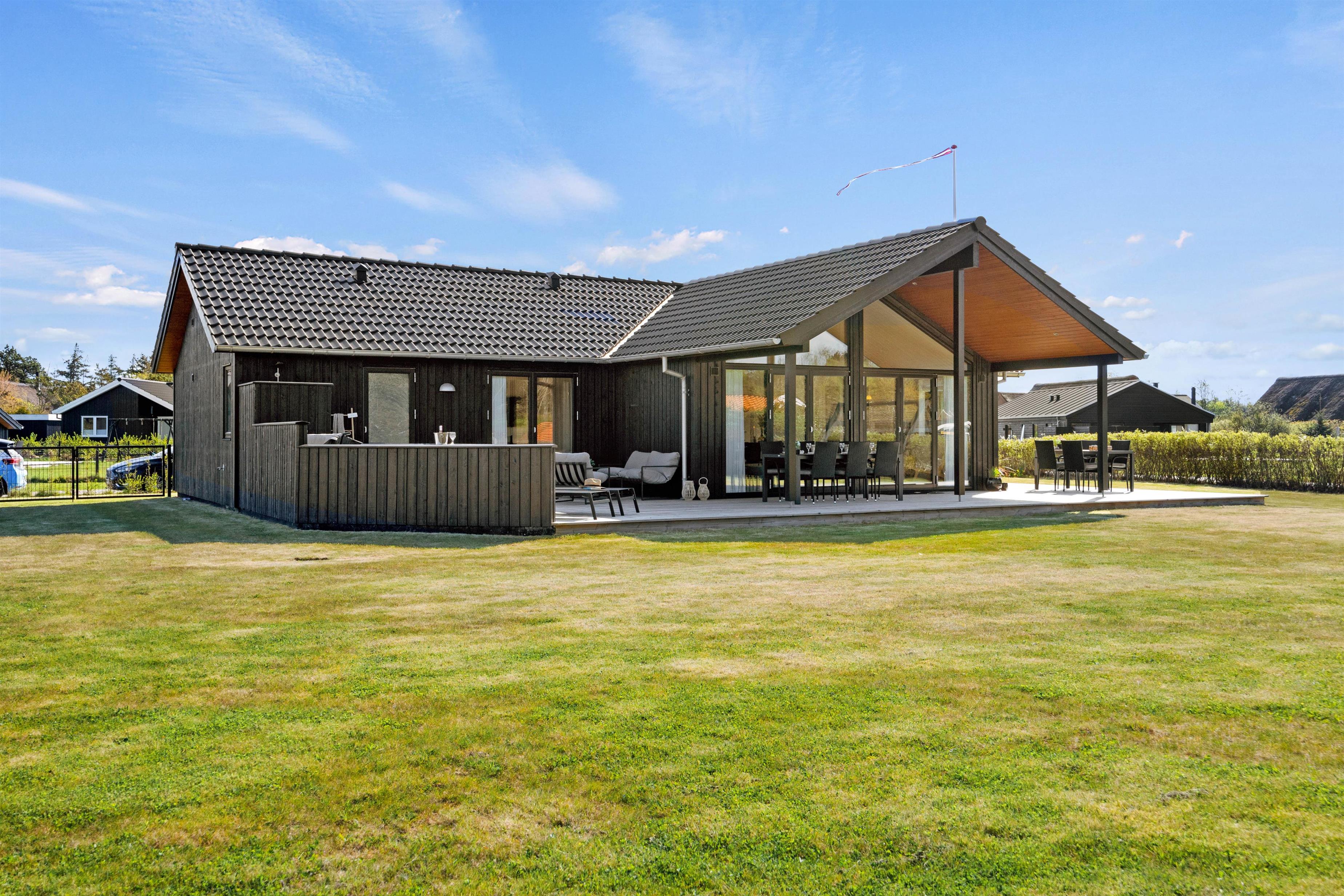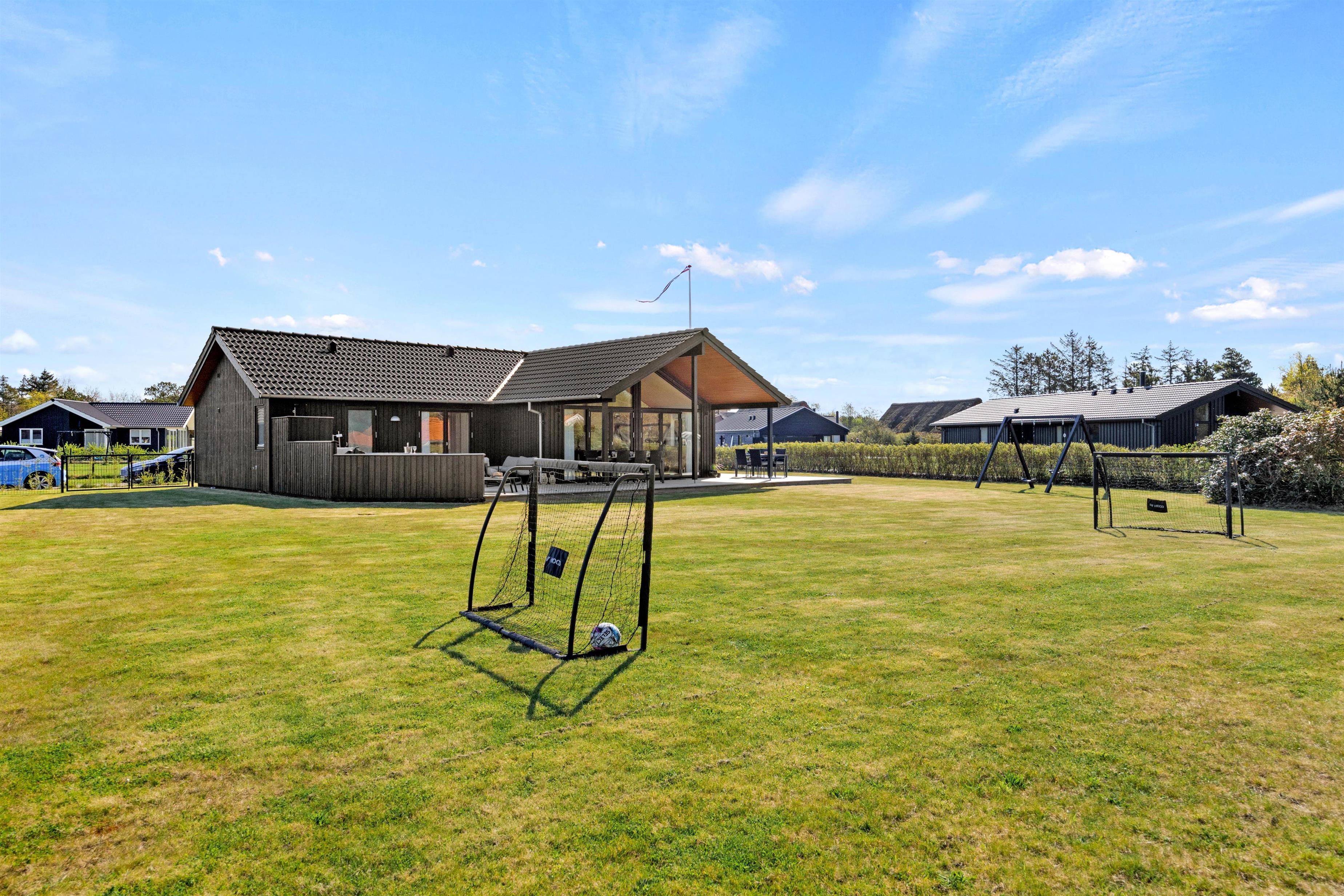 Den 1.560 kvadratmeter store naturgrund giver jer rig mulighed for at nyde ferien under åben himmel. Her er der god plads til leg og bevægelse, og børnene kan gynge eller spille bold, mens I slapper af i havemøblerne på den skønne terrasse, hvoraf ca. 20 m2 er overdækket. Når aftensolen sænker sig, kan I tænde op i grillen og nyde et måltid i de lune aftentimer – med tid og ro til nærvær.