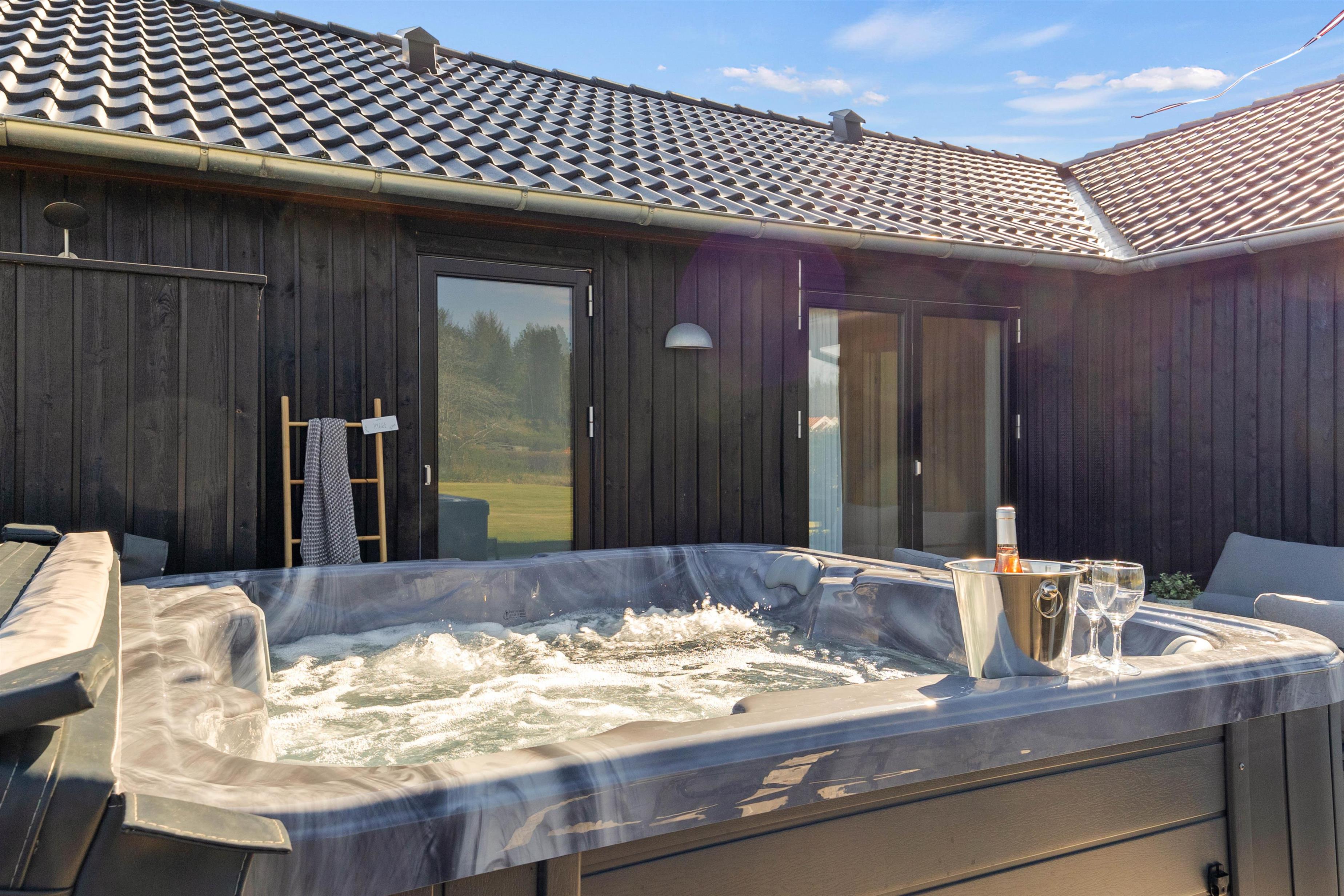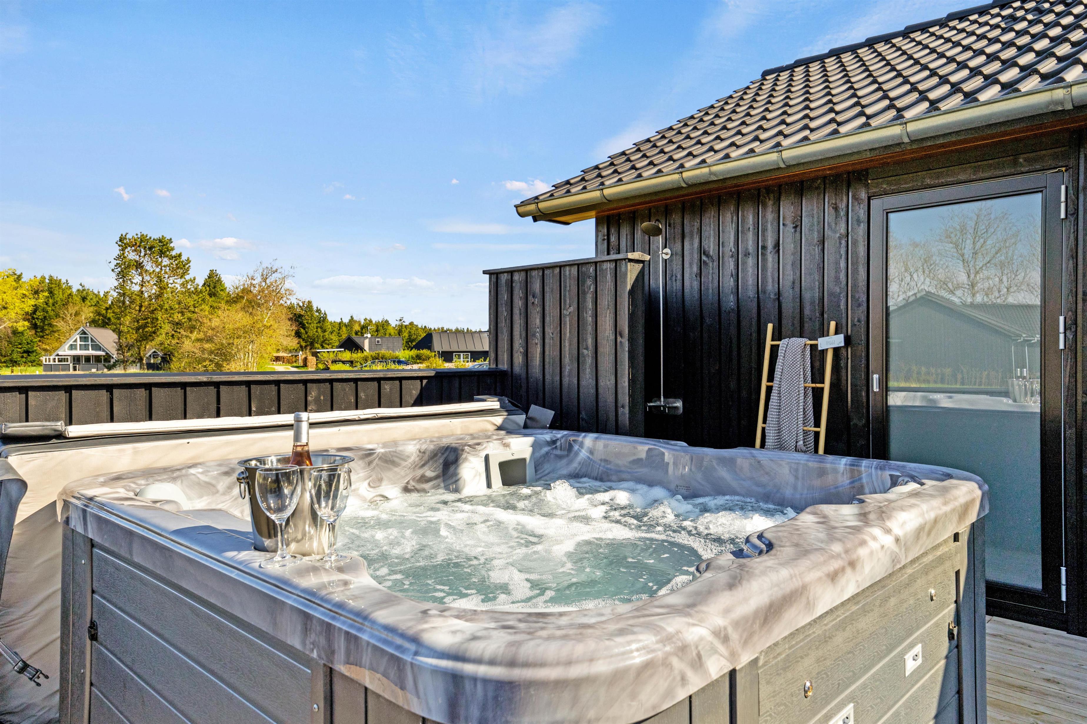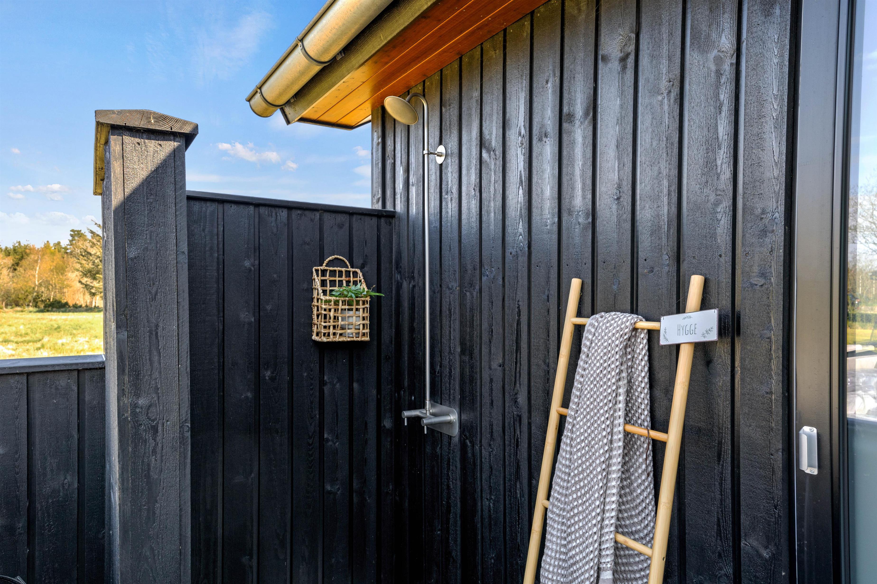 Efter en dag ved stranden kan I skylle salt og sand af under den udendørs bruser, før I runder dagen af i det varme udespa. Her kan I læne jer tilbage og nyde roen i naturens omgivelser – uanset årstiden. Den udendørs bruser kan benyttes fra april til november.