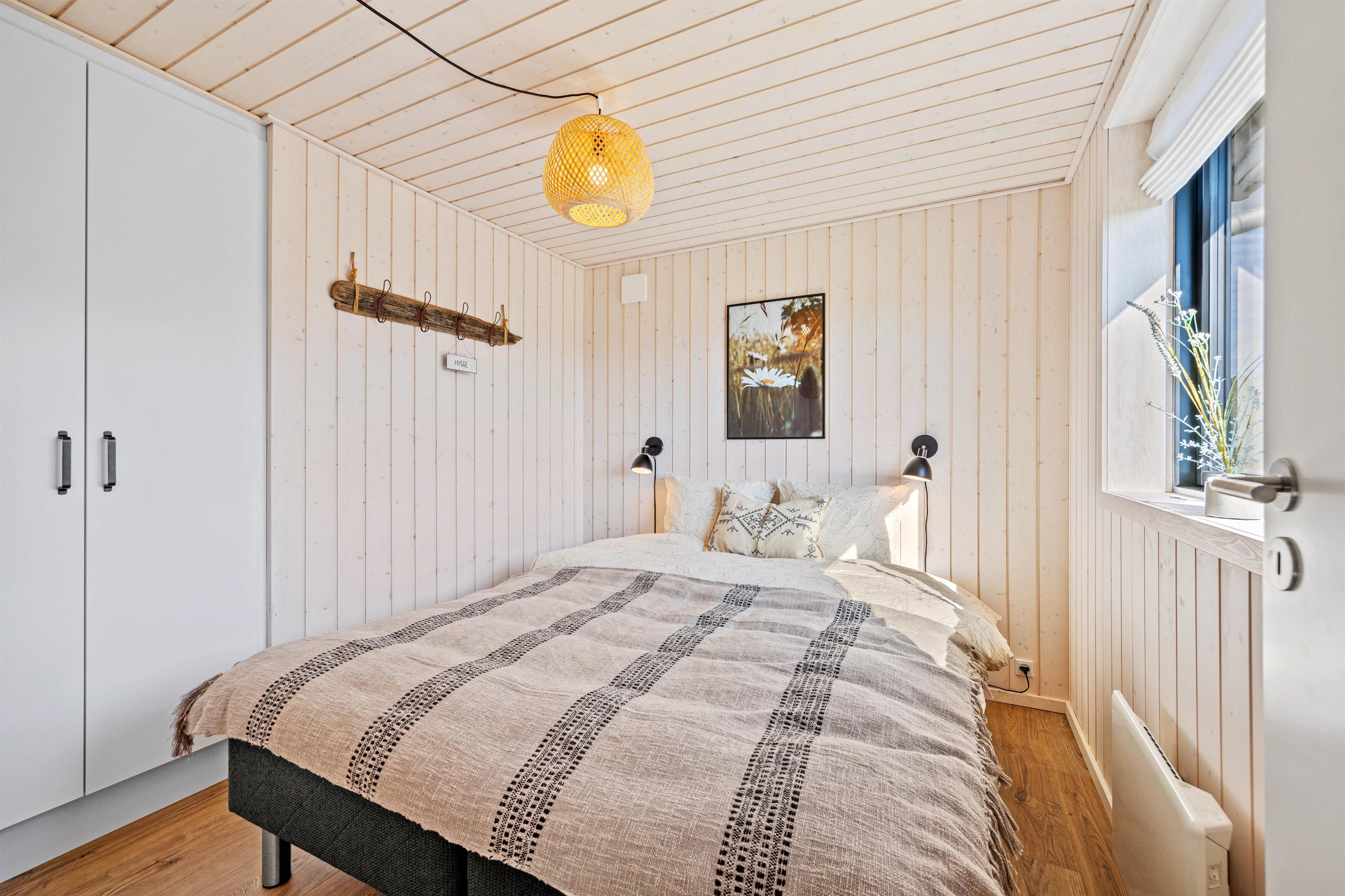 Sommerhuset råder over 3 soveværelser, hvor 2 er indrettet med dobbeltsenge og ét med 2 enkeltsenge – alle med god plads og skabsopbevaring. De 2 flotte badeværelser er begge udstyret med gulvvarme, som sikrer varme fødder fra morgenstunden. Som en ekstra luksus har det ene badeværelse adgang til sommerhusets sauna – ideel til afslapning efter en lang dag i naturen eller ved stranden.