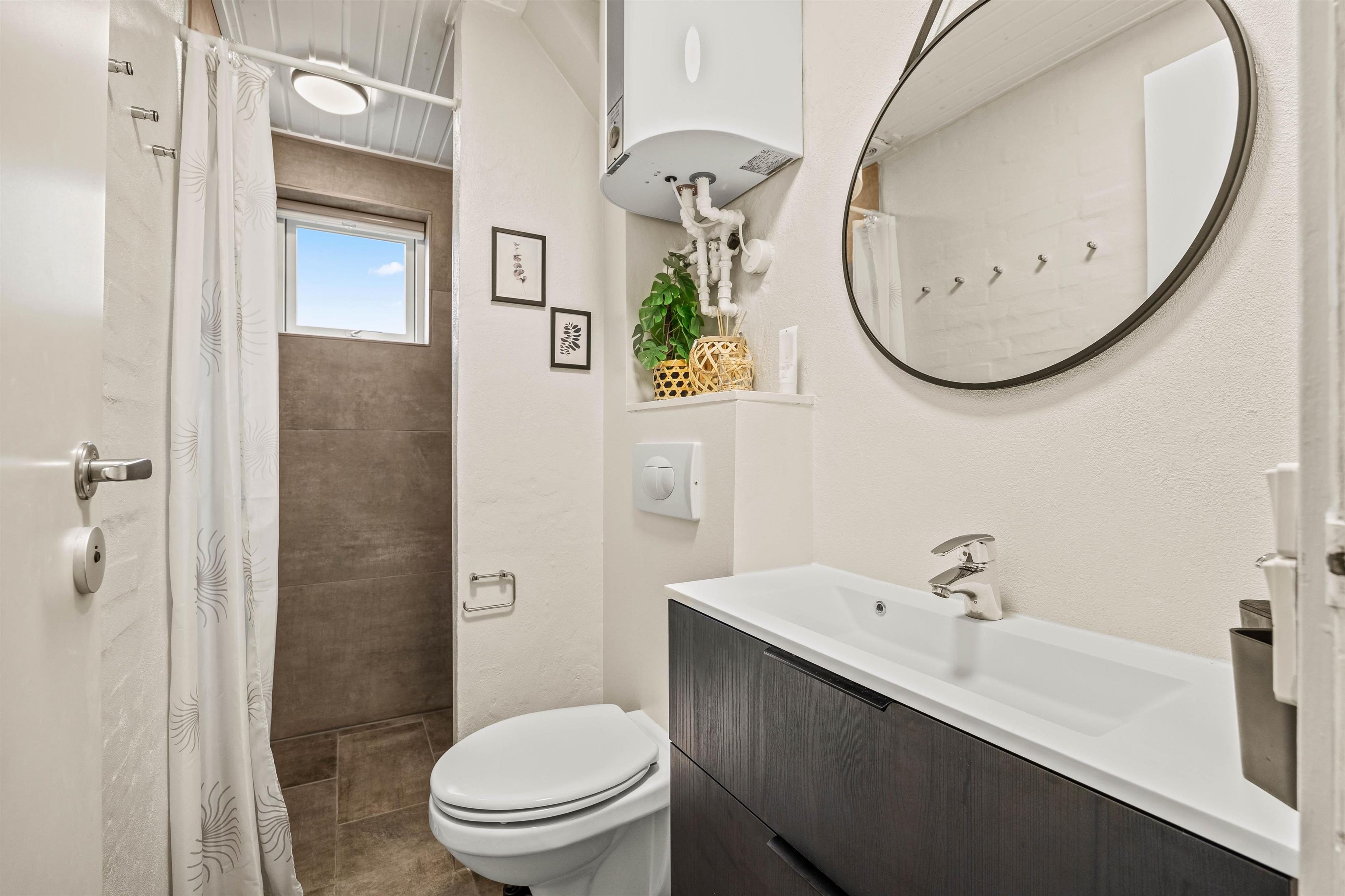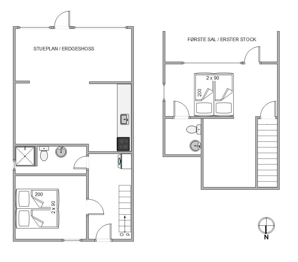 På ferielejlighedens førstesal venter jer 1 soveværelse og et gæstetoilet. Begge soveværelser er indrettet med dobbeltsenge, som I kan samle ny energi til de kommende feriedage i. Om morgenen skal I slet ikke bekymre jer om kø til toilettet, for her er der både et nyrenoveret badeværelse og et gæstetoilet, der begge har indlagt gulvvarme. .