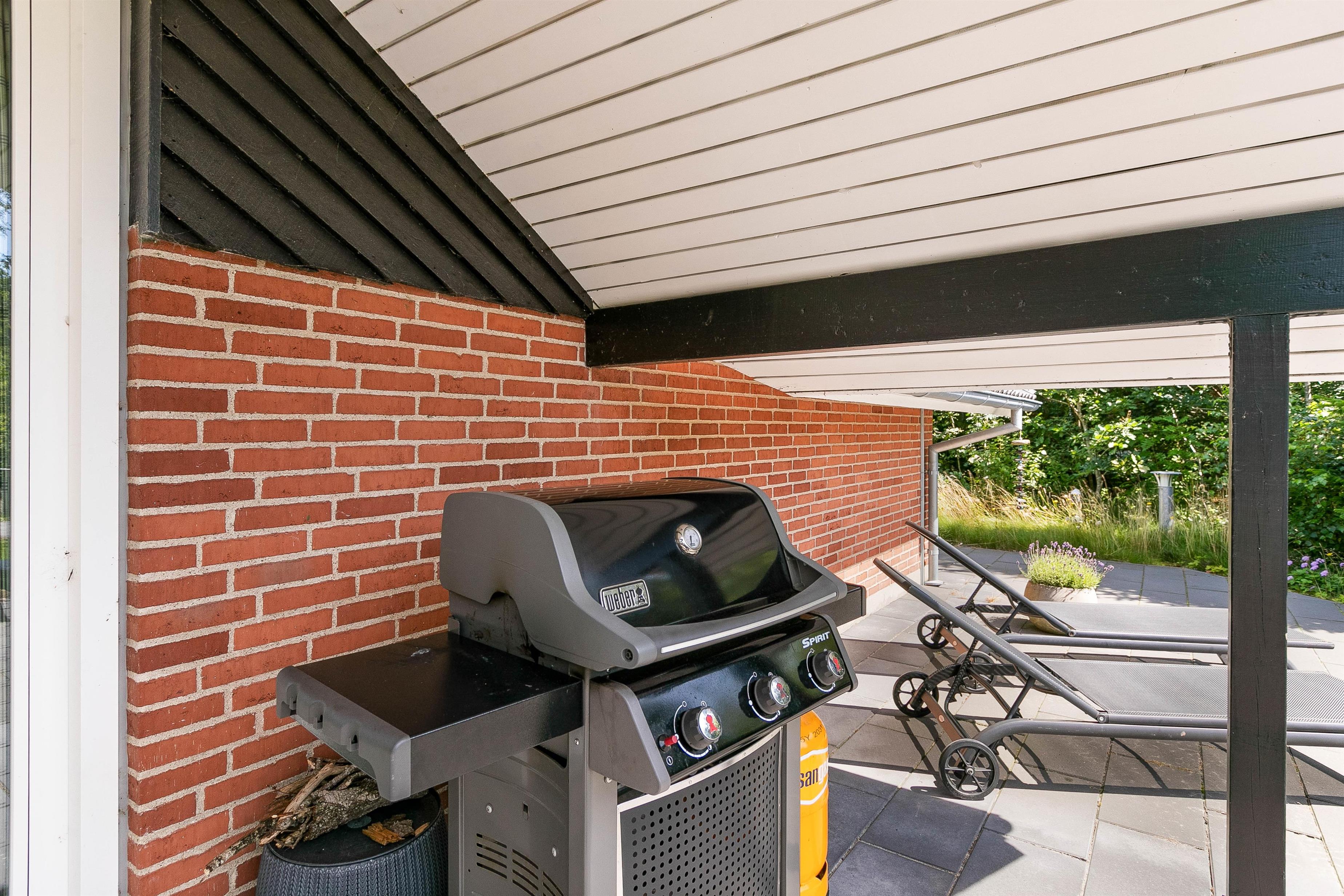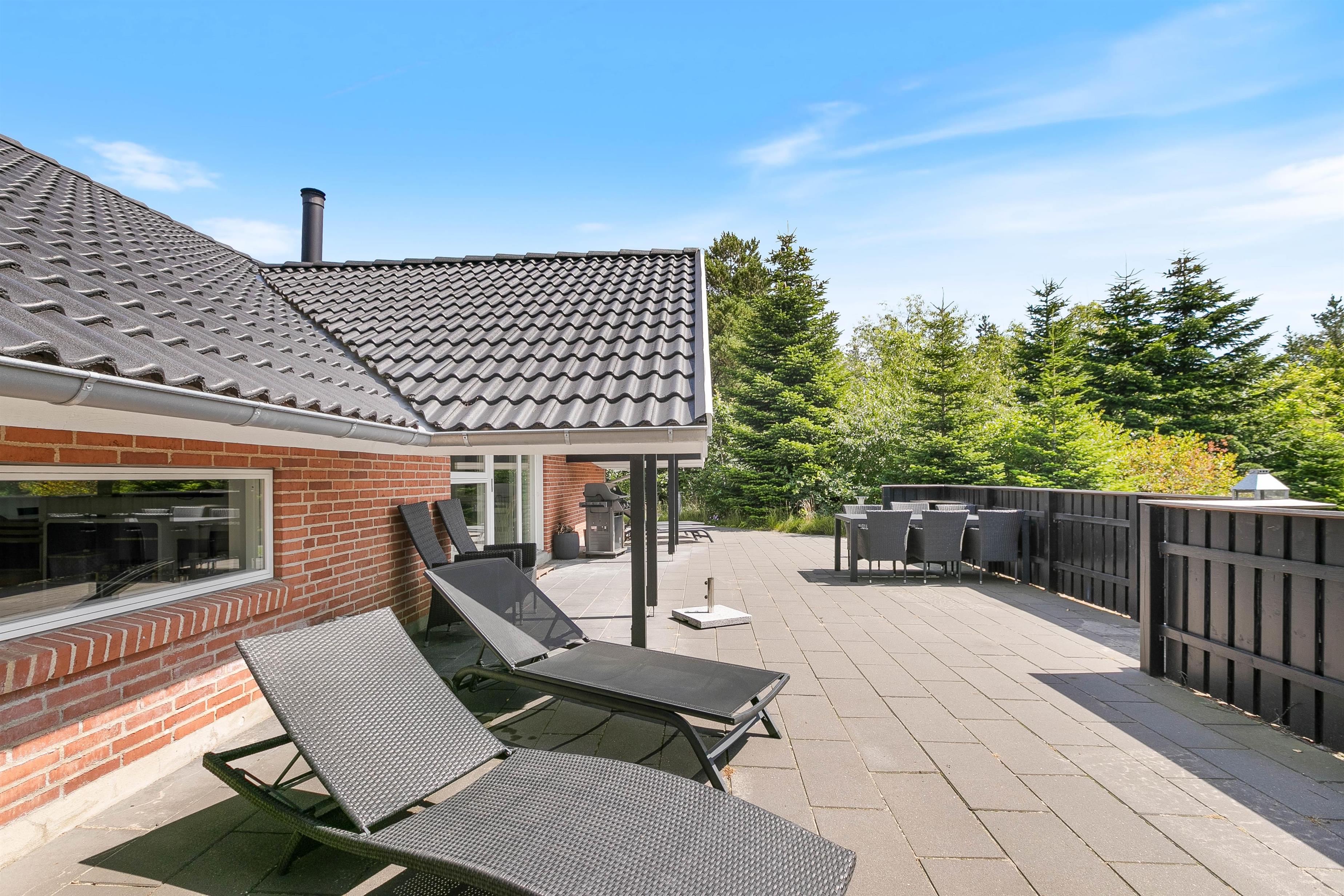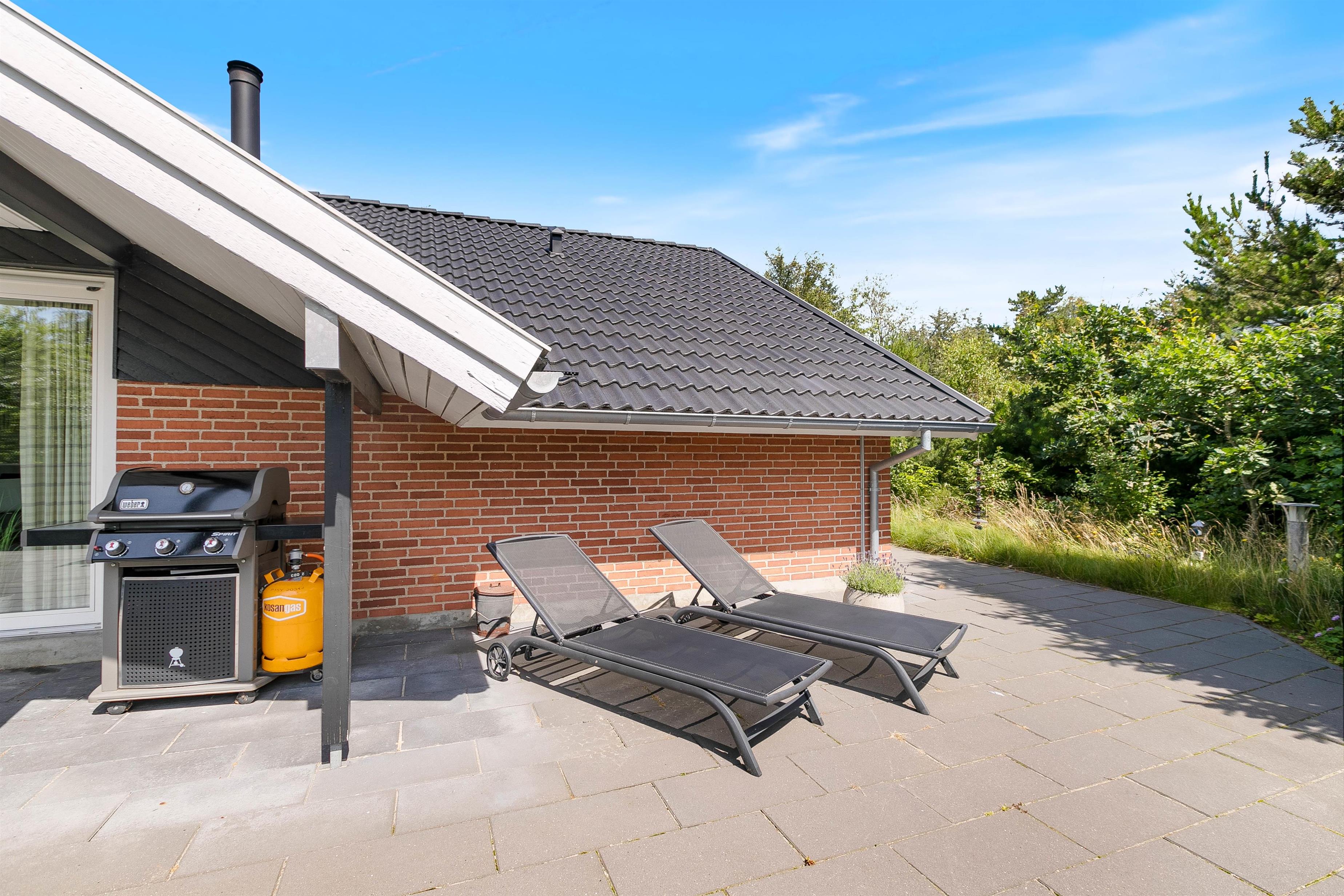 Sommerhuset er omgivet af 170 m2 dejlige terrasser med havemøbler og både gas- og kuglegrill.