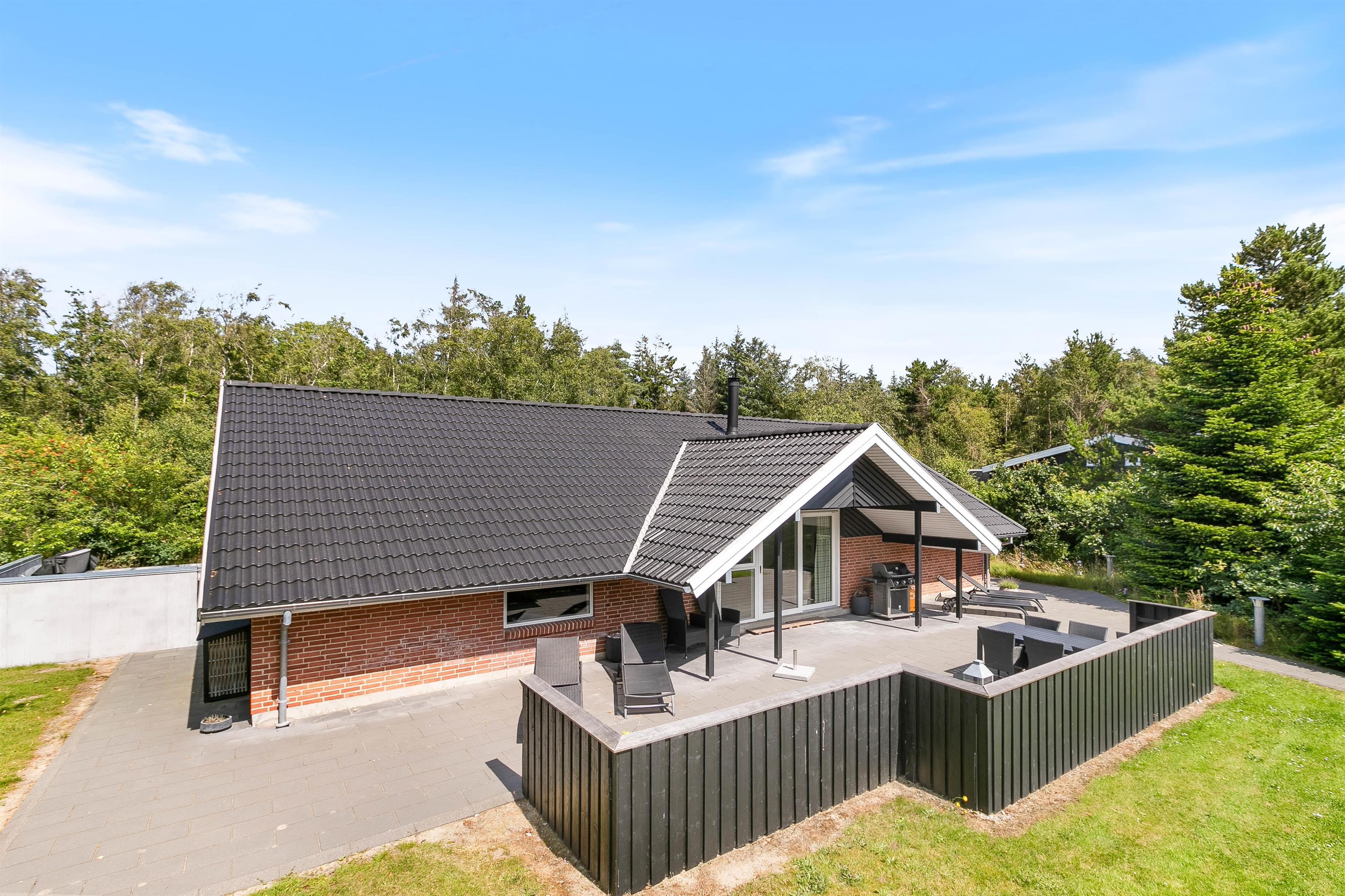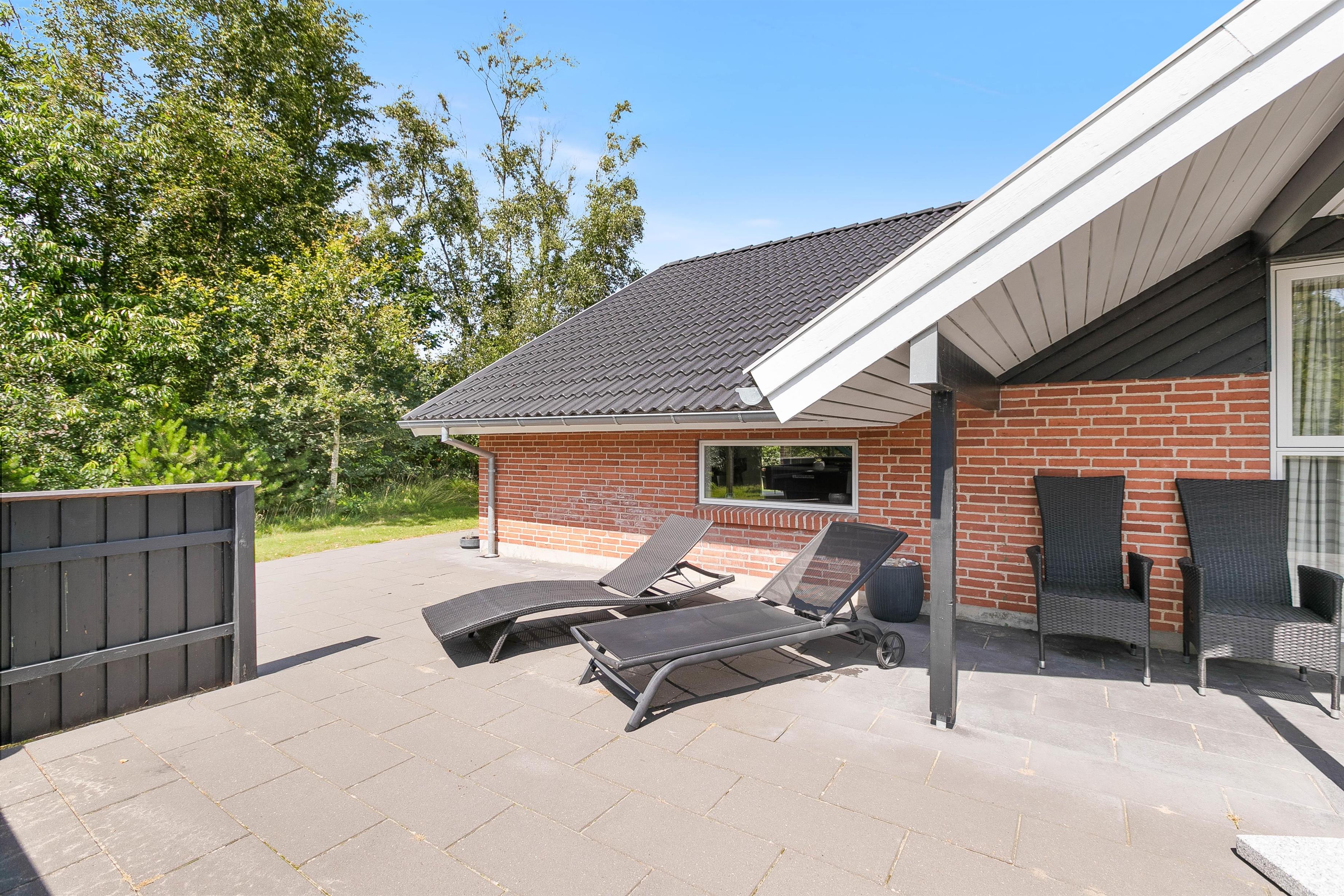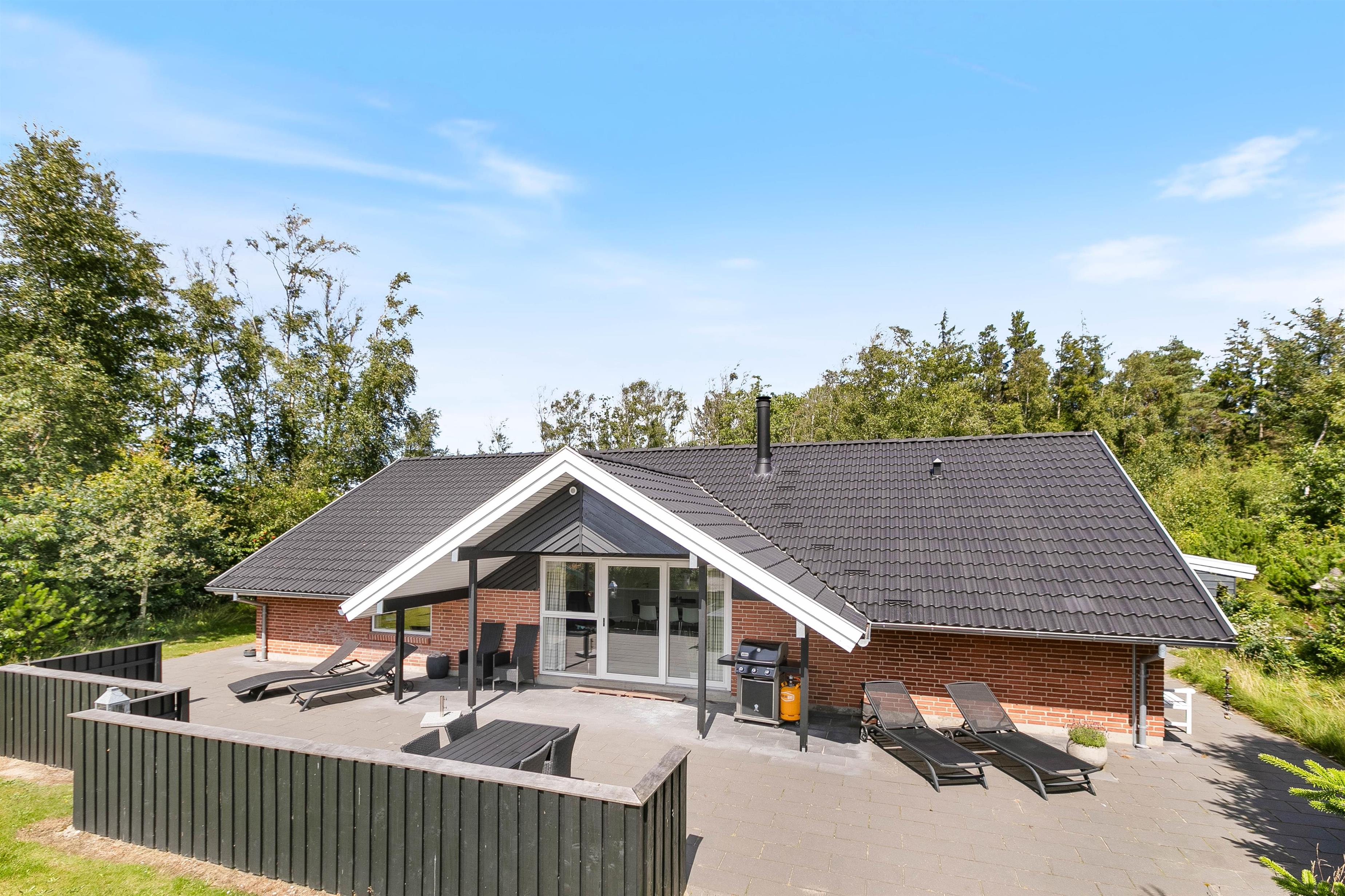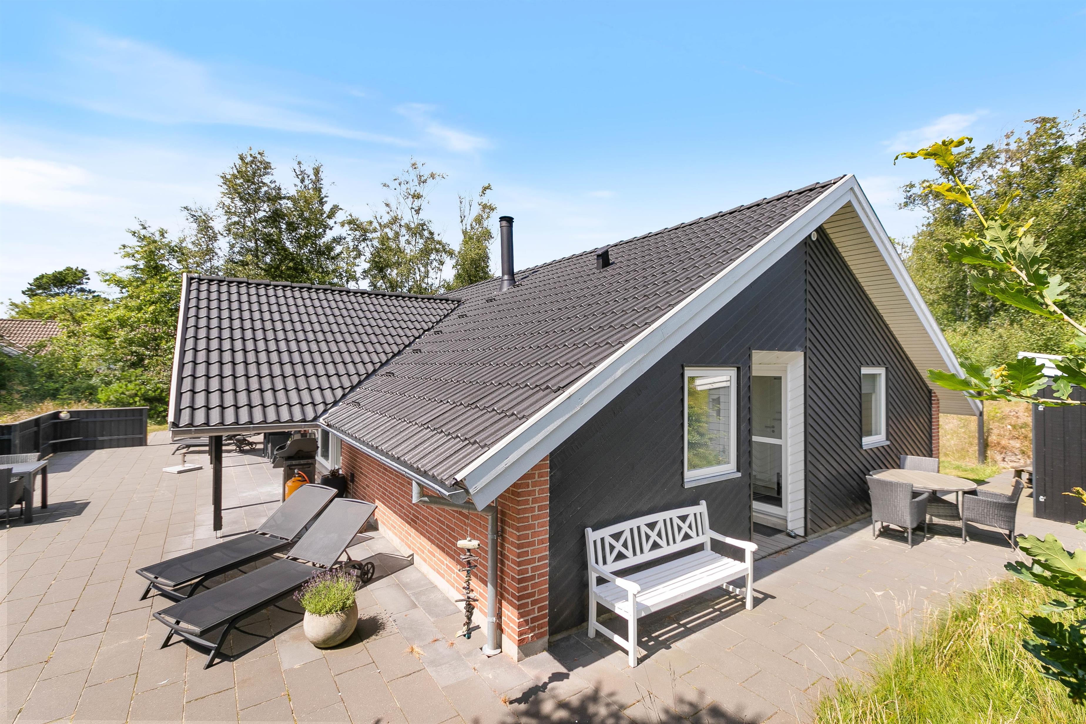 Sommerhuset er omgivet af 170 m2 dejlige terrasser med havemøbler og både gas- og kuglegrill.