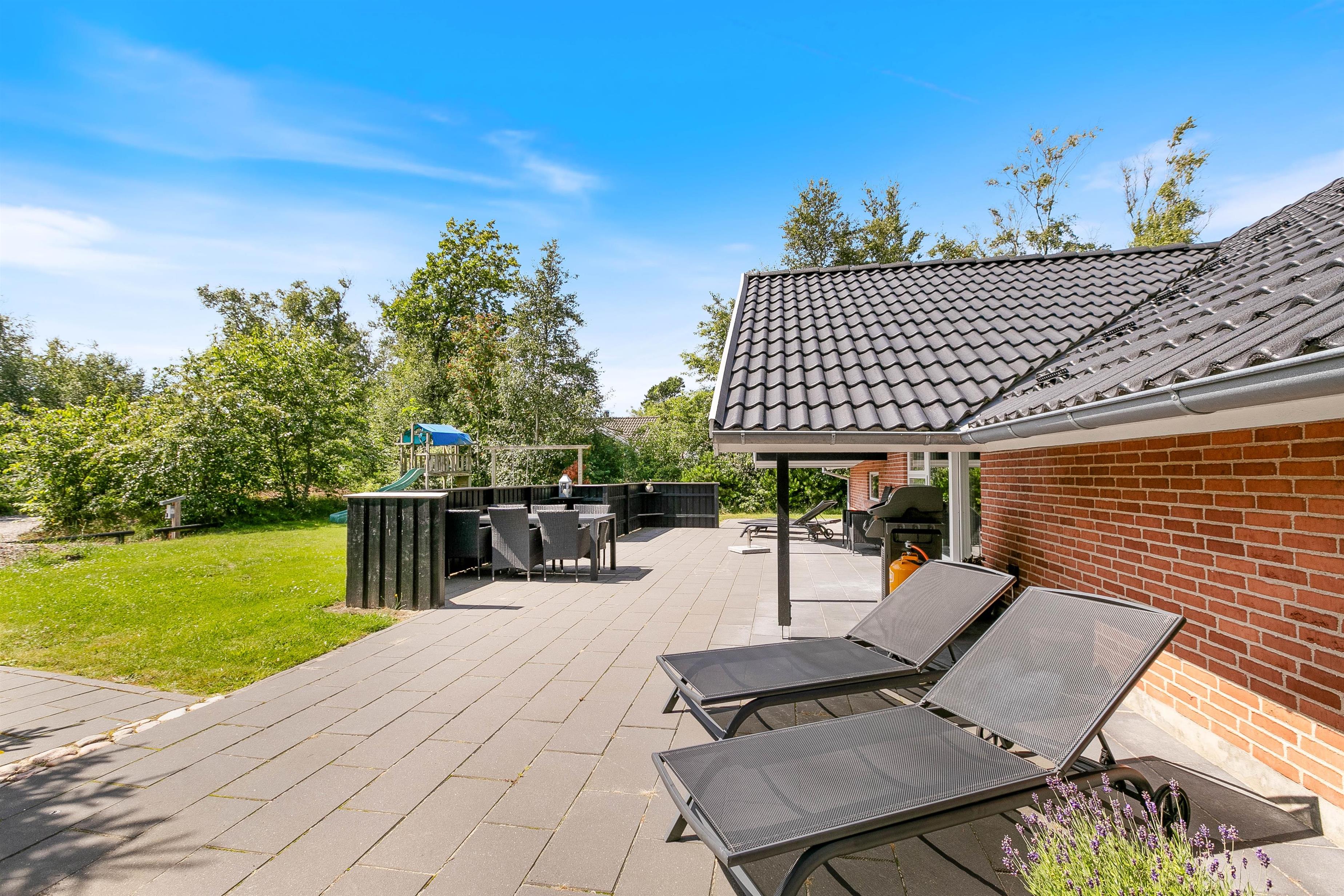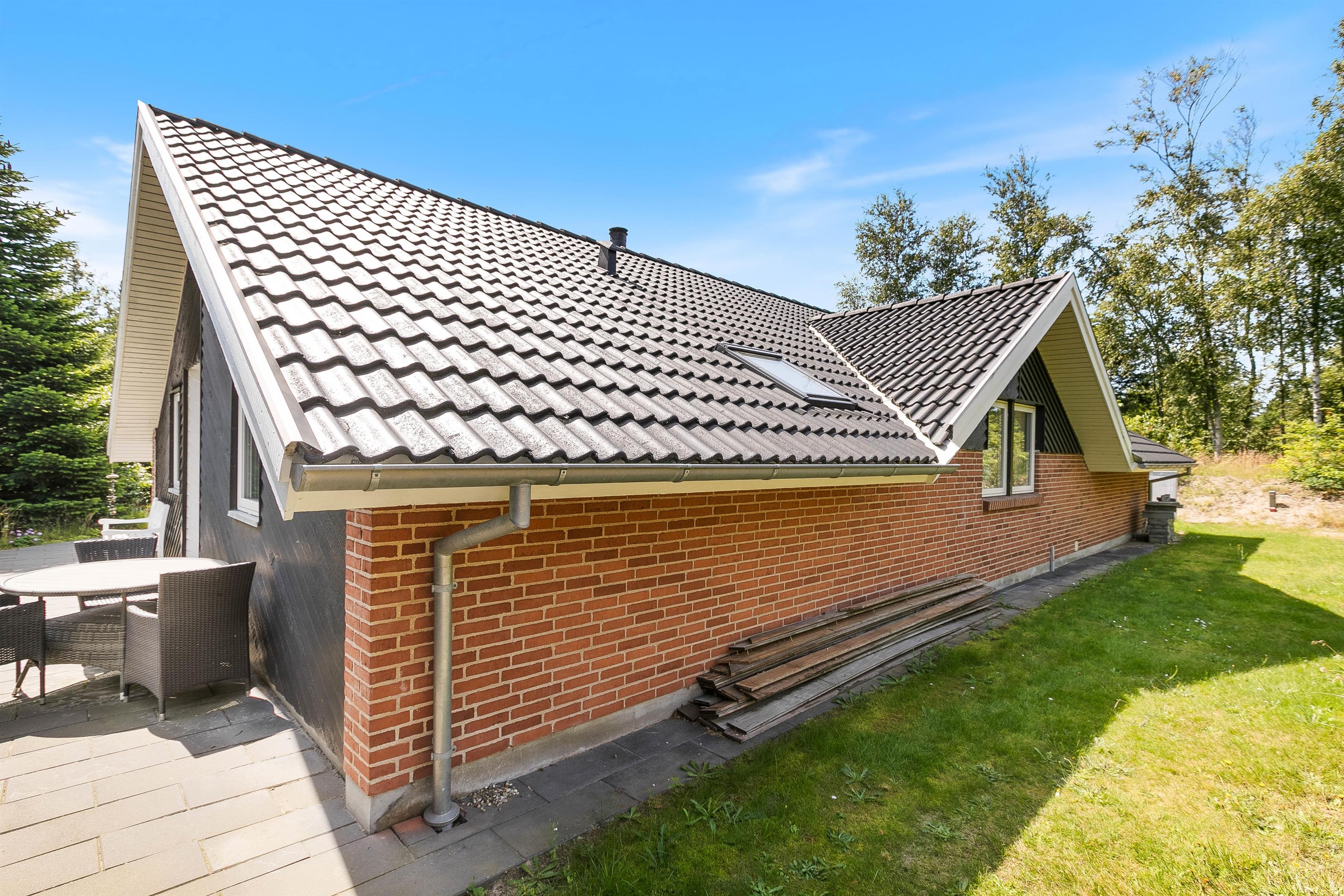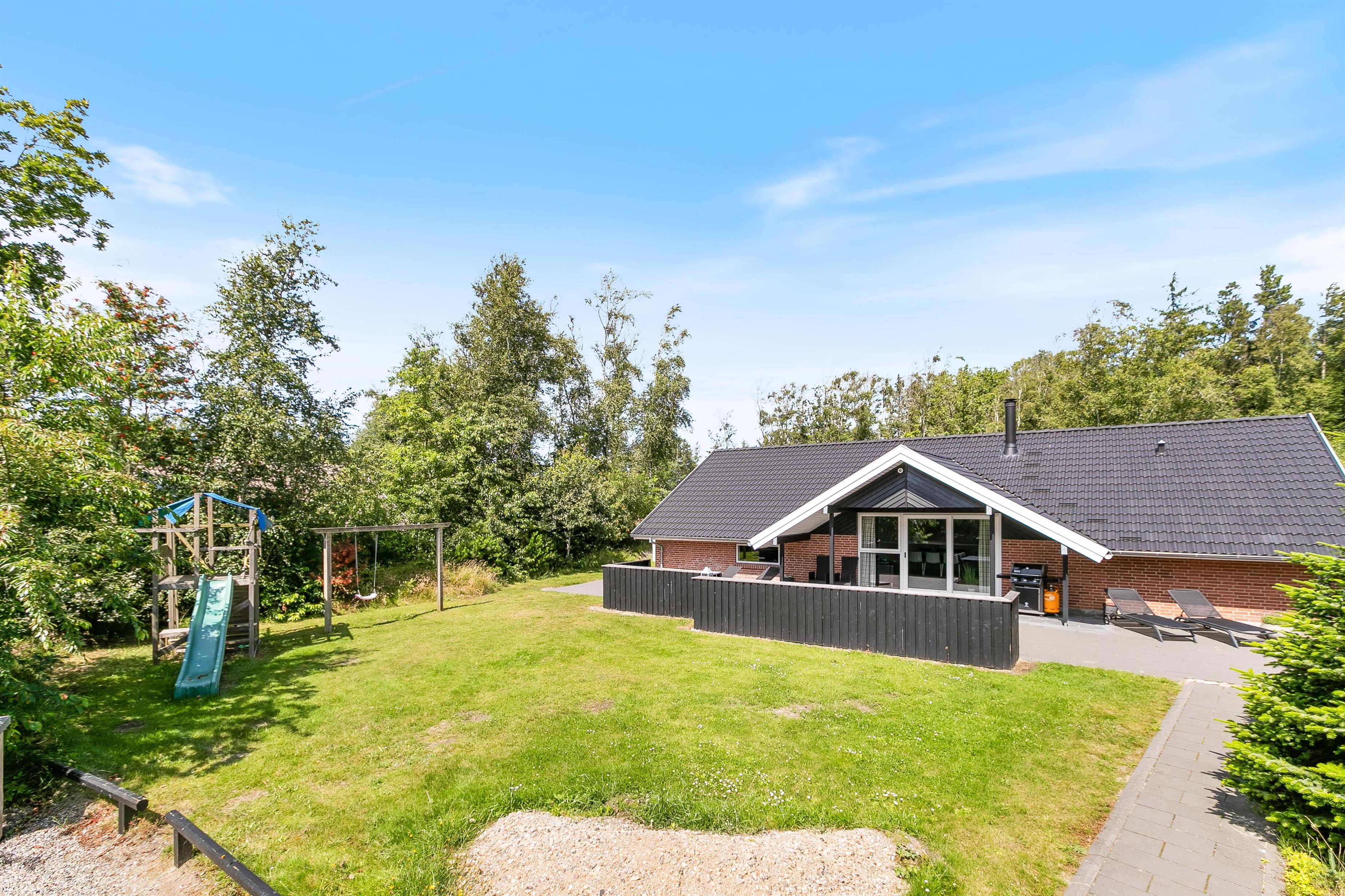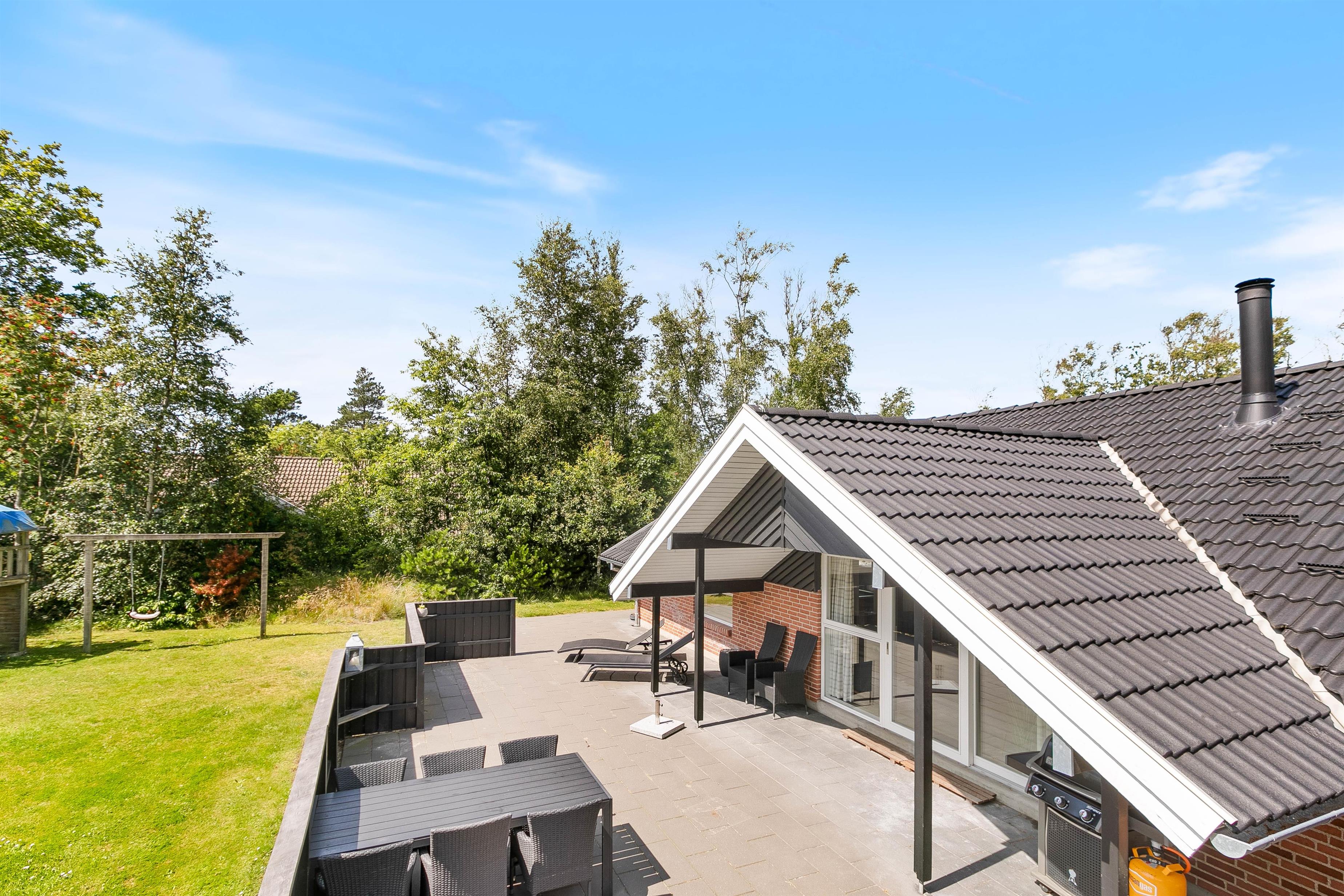 Drik morgenkaffen på morgenterrassen, nyd solen midt på dagen i de dejlige havemøbler på den store delvist aflukkede og ugenerere terrasse med direkte udgang fra huset og afslut dagen på den flotte træterasse med aftenssol. Den dejlige naturgrund med træbevoksningen giver ro og læ, så I kan nyde terrassetiden, imens børnene gynger eller klatrer og leger i legtårnet med rutchebane.