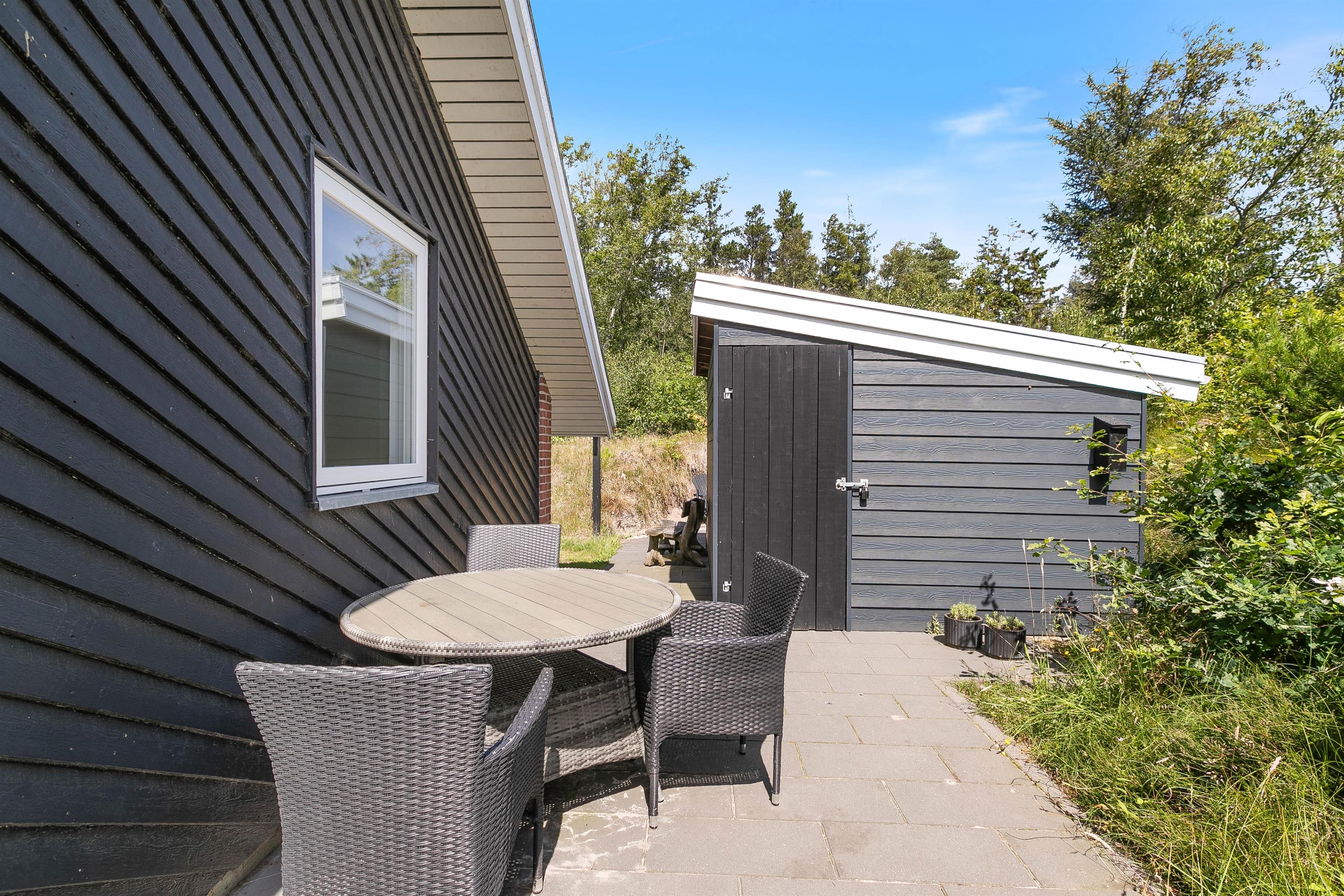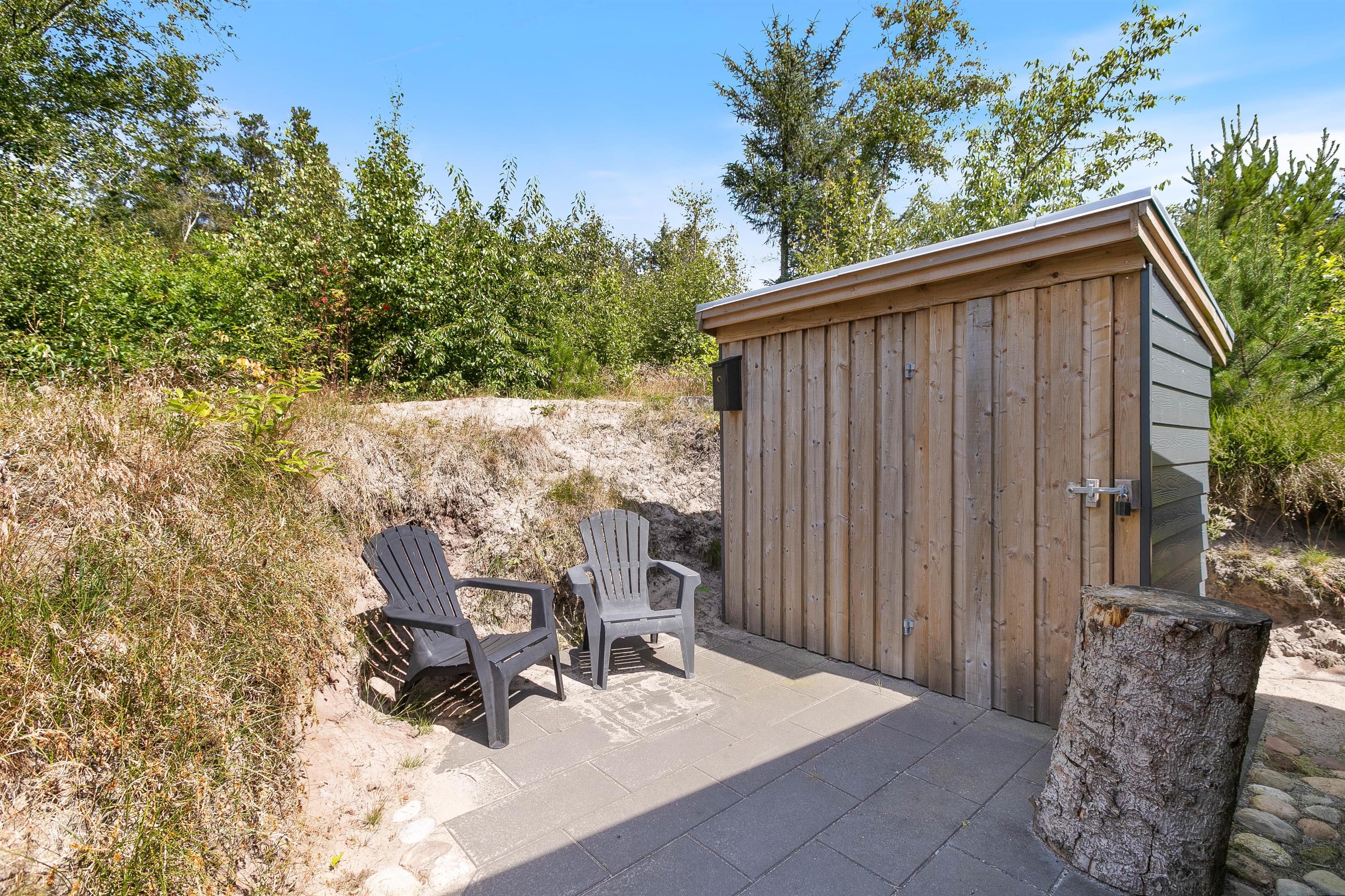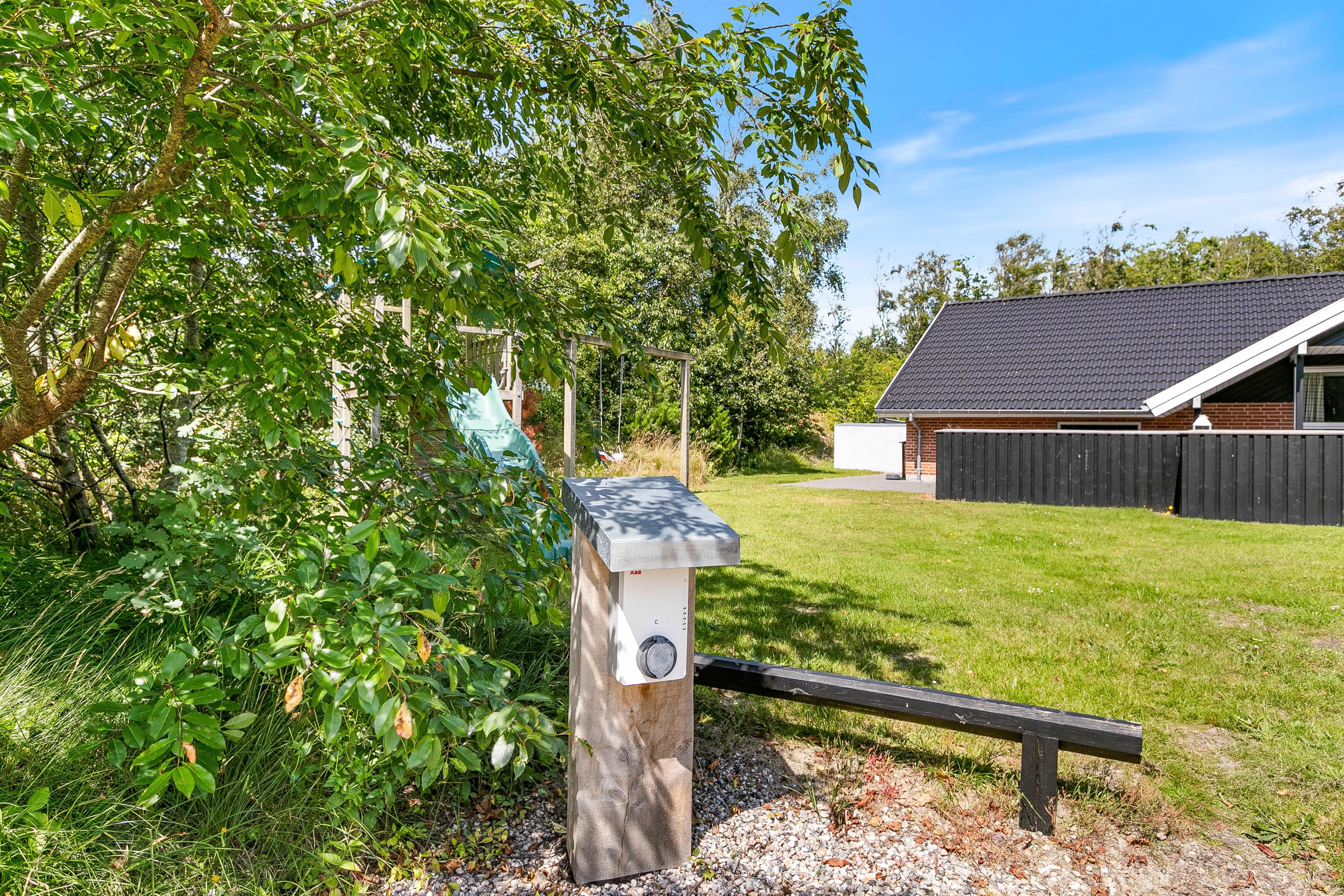 Der er mulighed for at opbevare fx cykler i aflåst skur, og elbilen kan oplades ved hjælp af feriehusets ladestander - eget kabel (type 2) medbringes.