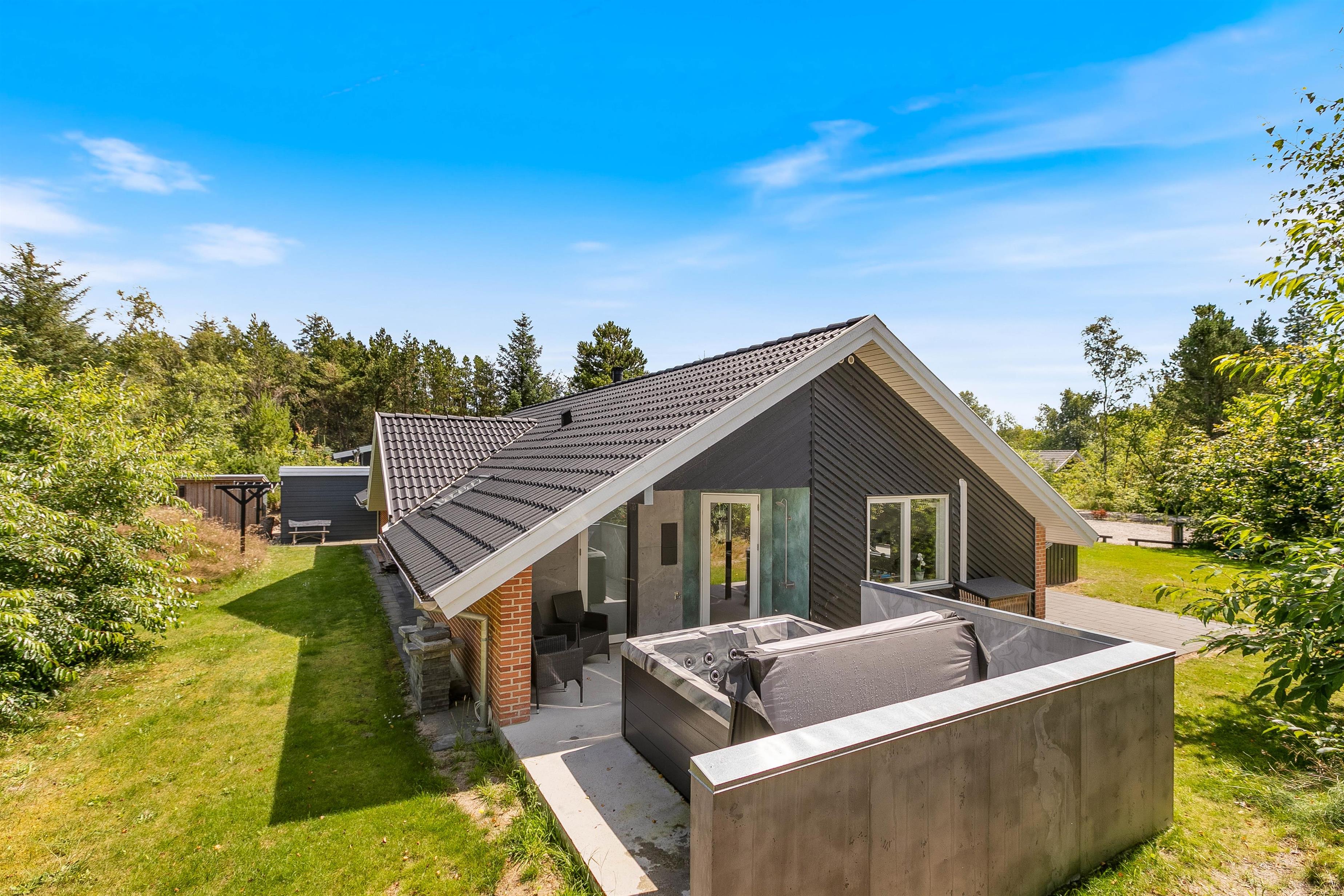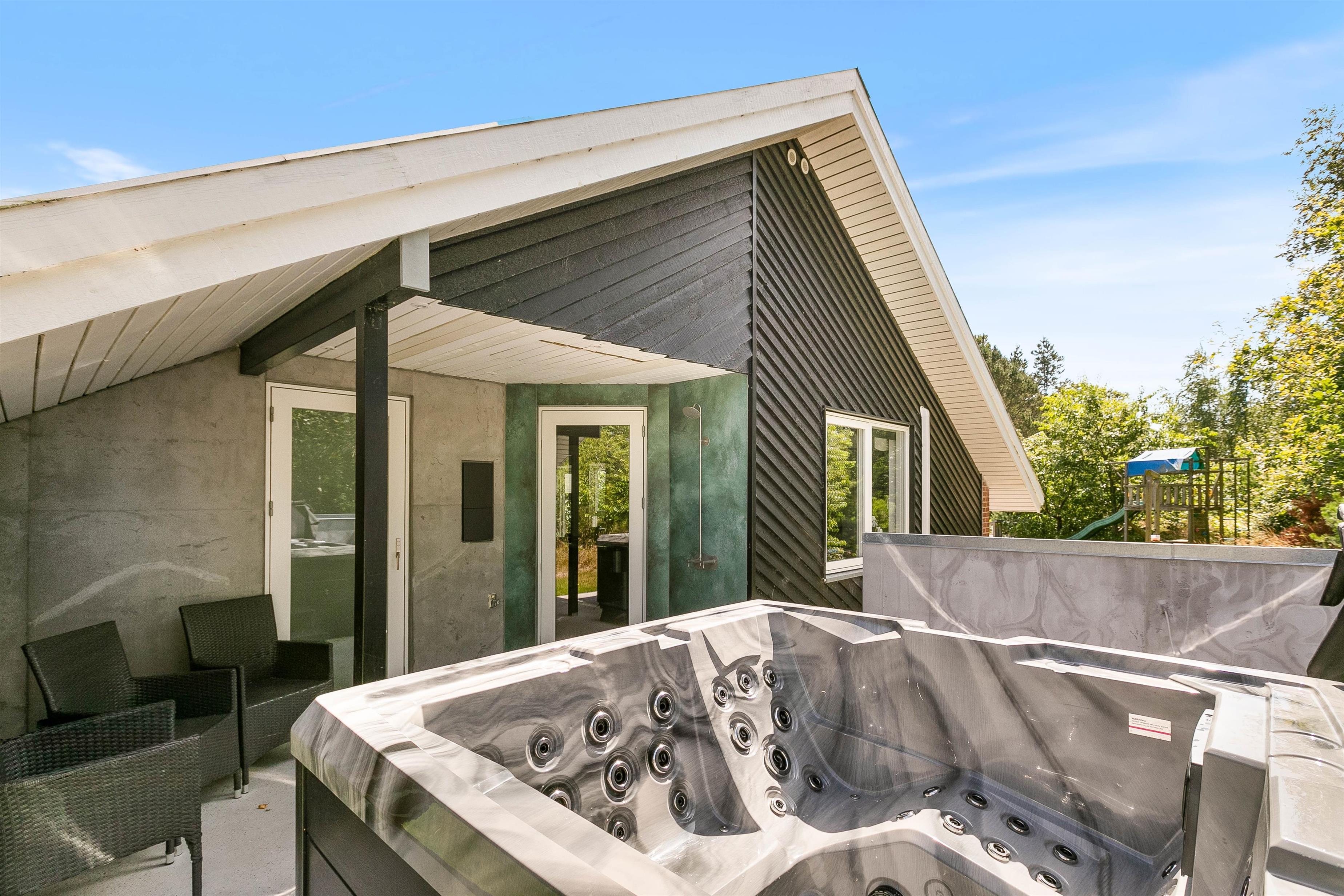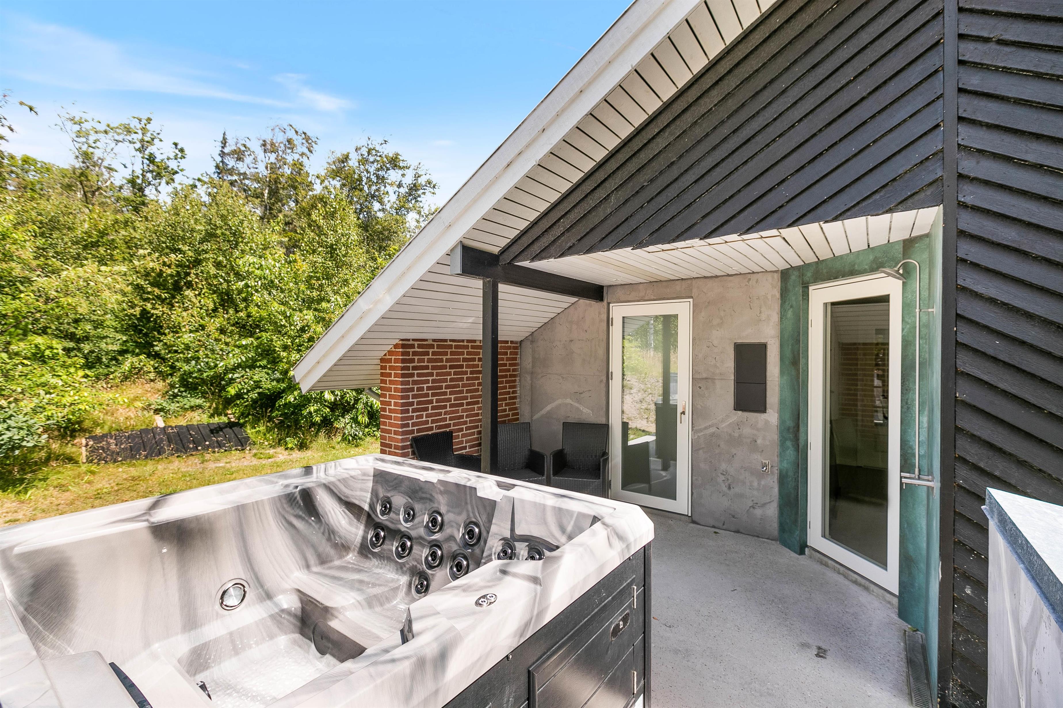 Per 19.01.2024 byder dette sommerhus også på en skøn 5 personers udespa, hvor I kan nyde dens dejlige varme og bobler efter en dejlig vandretur ved den flotte sandstrand ved Henne Strand. Skulle I have behov for en skylletur efterfølgende, kan sommerhusets skønne udebruser benyttes til dette.