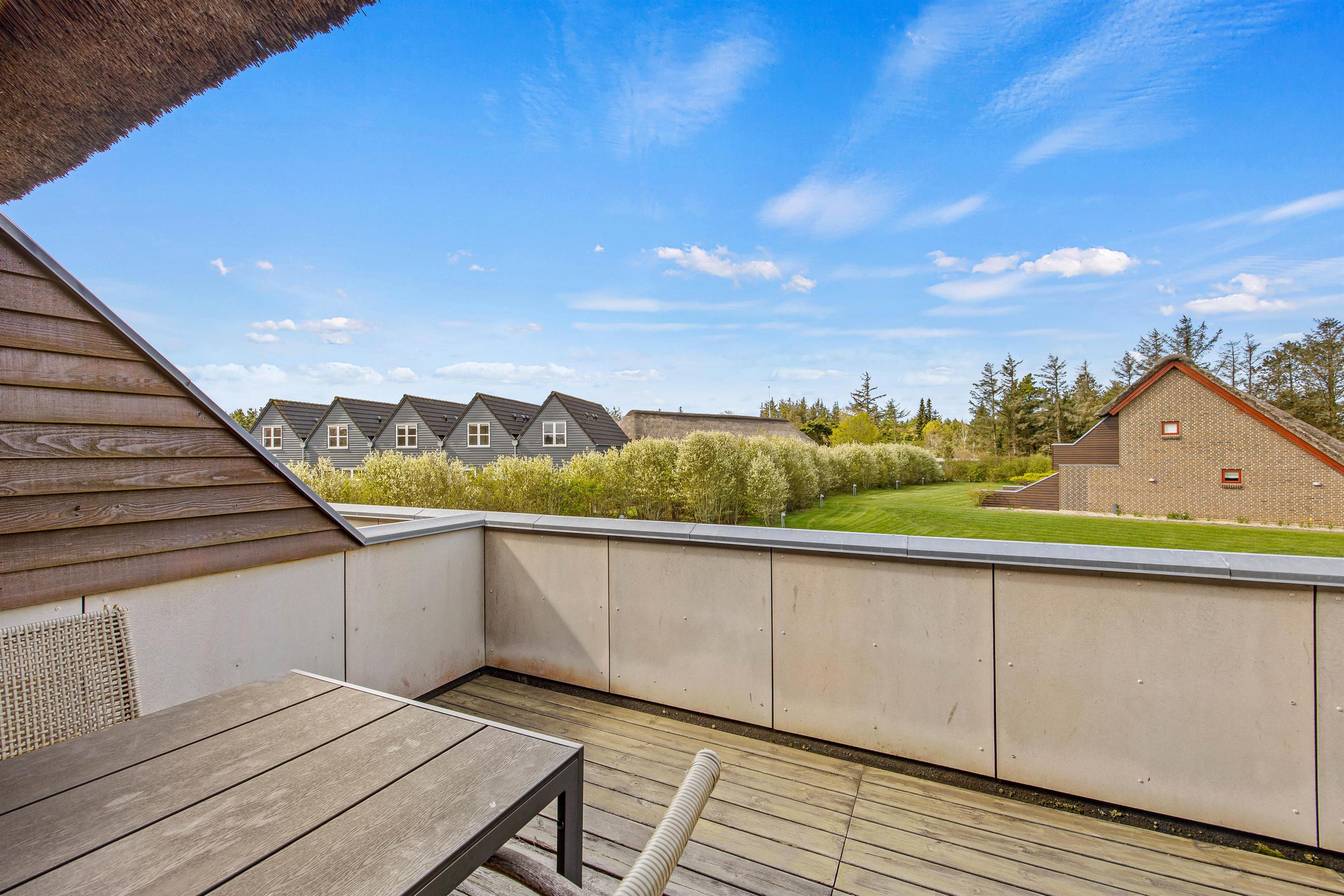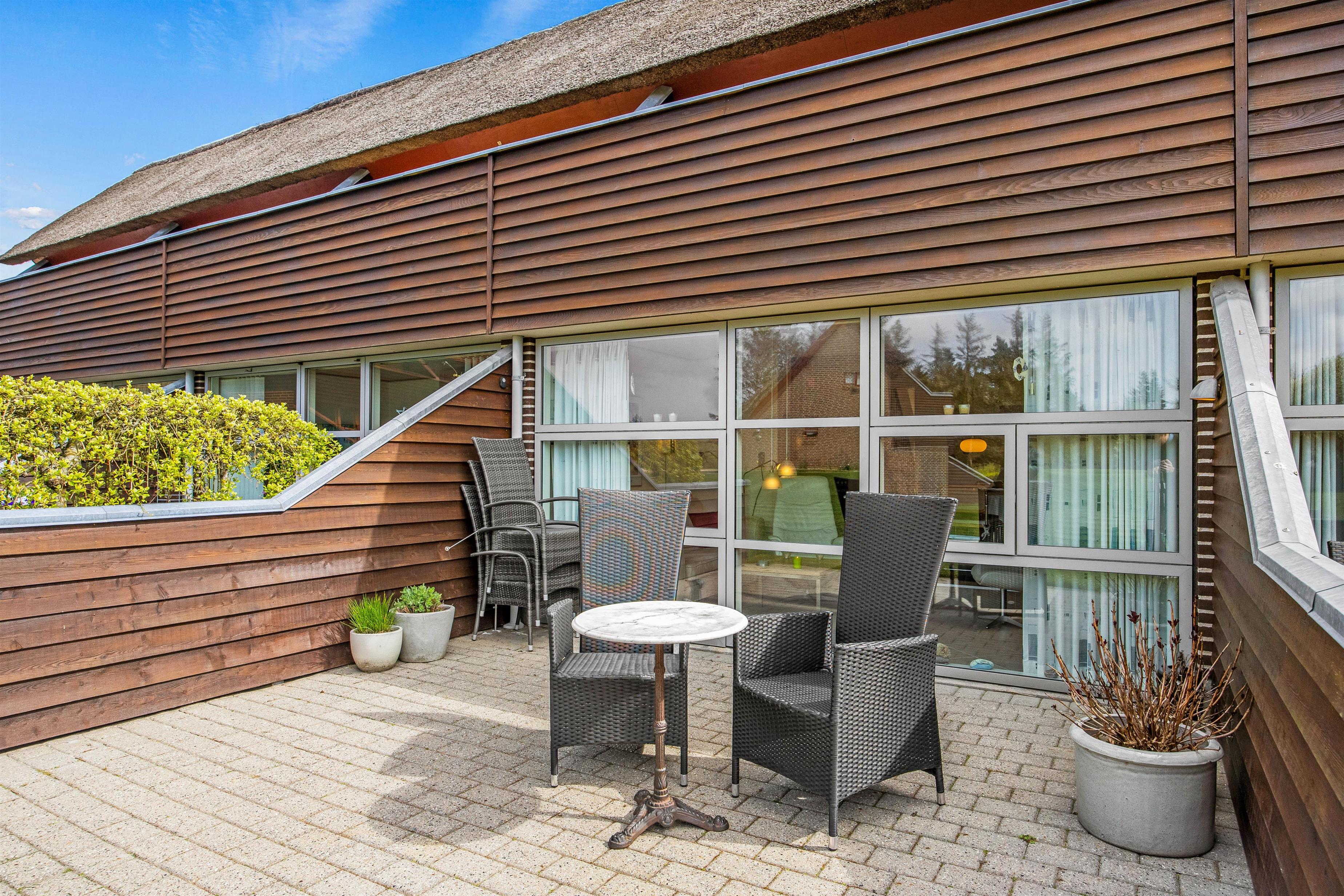 Den delvist afskærmede terrasse ligger i direkte forlængelse af ferielejlighedens opholdsstue, og er et perfekt sted til at nyde en dejlig kop kaffe eller yndlingsbog, imens I sætter jeg til rette i lejlighedens havemøbler. Og når dagen går på hæld, kan den elektriske grill være jer behjælpelige med at tilberede et dejligt måltid.