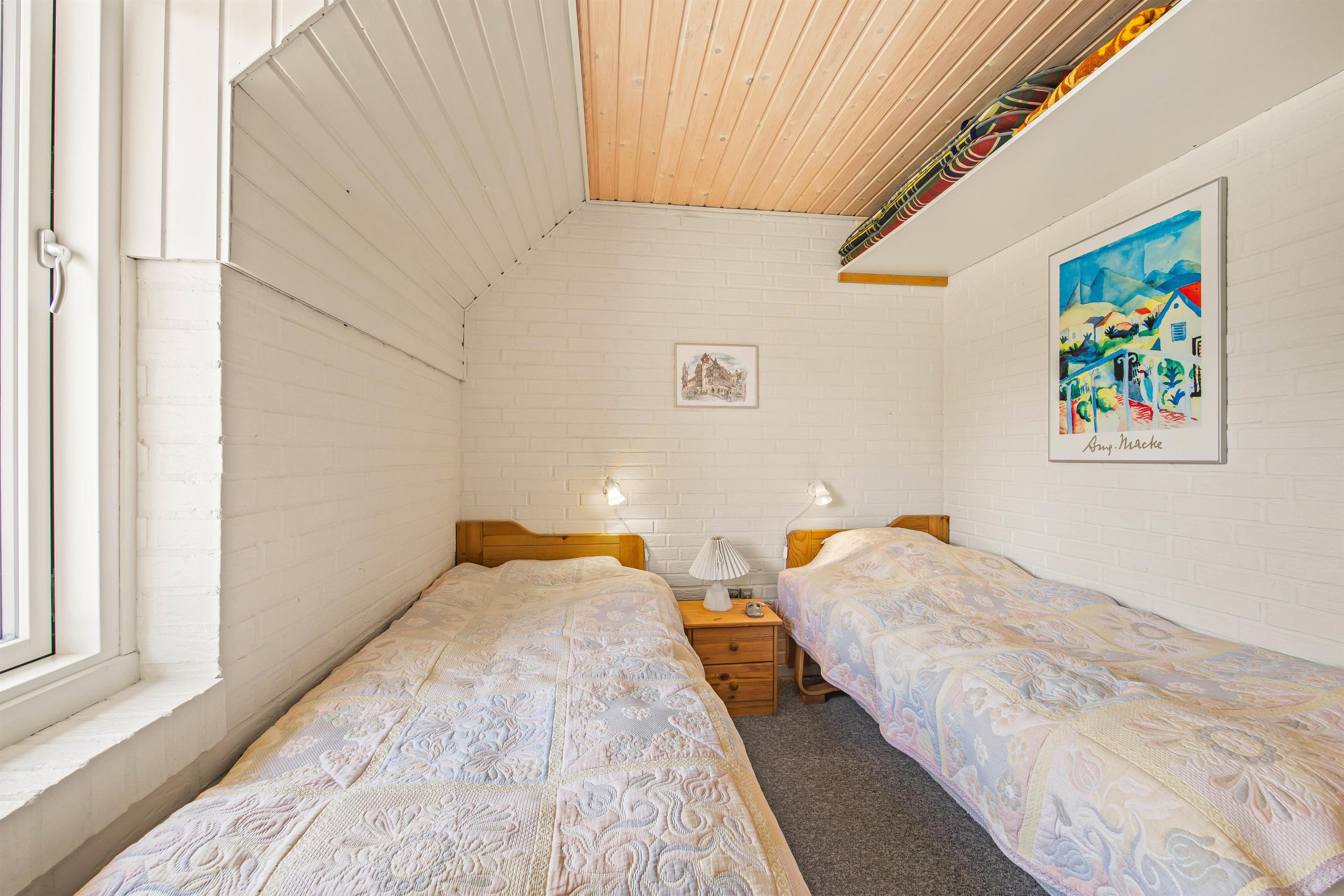 Også det ene af soveværelserne er at finde her: dette rummelige værelse indeholder 2 komfortable enkeltsenge. Det praktisk indrettede badeværelse, der ligger ved siden af dette værelse, har en håndklædeholder med timer samt gulvvarme.