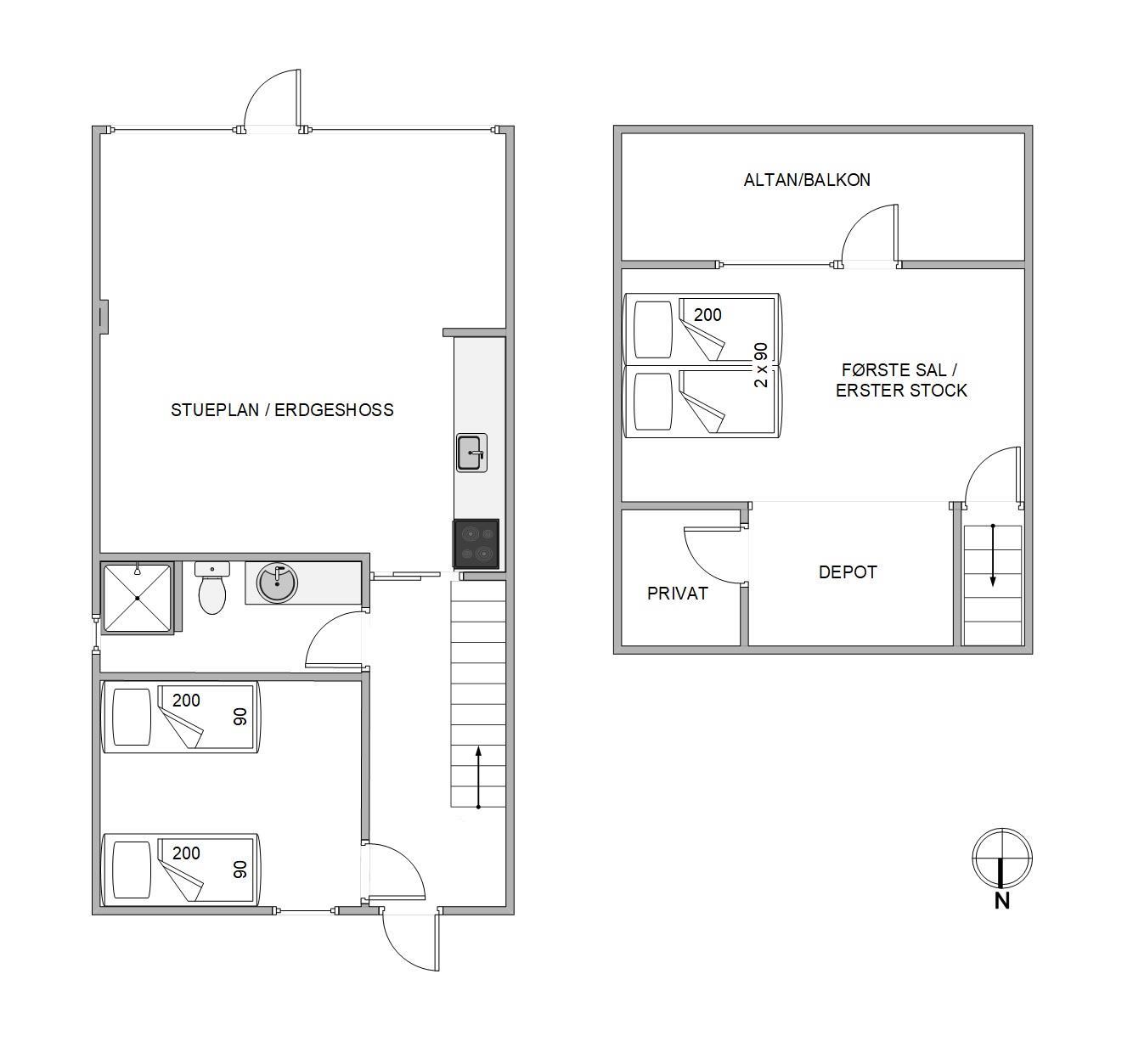 På 1. sal befinder sig det andet soveværelse, som er indrettet med en komfortabel dobbeltseng. Herfra er der en direkte udgang til altanen.