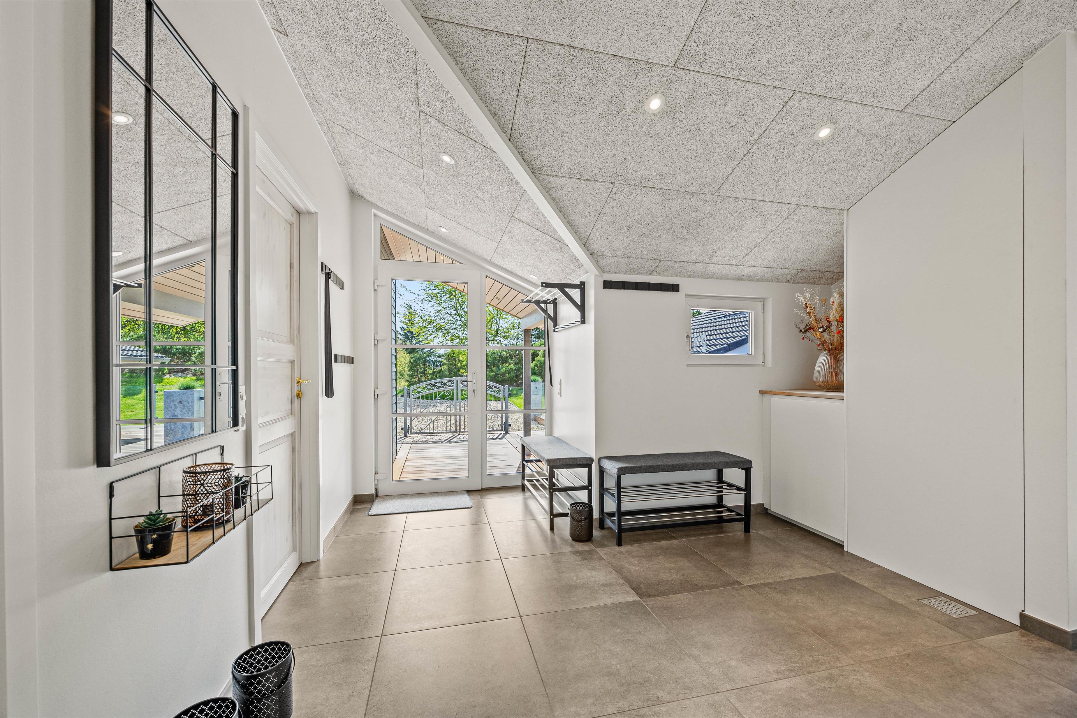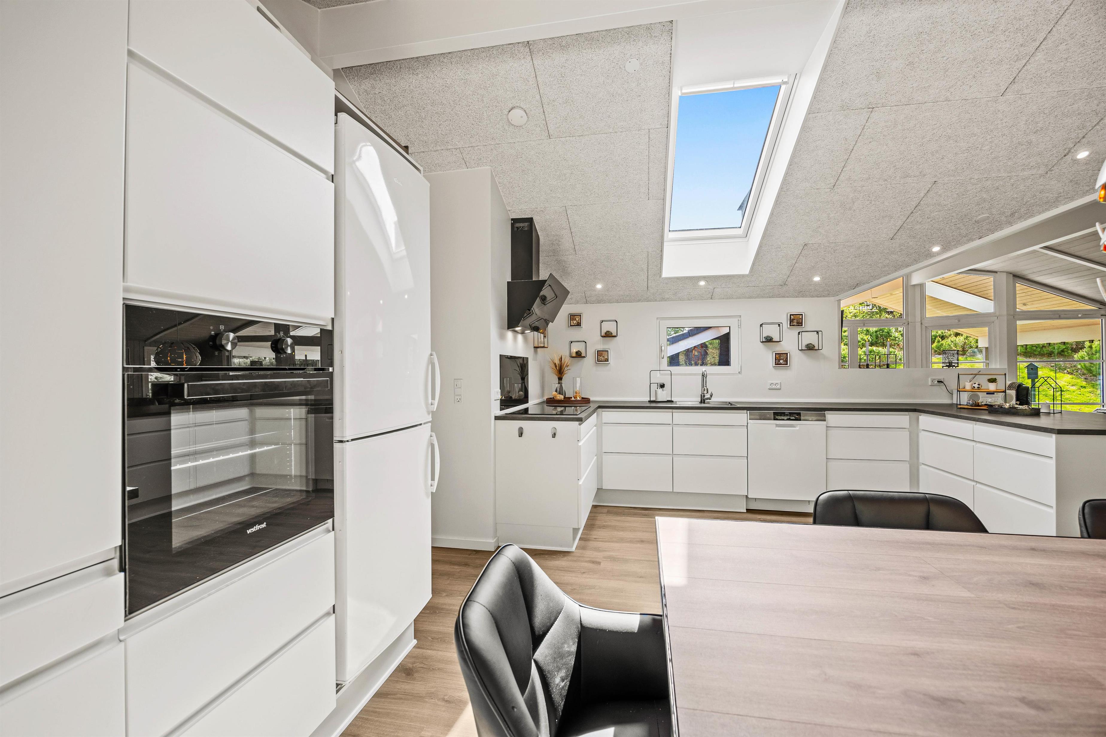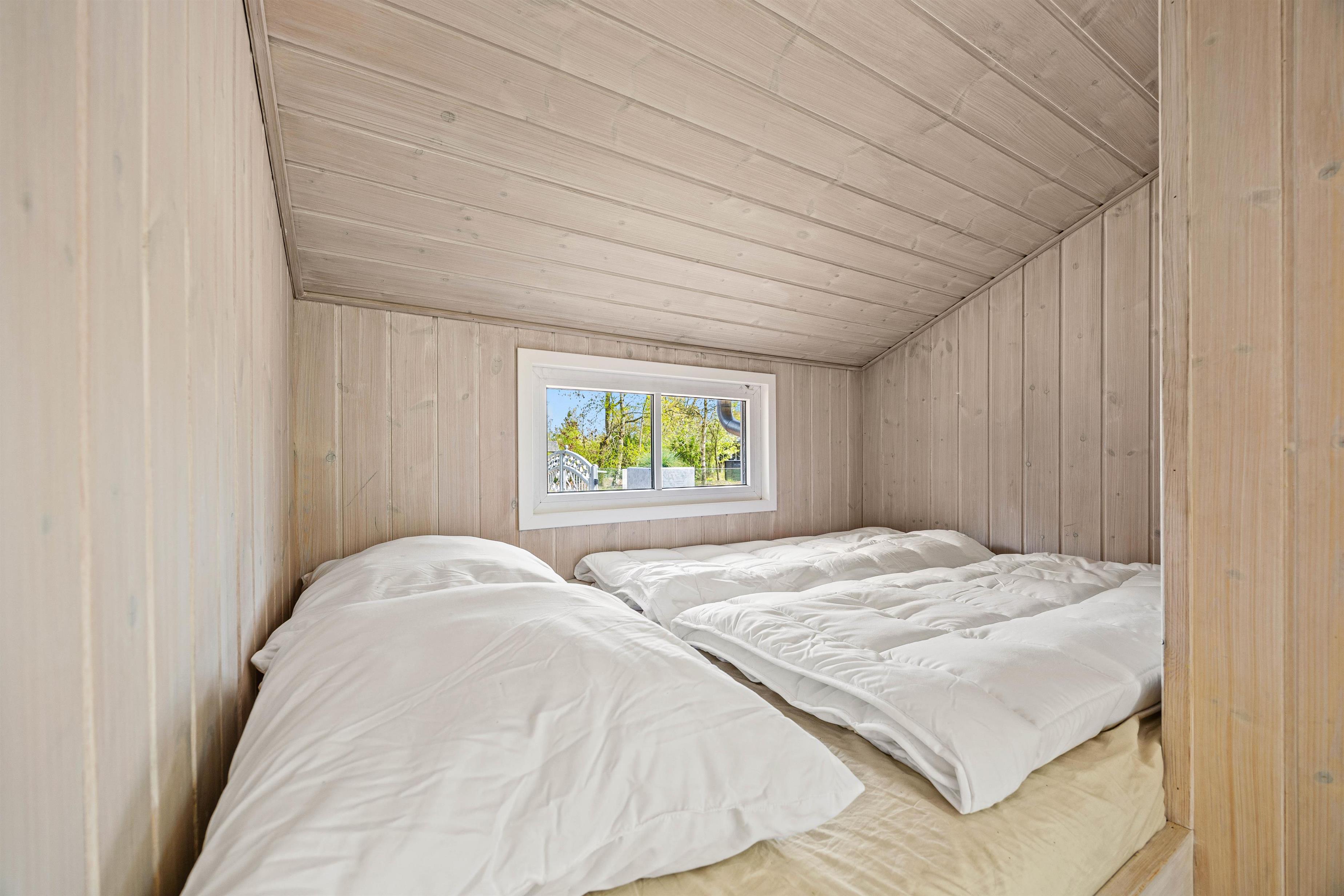Indretningen er lys og imødekommende med 3 rummelige soveværelser, alle med dobbeltsenge og god opbevaringsplads. Dertil kommer en hyggelig alkove med 2 sovepladser, som især børnene vil elske. I sommerhuset findes 2 fine badeværelser, hvilket er en stor fordel, når I er mange samlet. Begge badeværelser har gulvvarme, så I altid kan starte og slutte dagen i varme og behagelige omgivelser.