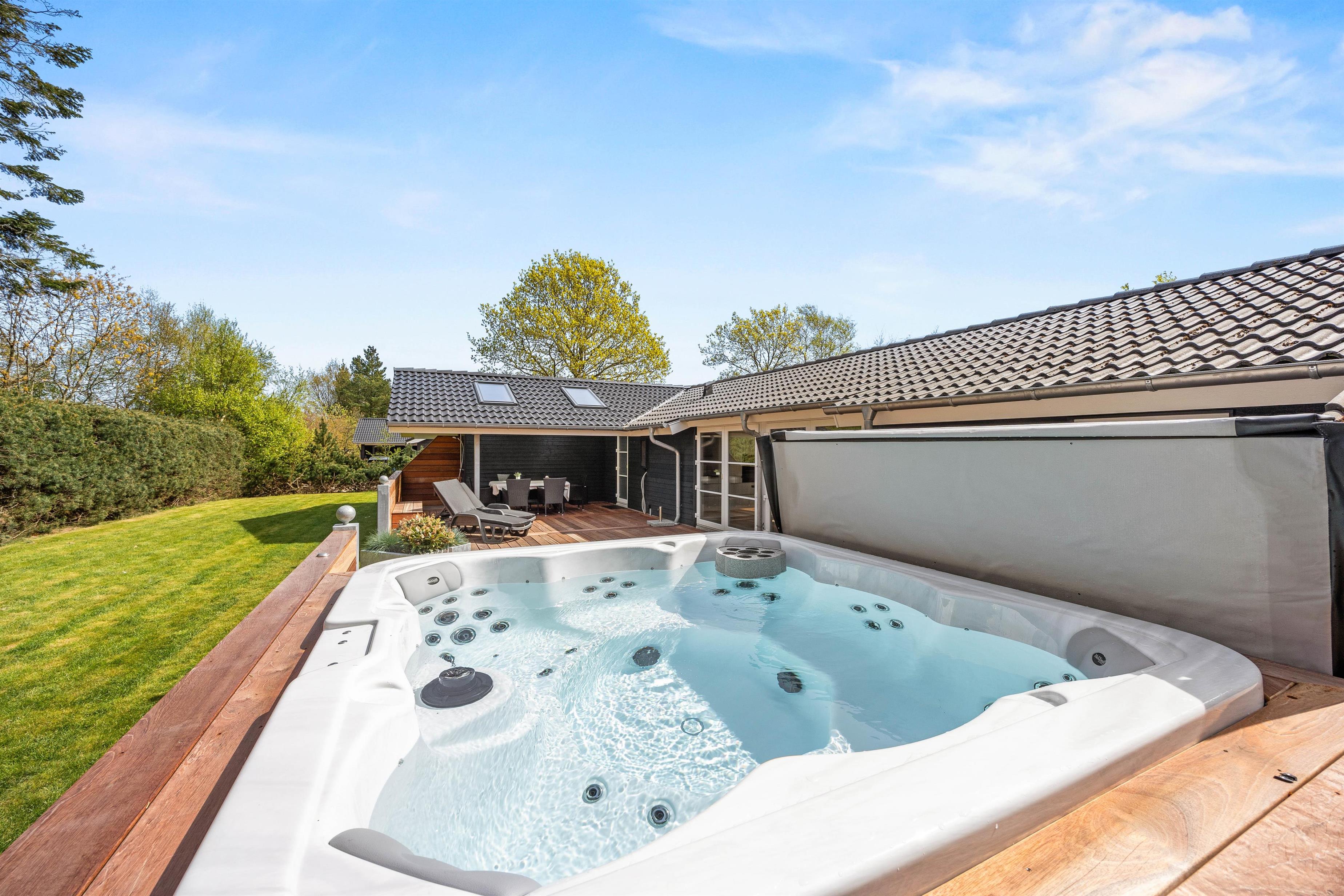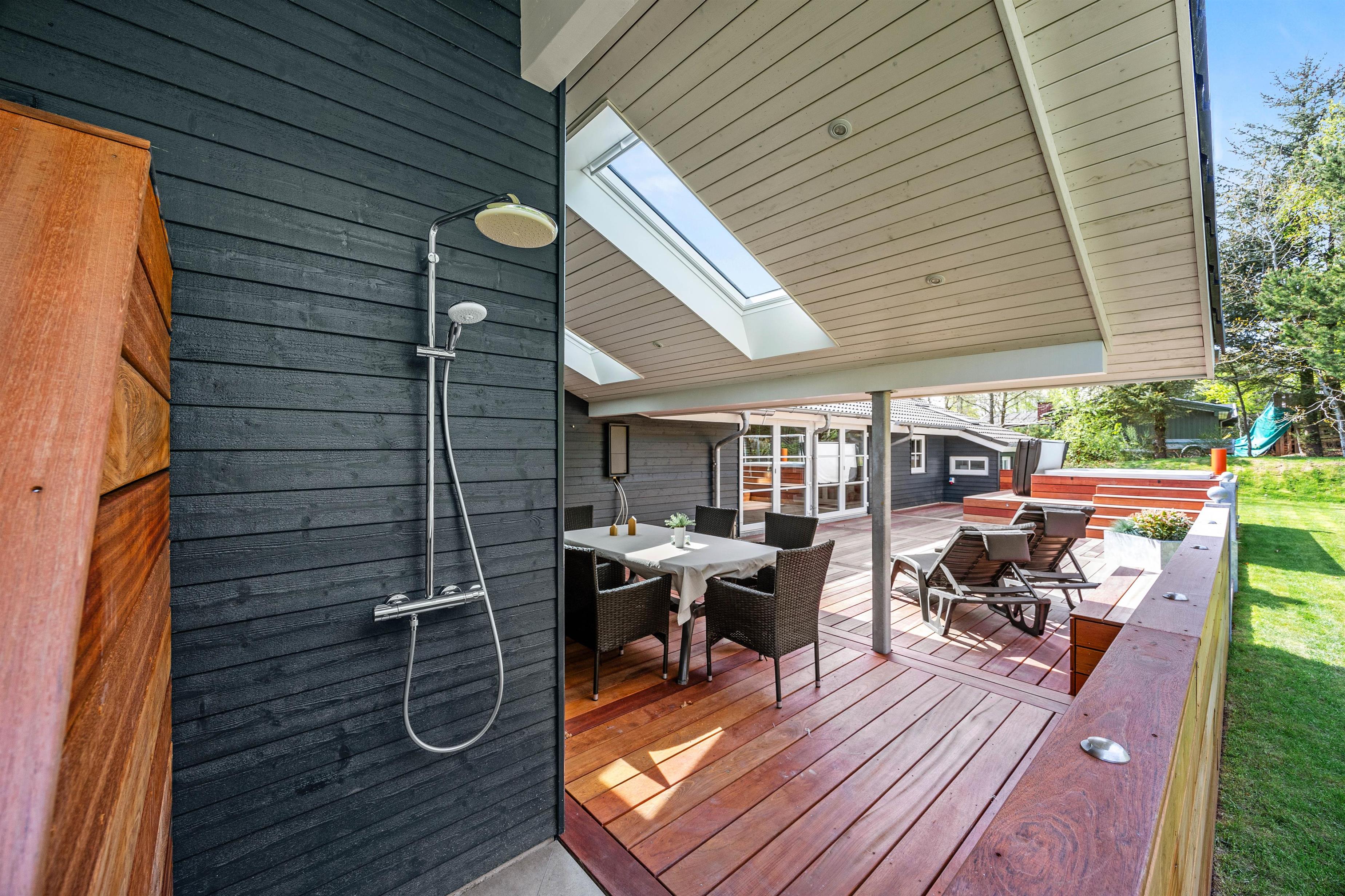 Udendørs feriestemning med udendørs spa og udebruser