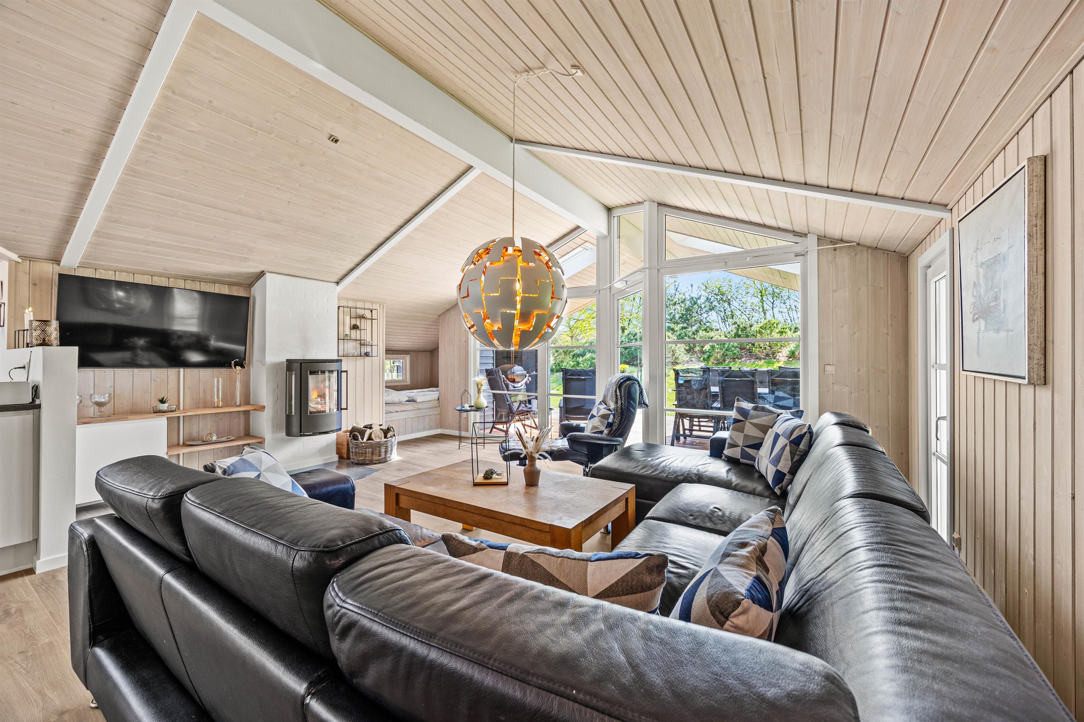 På kølige dage kan I tænde op i brændeovnen, som spreder varme og giver en autentisk sommerhusstemning. Sæt jer godt til rette i sofaen og nyd hinandens selskab. En god feriedag kan sluttes af med både brætspil eller en god film i fjernsynet. Jeres medbragte vin kan lægges på køl i sommerhusets vinkøleskab.