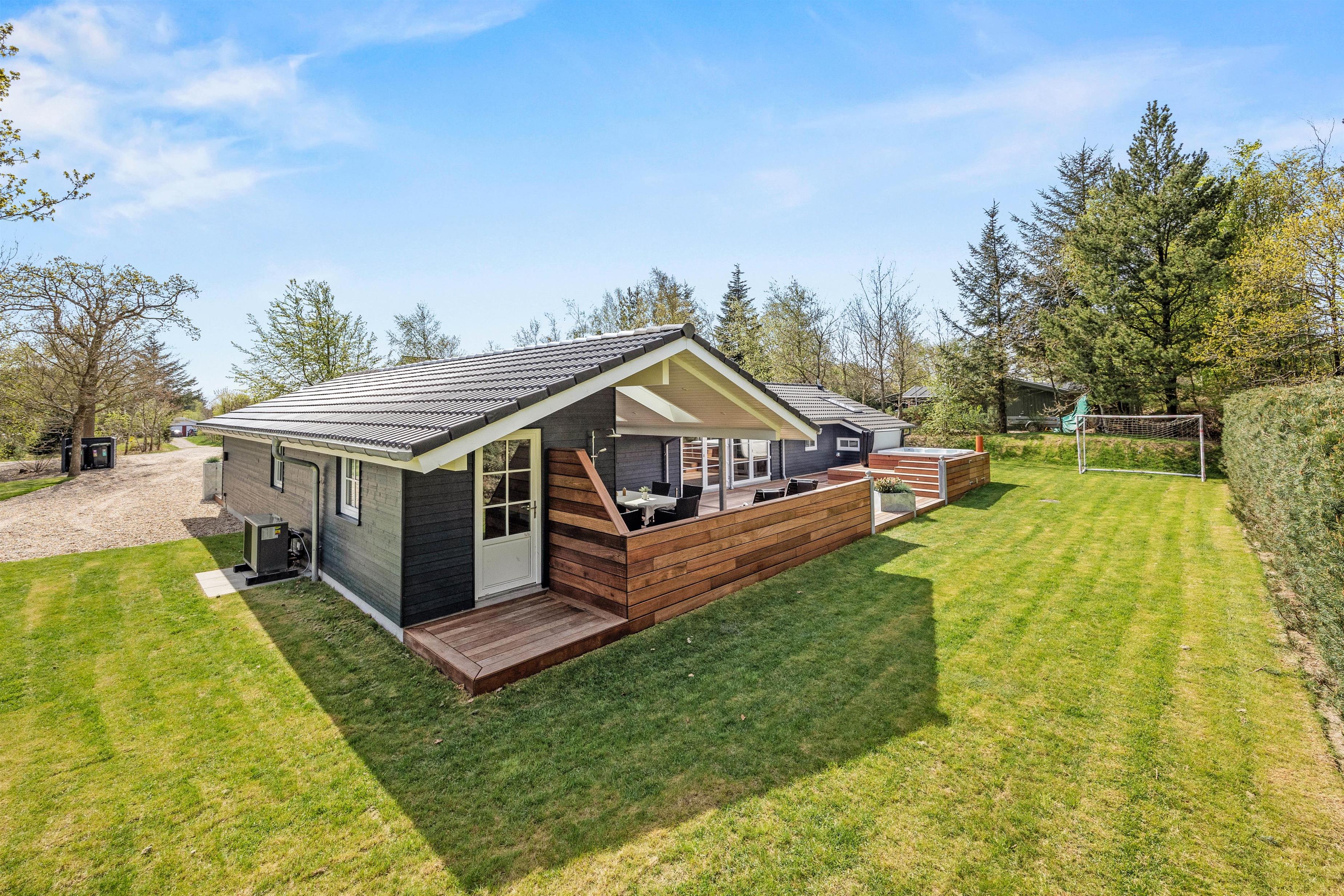 På Thomas Jensens Vej 12 i rolige Henneby venter dette skønne og moderne sommerhus på at danne rammen om jeres næste ferie. Her får I det bedste af begge verdener: fredelige omgivelser i naturen og et sommerhus, hvor komfort og kvalitet er i højsædet. Sommerhuset er renoveret i 2025 og fremstår lyst og indbydende med sans for detaljen – ideelt for både familier og vennegrupper, da det byder på plads til op til 8 personer. Et af sommerhusets højdepunkter finder I under åben himmel – her venter en udendørs spa, hvor I kan lade roen sænke sig.