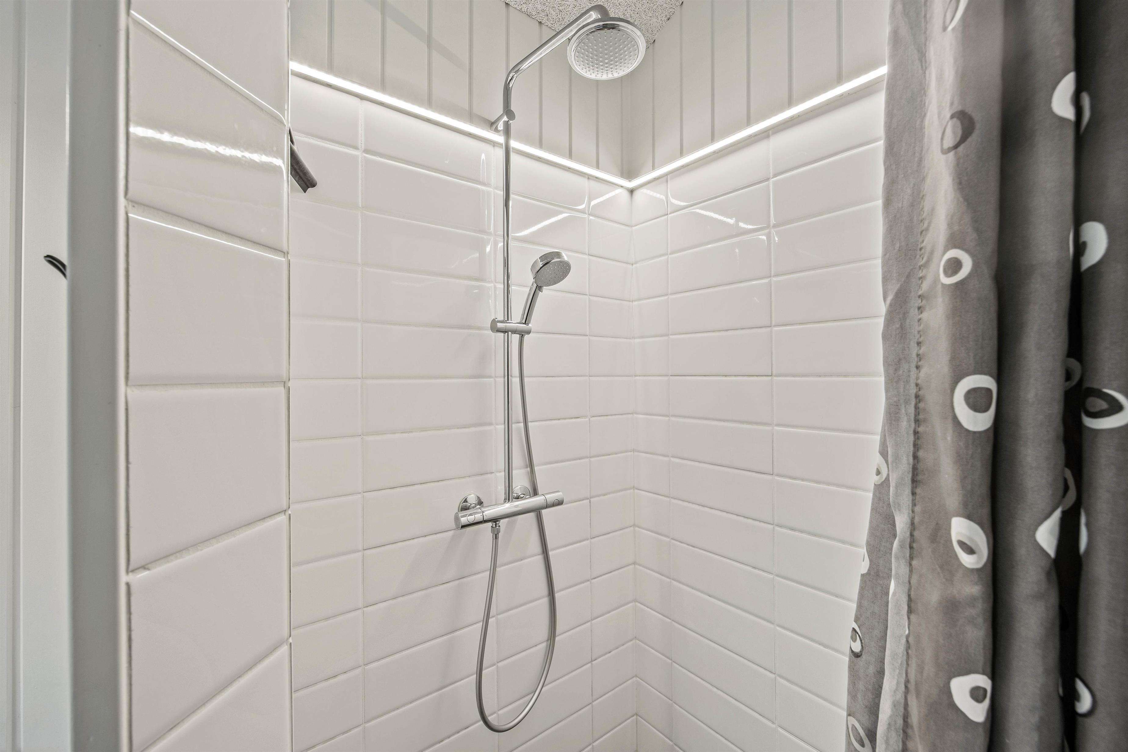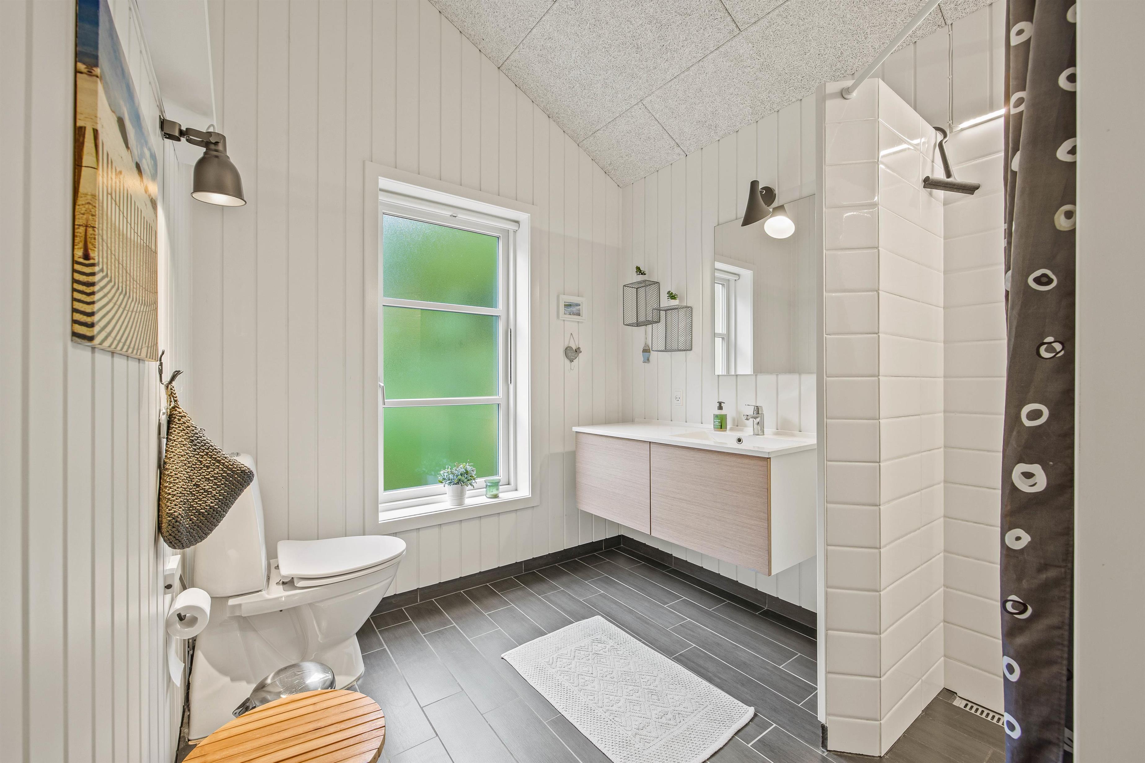 I dette dejlige sommerhus er der ingen grund til at stå i kø om morgenen, da sommerhuset råder over 2 gode badeværelser, som begge er udstyret med gulvvarme. I det ene badeværelse står en vaskemaskine til rådighed for at kunne være behjælpelige med jeres vasketøj.