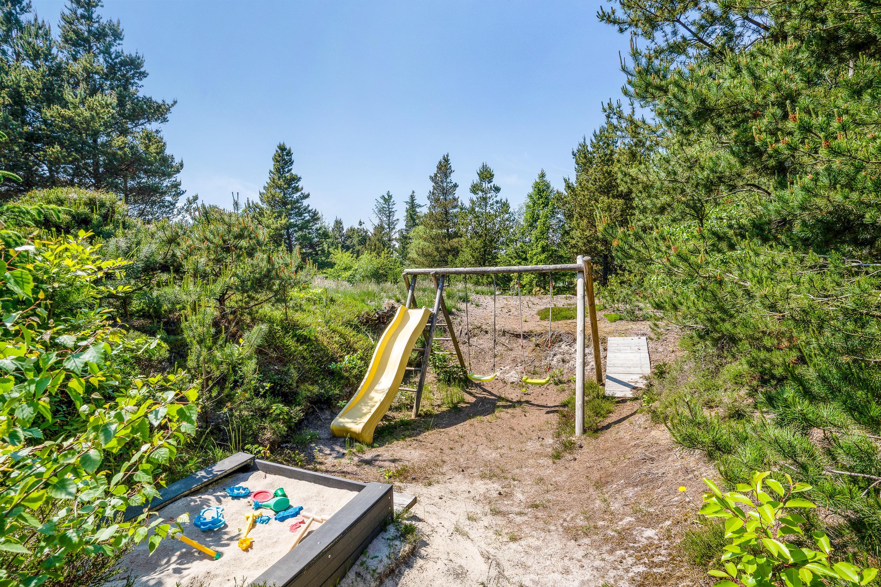 Der er også tænkt på de små gæster, som har deres egen lille legeplads med rutsjebane, gyngestativ og sandkasse.