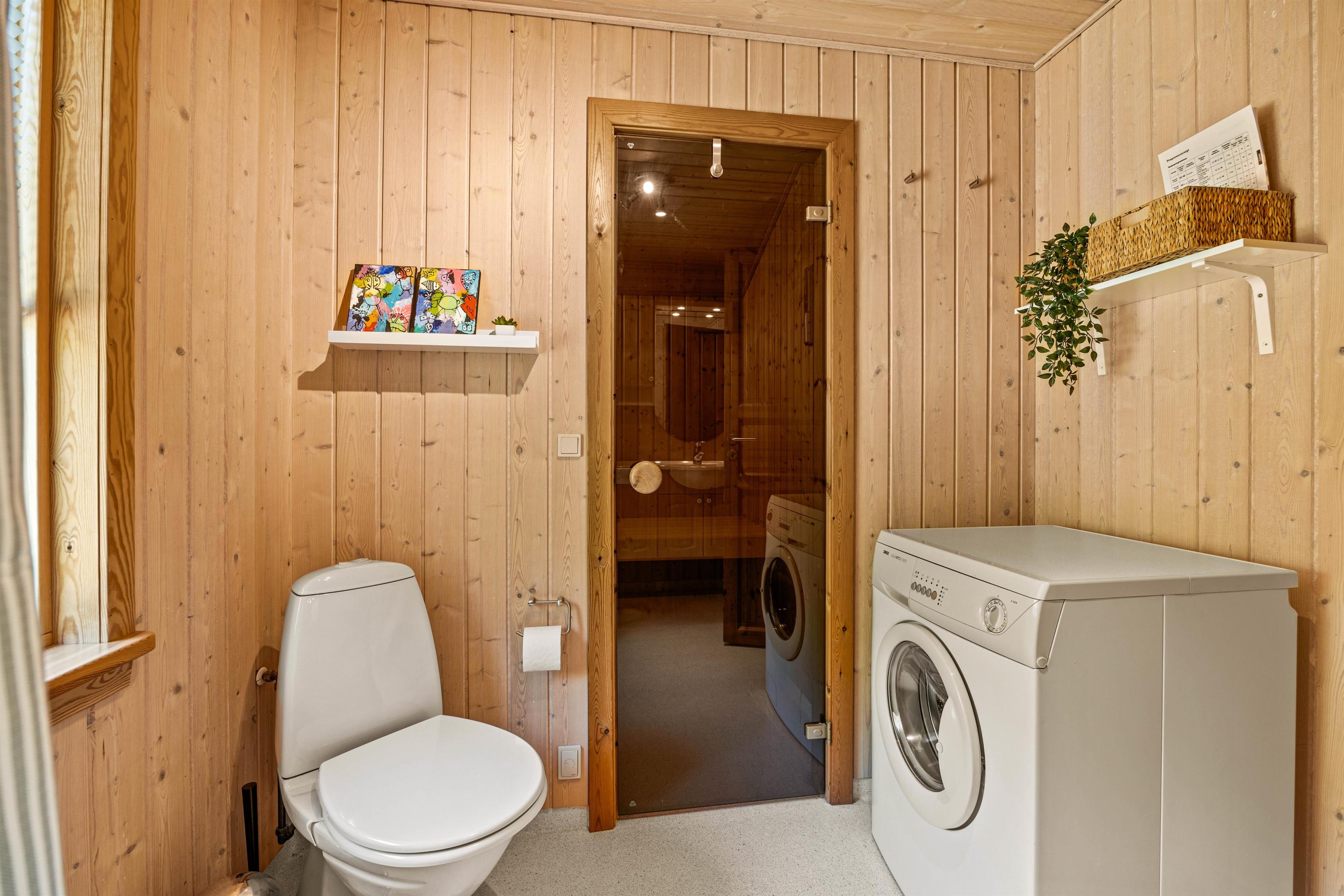 Beliggenheden lægger op til vandreture i den flotte natur, og efter en lang gåtur under trækronerne og blandt den lyngklædte hede, findes der ingen bedre måde at tanke nye kræfter på end i jeres helt egen sauna, som I har adgang til gennem husets badeværelse.
