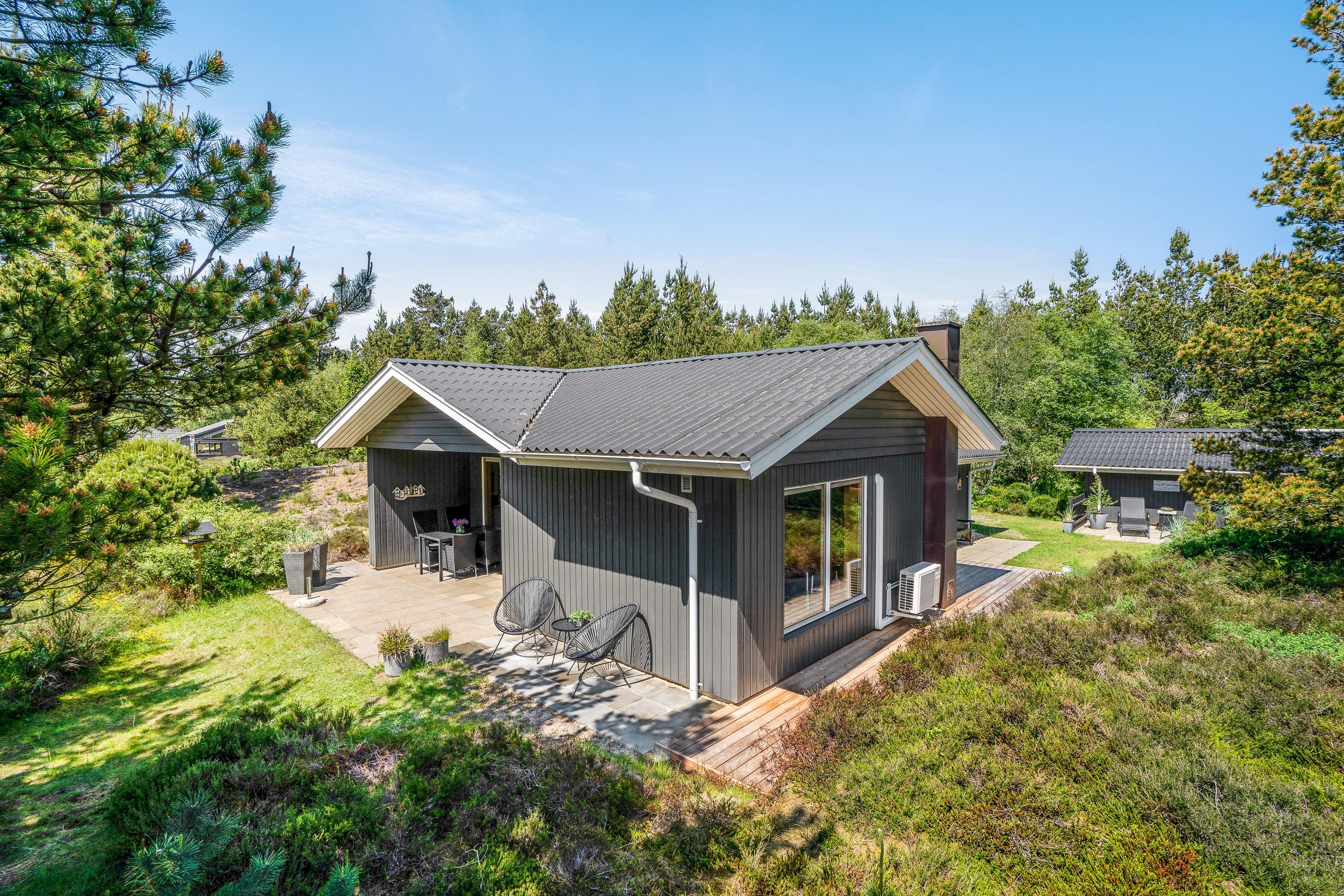 På Hovgårdsvej 29 i Henneby ligger dette skønne sommerhus på en smuk naturgrund. Her vil naturelskerne befinde sig rigtig godt; Kun få meter fra feriehuset starter Blåbjerg Plantage, som med sine mange vandre- og cykelstier giver jer mulighed for at udforske den rige natur på tæt hold. Og efter en gåtur i den friske luft, kan I tanke ny energi i husets skønne sauna.