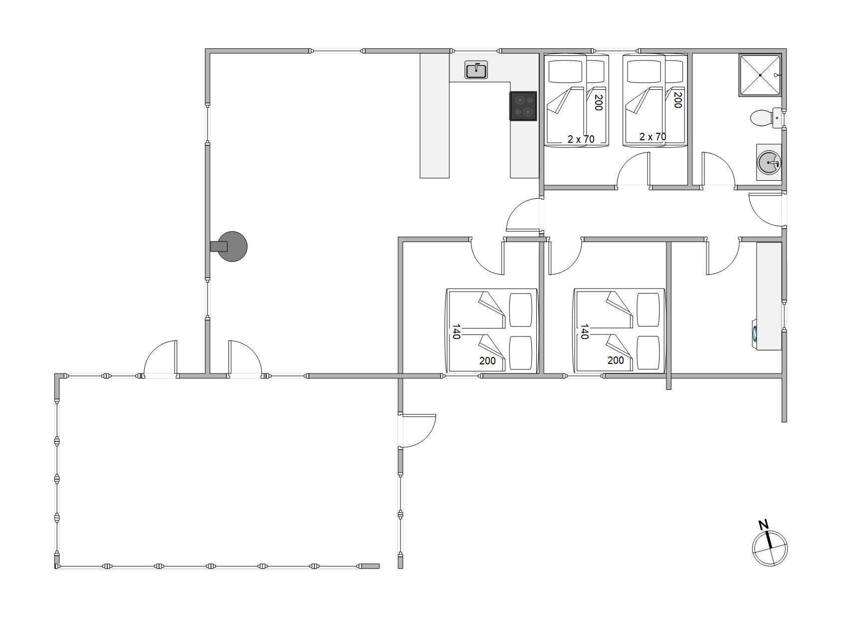 Dette skønne sommerhus er ideelt til jer, der søger et bekvemt og rummeligt ophold. Med plads til op til 6 personer fordelt på tre soverum, er der dobbelt så meget plads som nødvendigt. To komfortable dobbeltsenge og 2 etagesenge sikrer, at alle får en god nattesøvn.