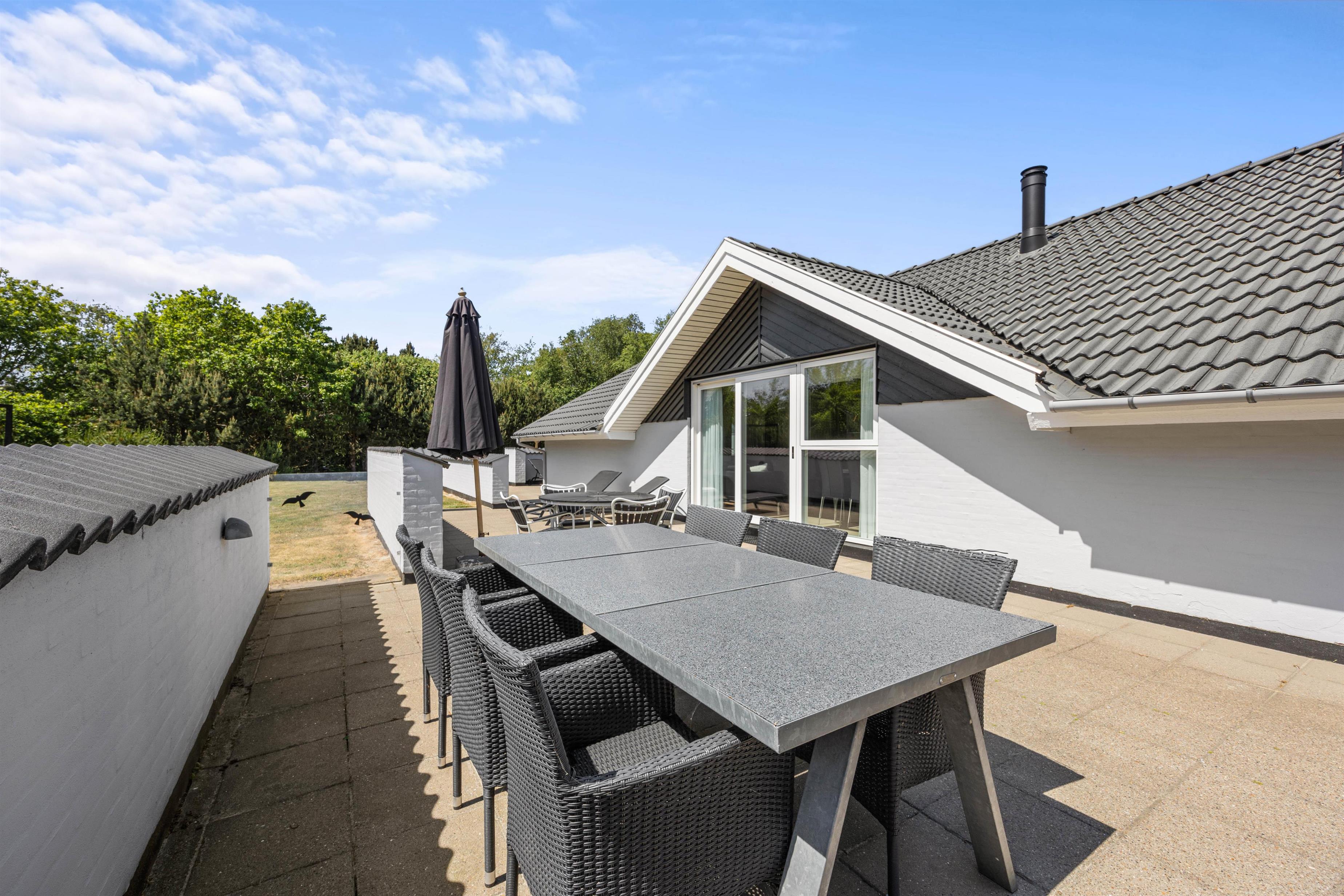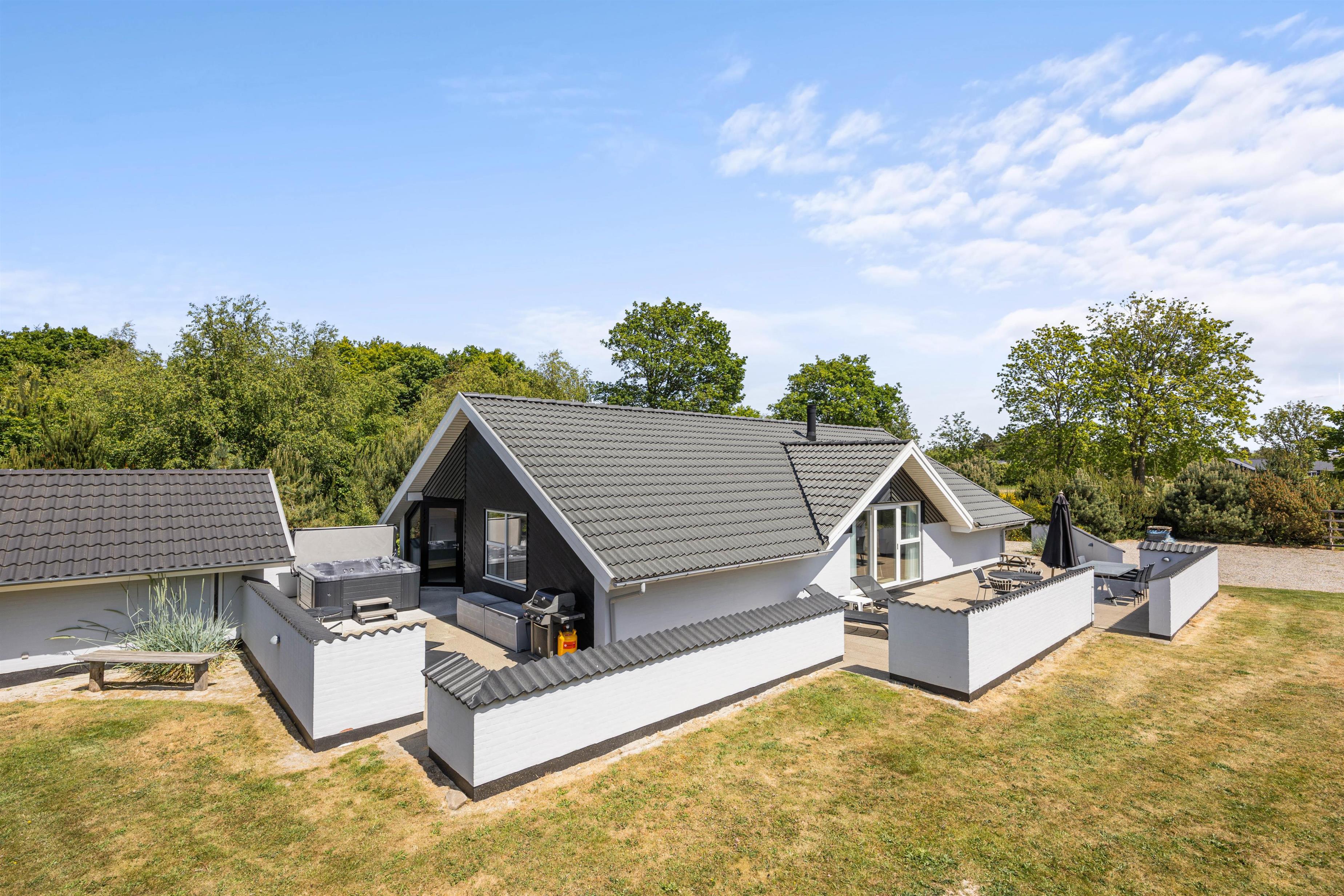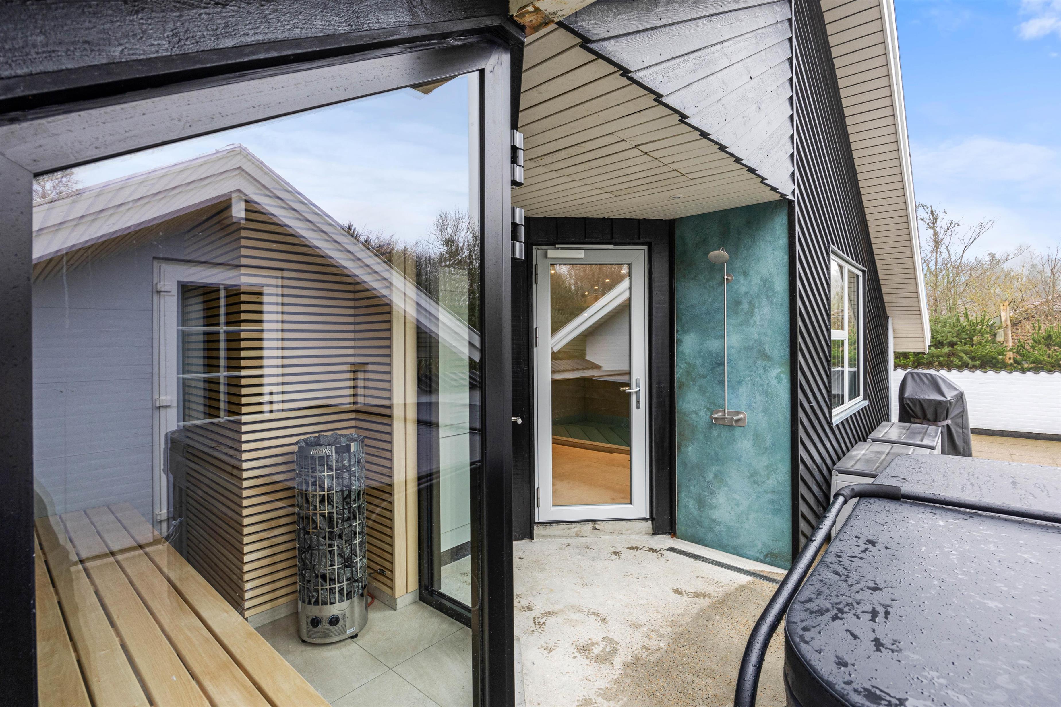 Og skulle I trænge til endnu mere wellnes, står sommerhusets dejlige udespa (til 5 personer), udesauna og udebruser til jeres rådighed på den ene af sommerhusets mange hyggelige terrasser.