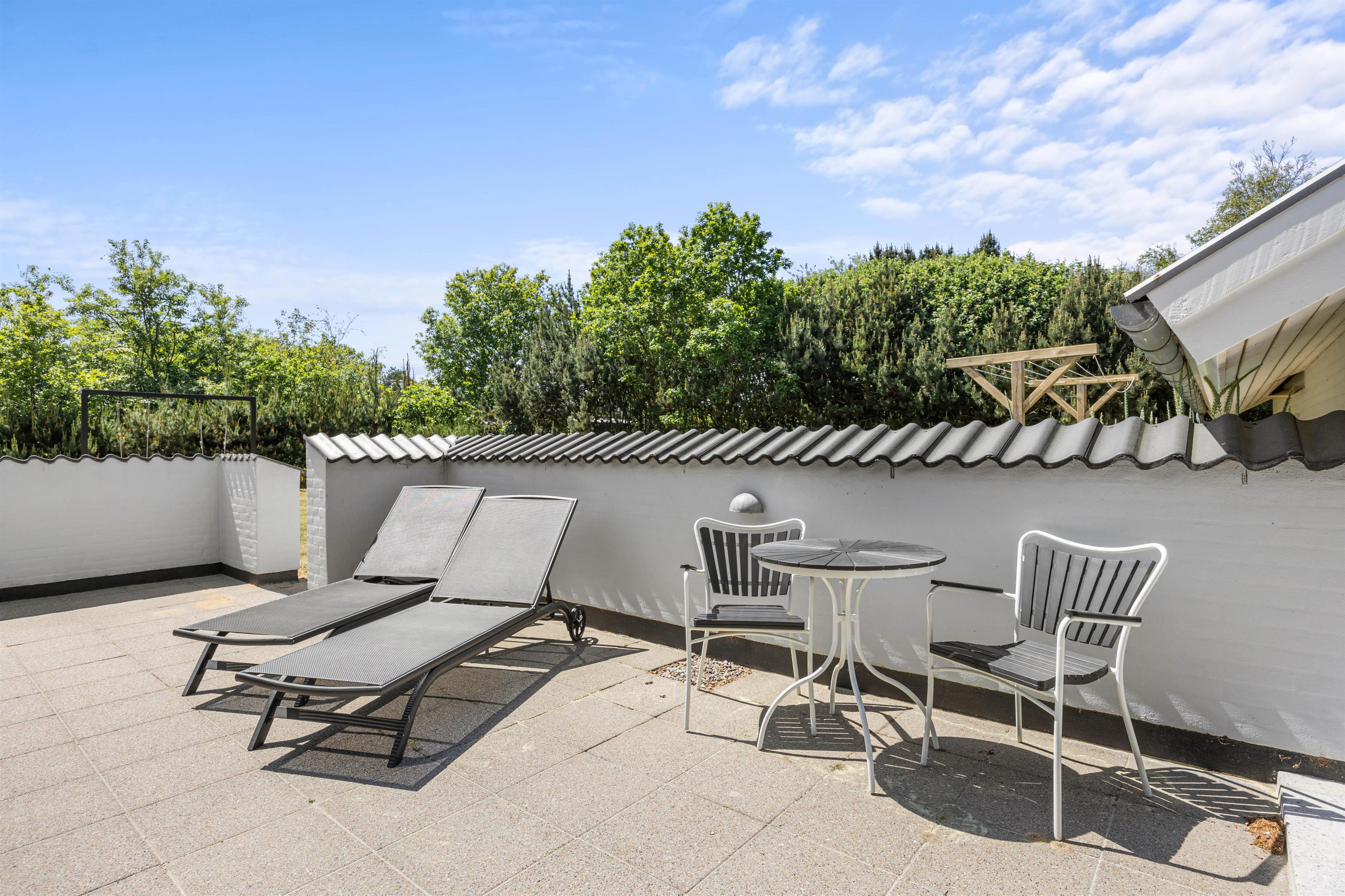 Den store terrasse og haven ligger op til en masse dejlige udendørs timer, hvor alle, både store og små kan være med. Muren omkring terrassen har indbygget hyggebelysning, som er med til at give en dejlig stemning, når man sidder ude om aftenen.