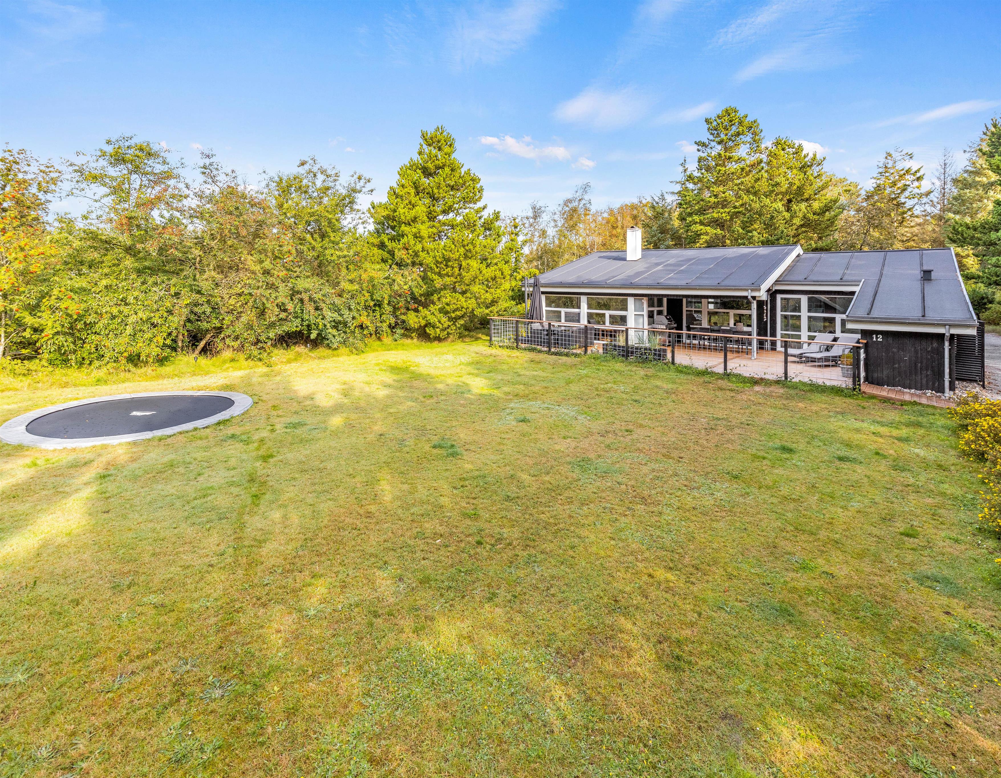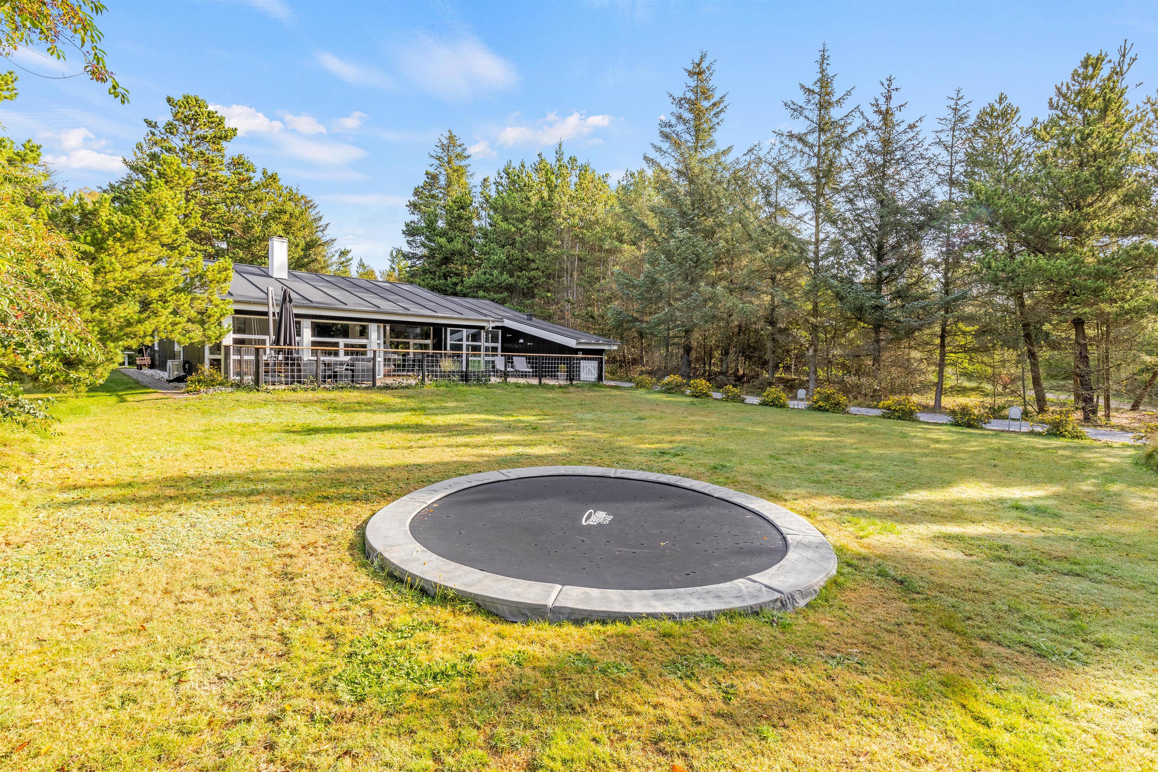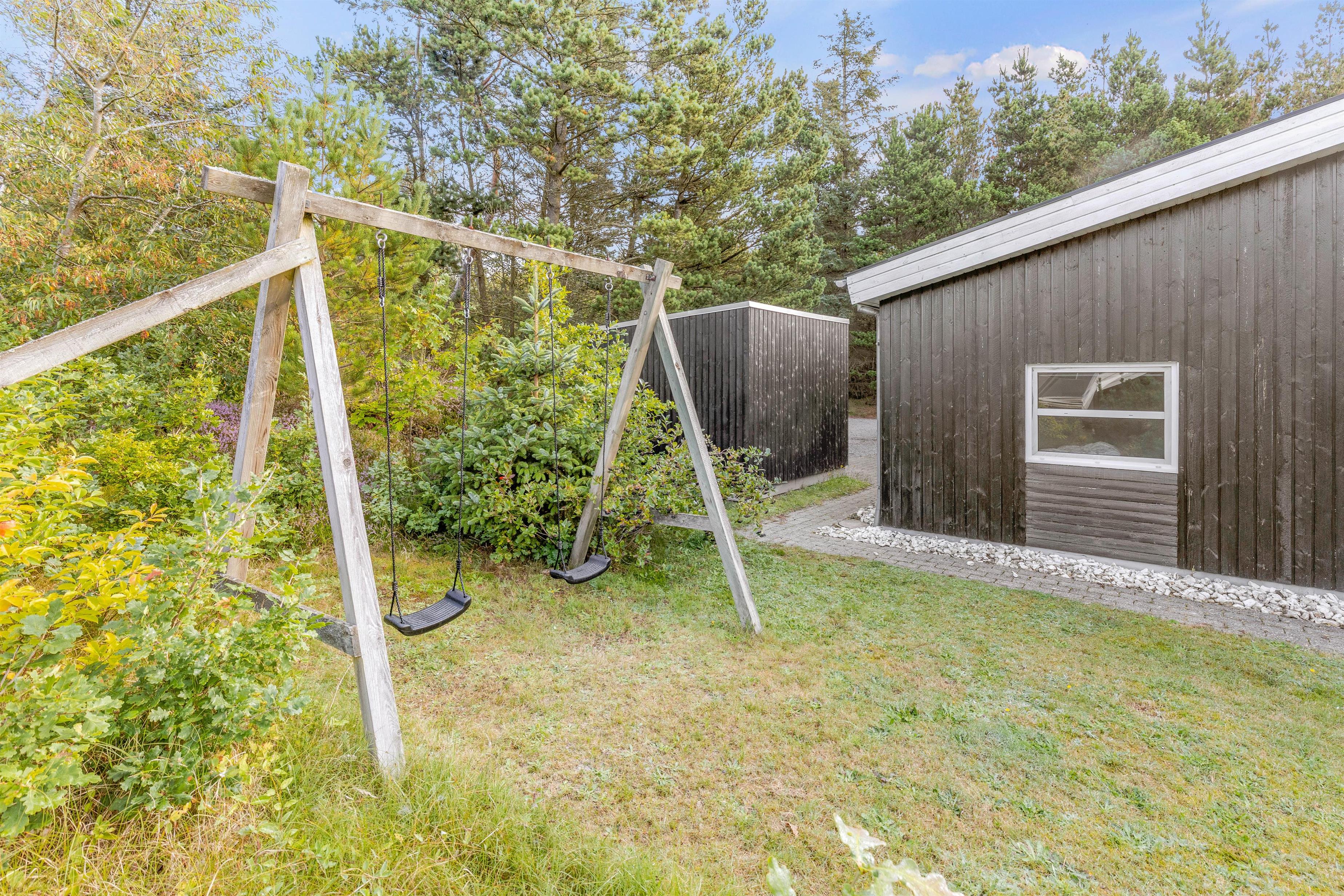 Den store græsplæne er et paradis for børnene, og her kan de lege og tumle dagen lang, mens I daser i liggestolene. Måske kan I også samle familien til et spil vikingespil i det gode vejr? Gyngen og trampolinen (nedgravet) er helt sikkert highlight til de små.