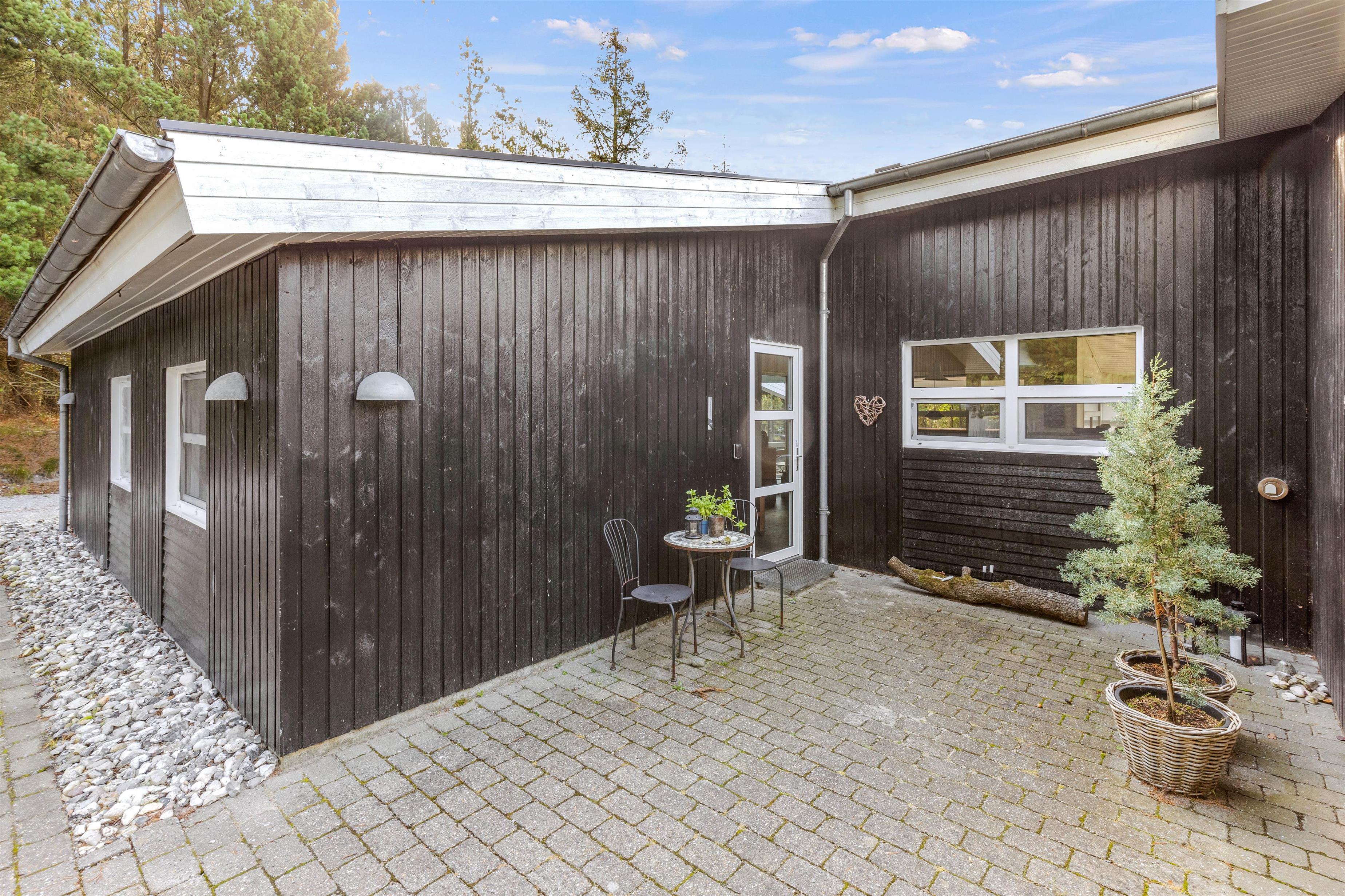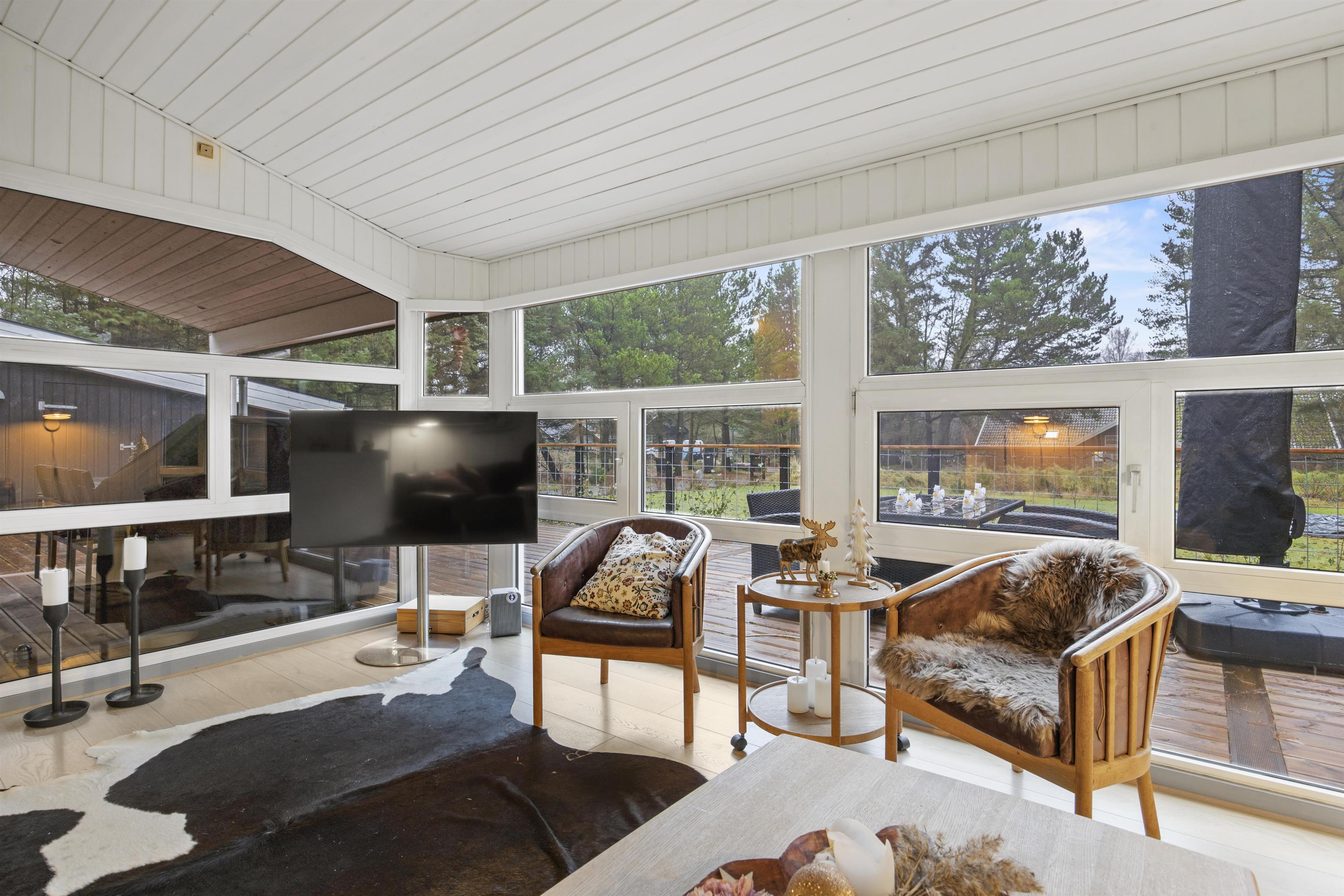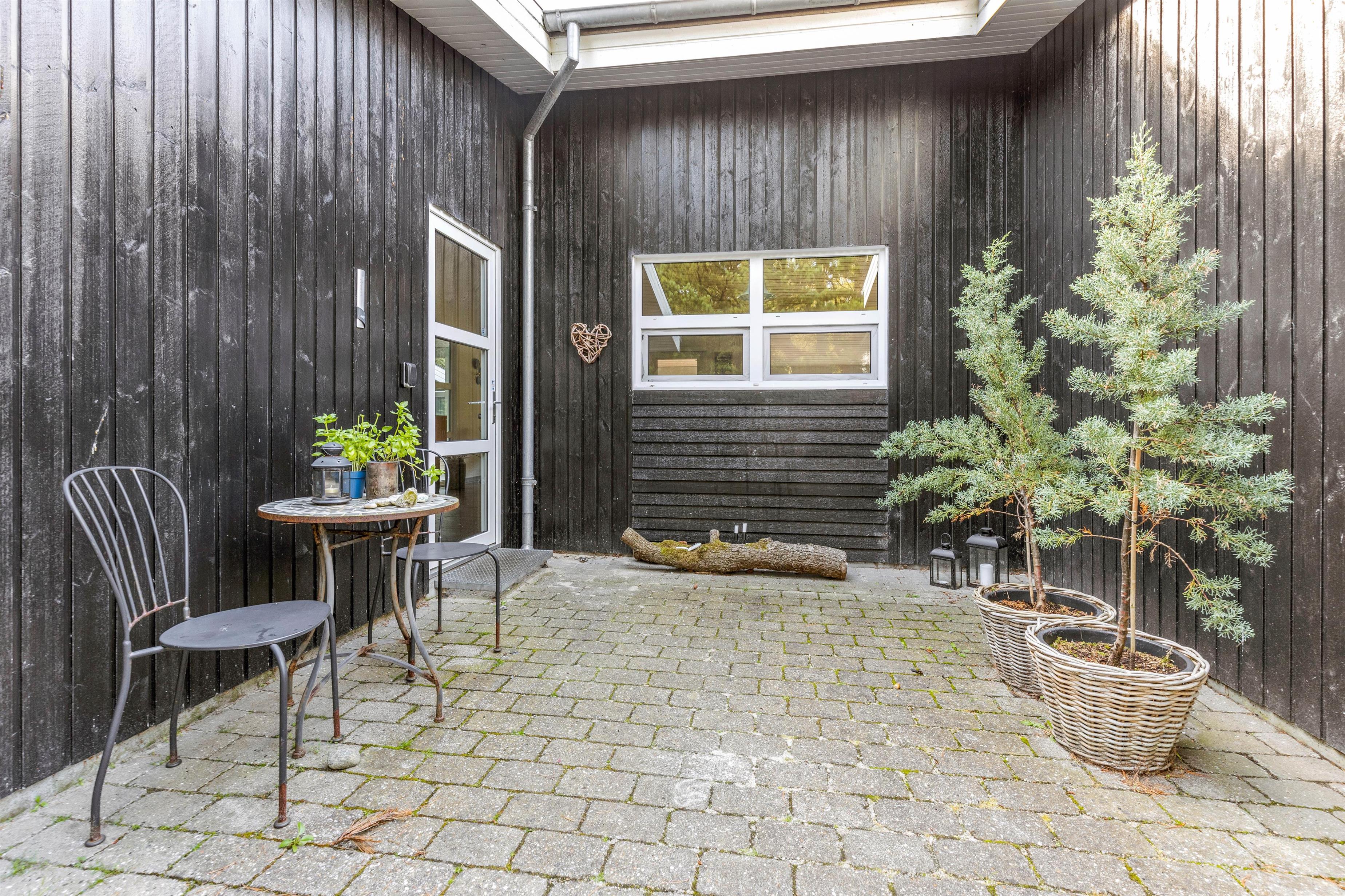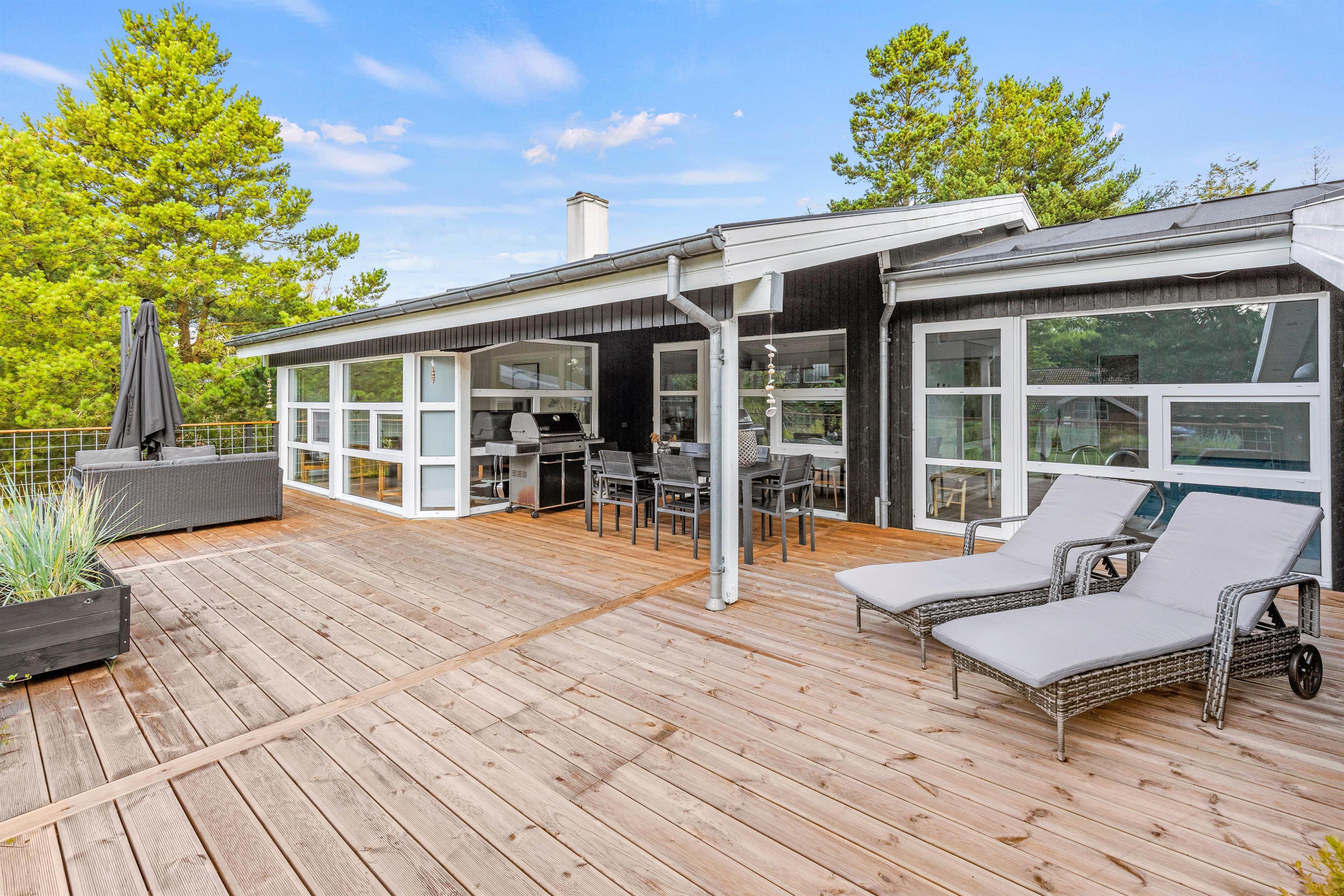På den delvist overdækkede terrasse kan I slappe af i al slags vejr. Her kan I sammen grille eller spise en god morgenmad i solen, mens fuglene synger i trætoppene.