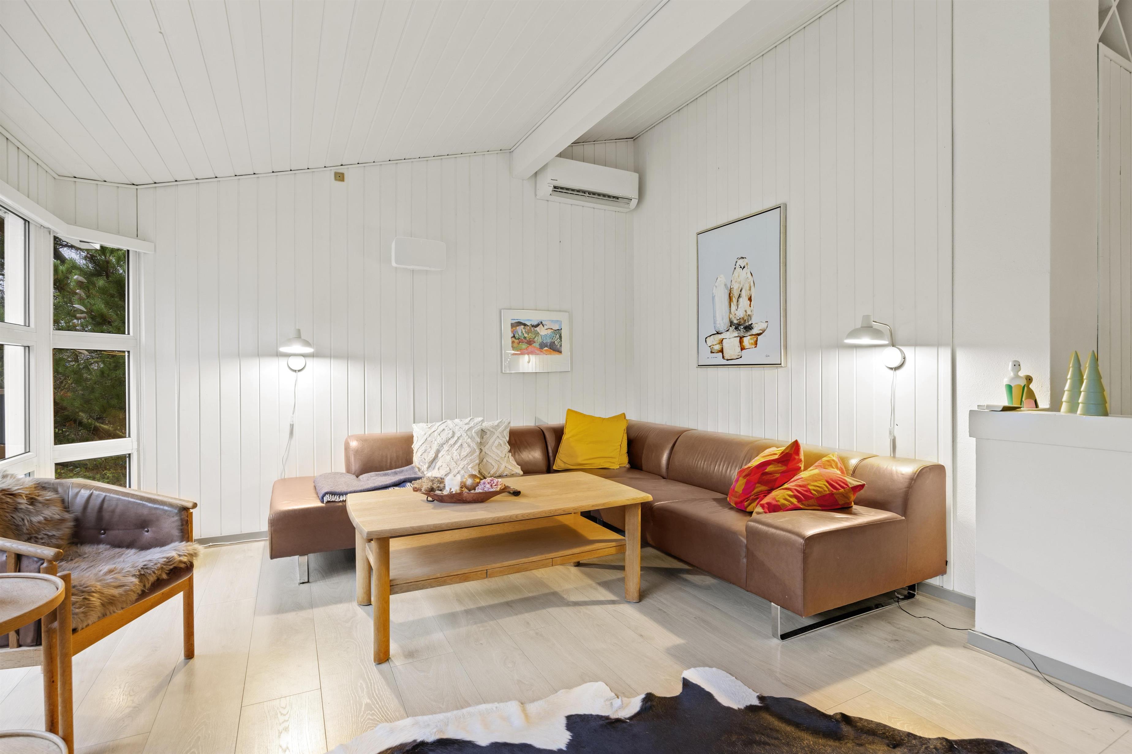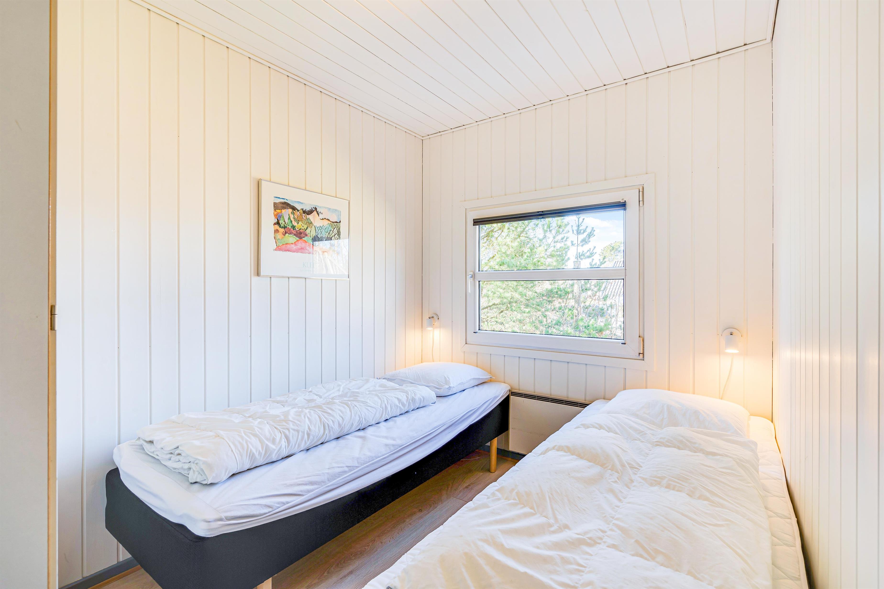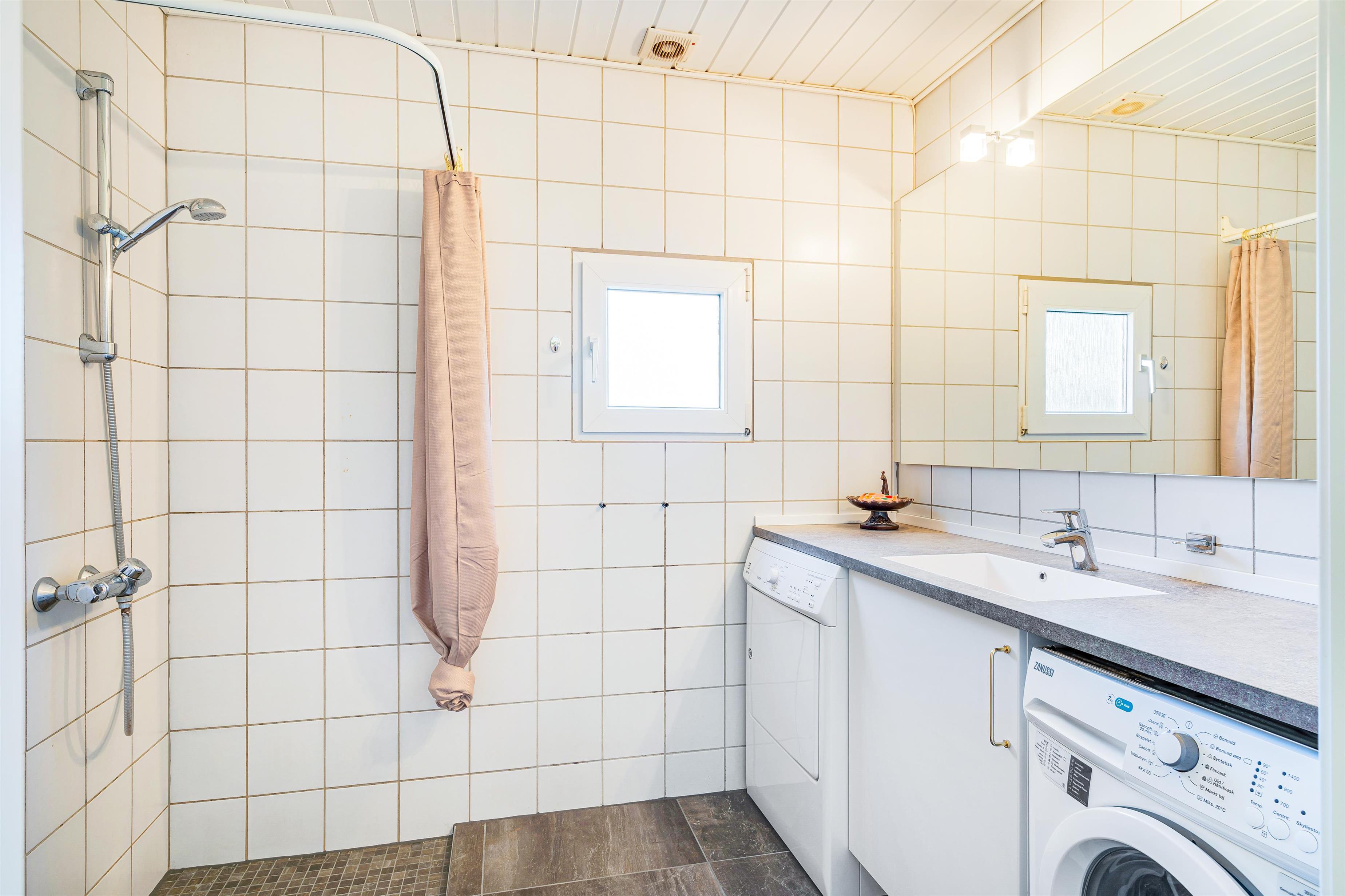 Huset har 2 badeværelser, hvoraf det ene indeholder en dejlig sauna. Her kan I varme jer efter en skøn tur ude ved stranden eller i Blåbjer Plantage, der ikke ligger langt fra dette feriehus.