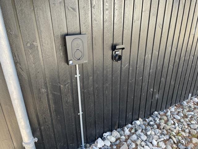 Skulle I have jeres elbil med på ferien, er det muligt at få det ladt op her, da dette skønne feriehus råder over en lademulighed: her er en ladestander - eget ladekabel medbringes (type 2).