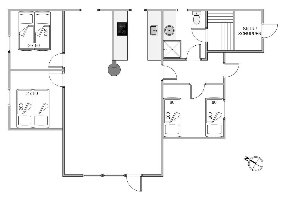 Dette smukke resnoverede feriehus har plads til 6 personer fordelt på 3 soverum. 2 soverum er indrettet med dobbeltsenge, det 3. har enkeltsenge.