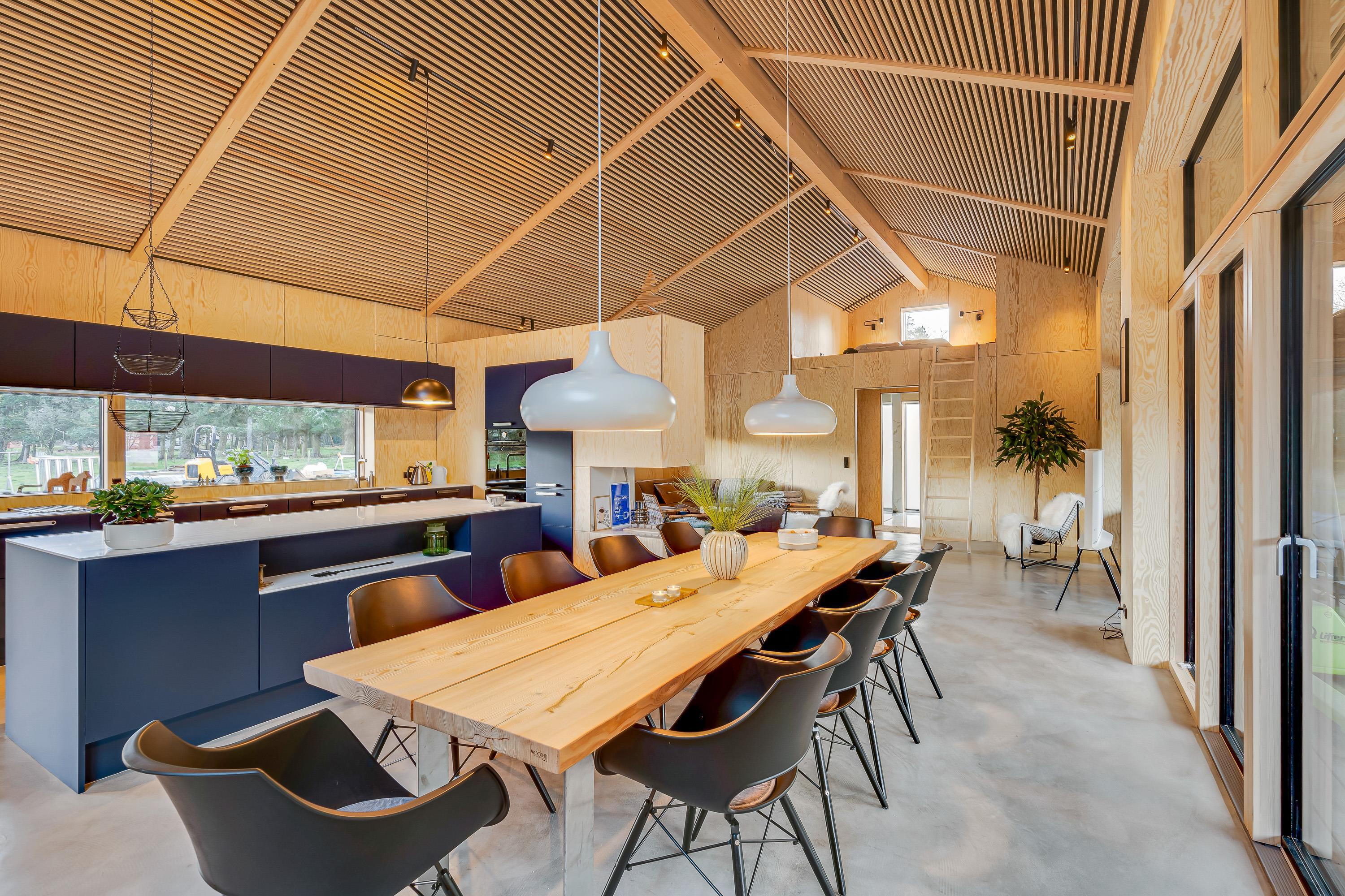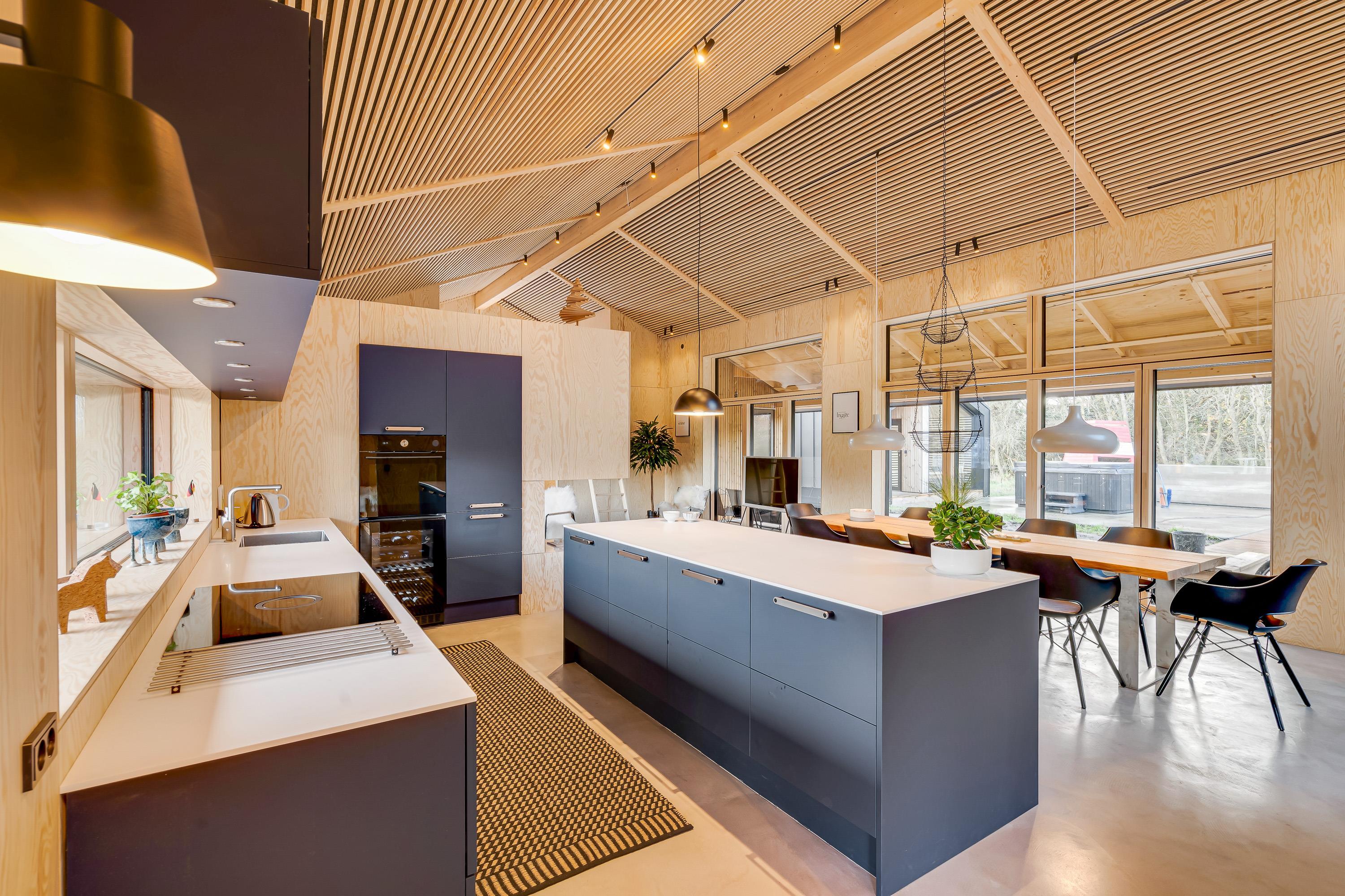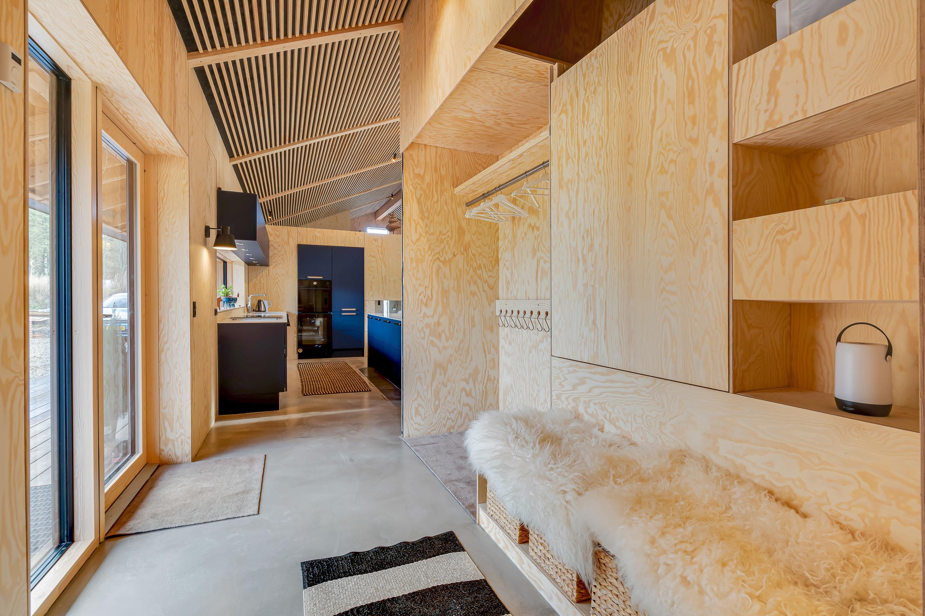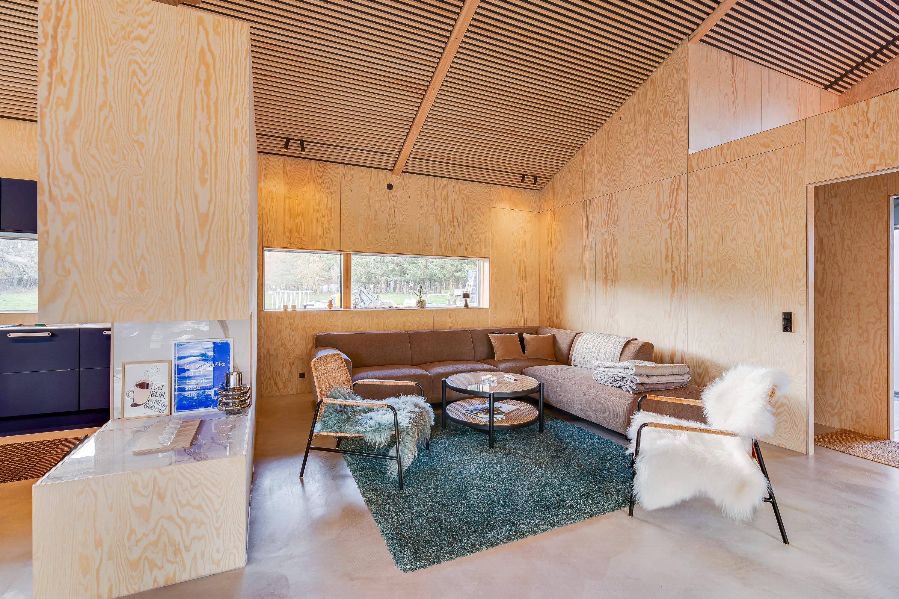 Sommerhuset er indrettet med komfortable og moderne møbler. Desuden er der også gode praktiske faciliteter – vaskemaskine, opvaskemaskine og tørretumbler i sommerhuset, som letter husarbejdet for jer på ferien.