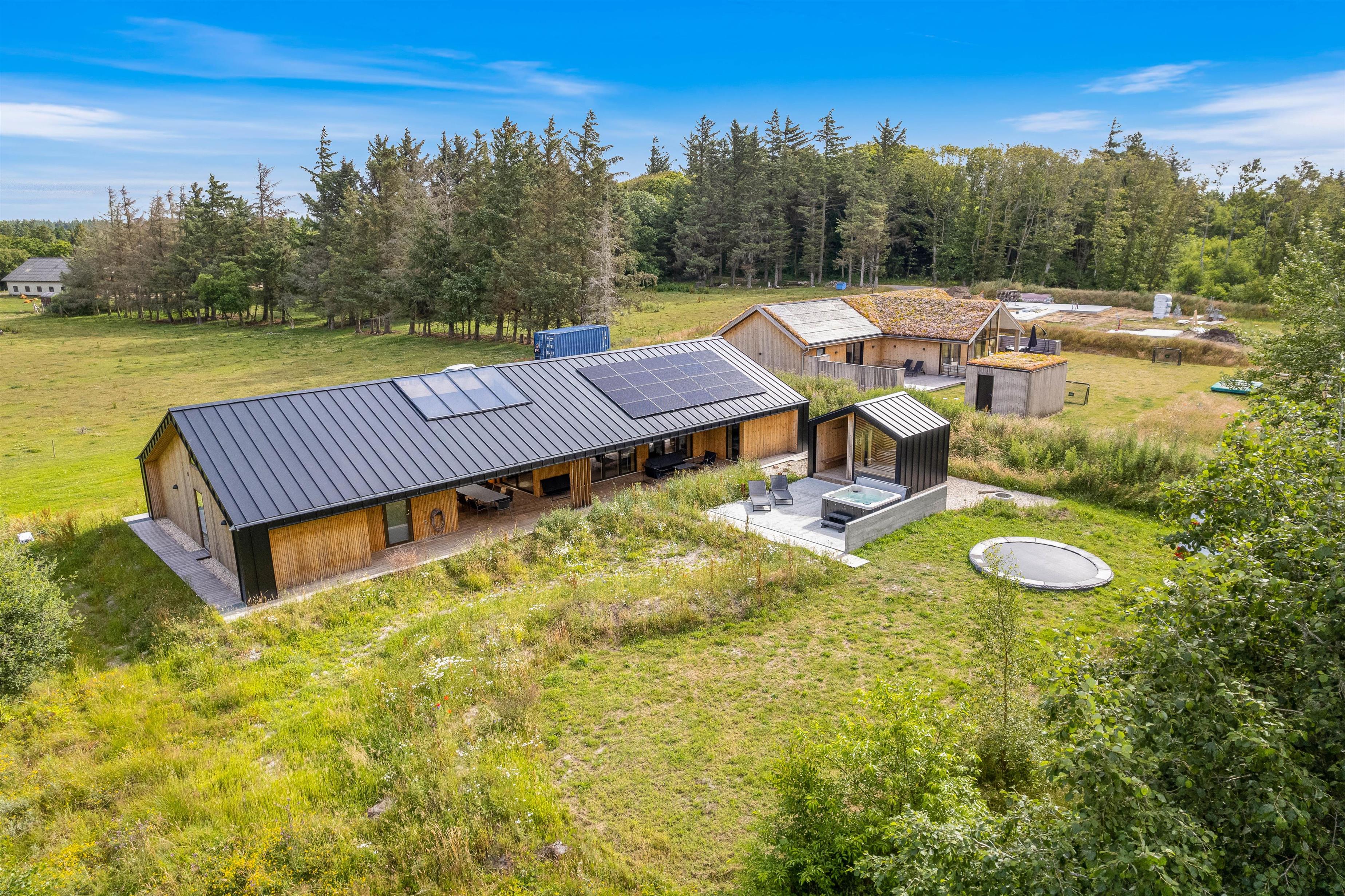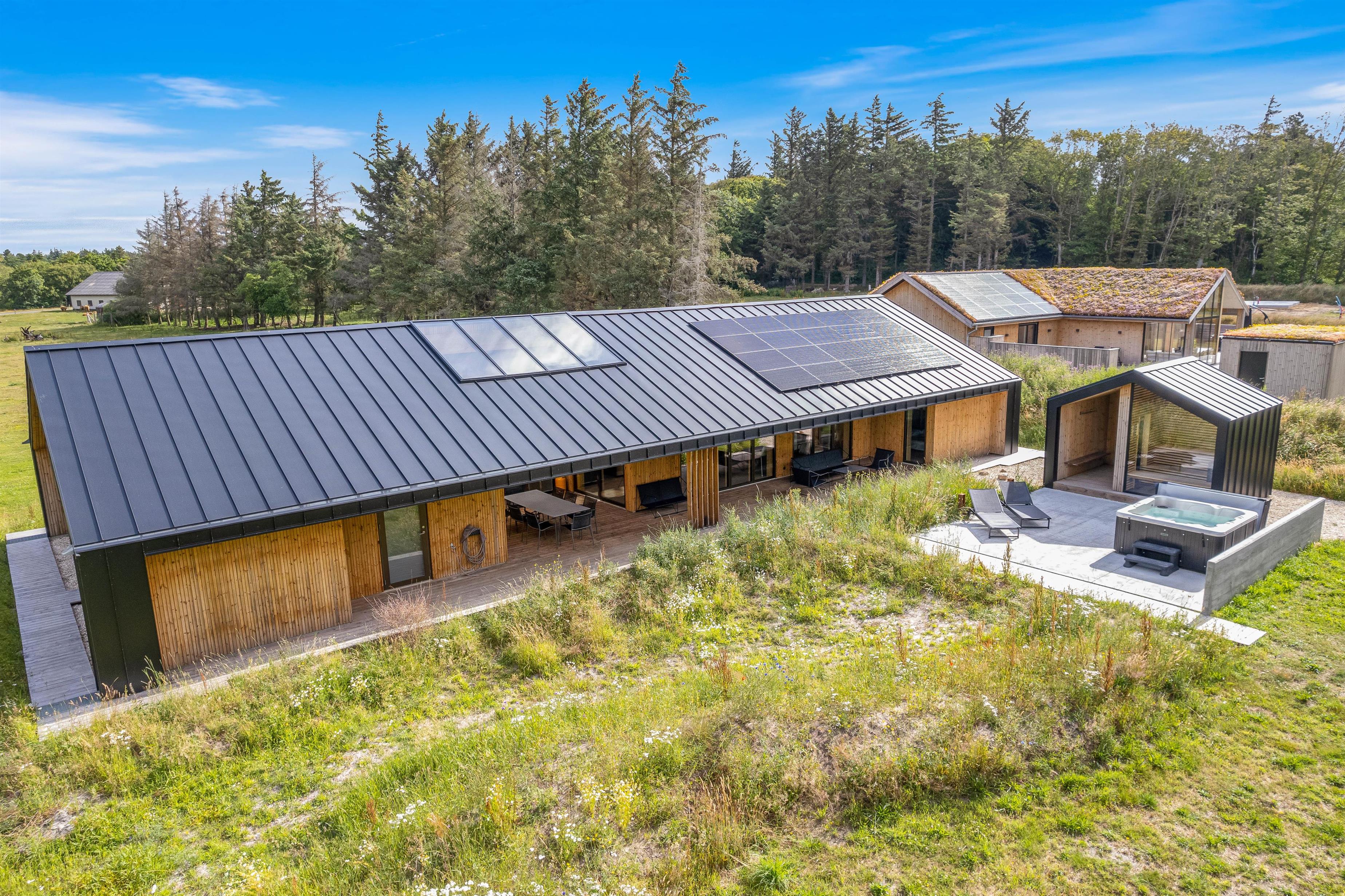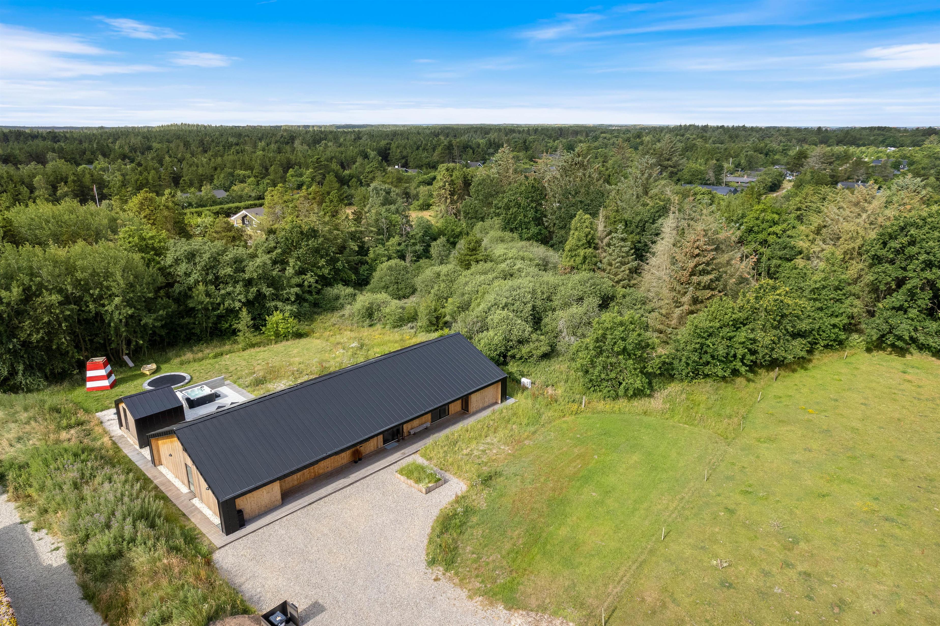 På Strandgodsvej 17 i Henneby står dette lækre luksusferiehus klar til jeres næste ferie. I sommerhuset er der plads til op til 8 personer, og derfor er det et oplagt valg, hvis I er 2 familier eller en vennegruppe, der vil på ferie sammen. Det nybyggede (2022) sommerhus byder på lækre wellnessfaciliteter i form af udespa, udesauna og udebruser, der forkæler jer med ekstra afslapning på ferien. I feriehuset er 1 hund også velkommen.