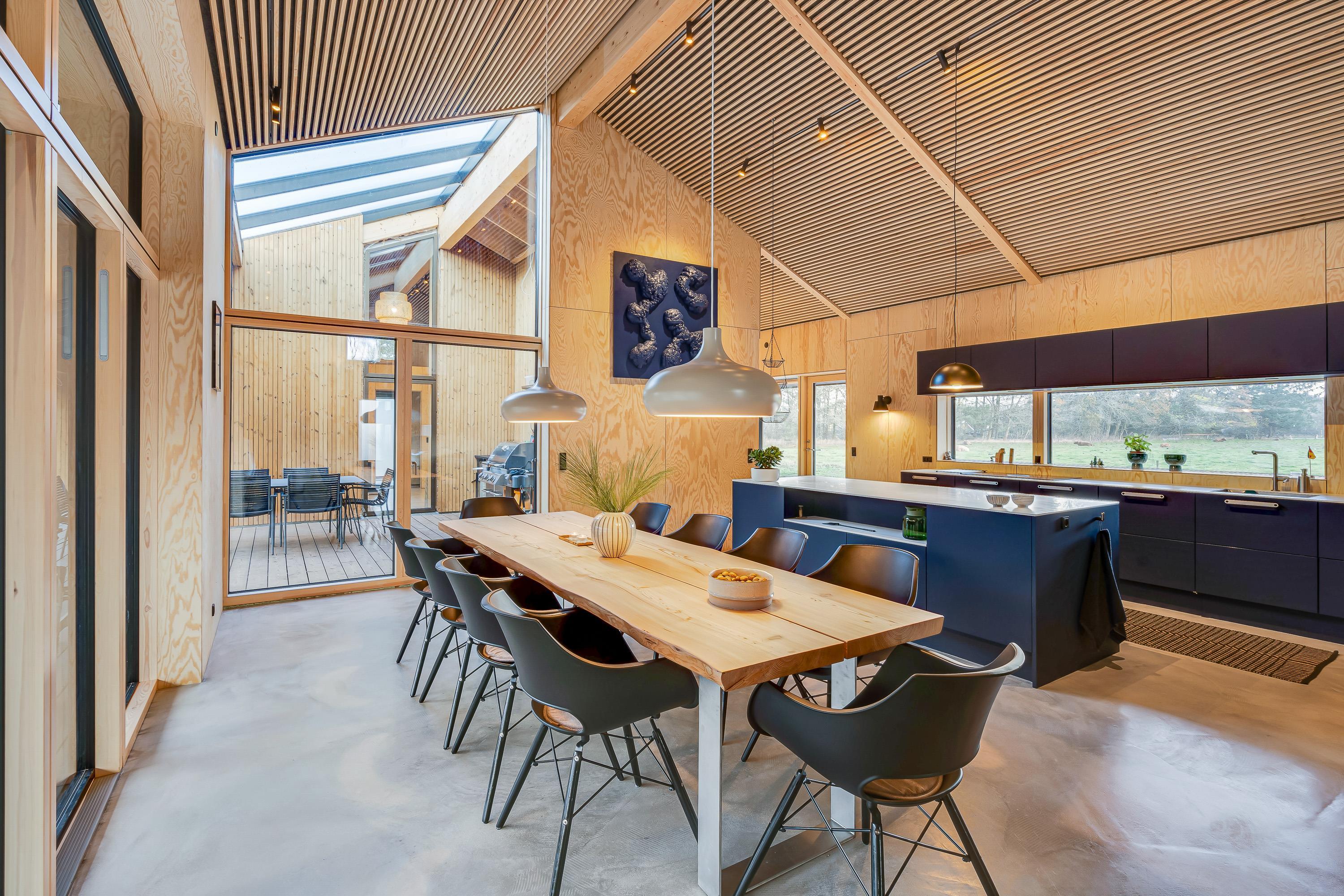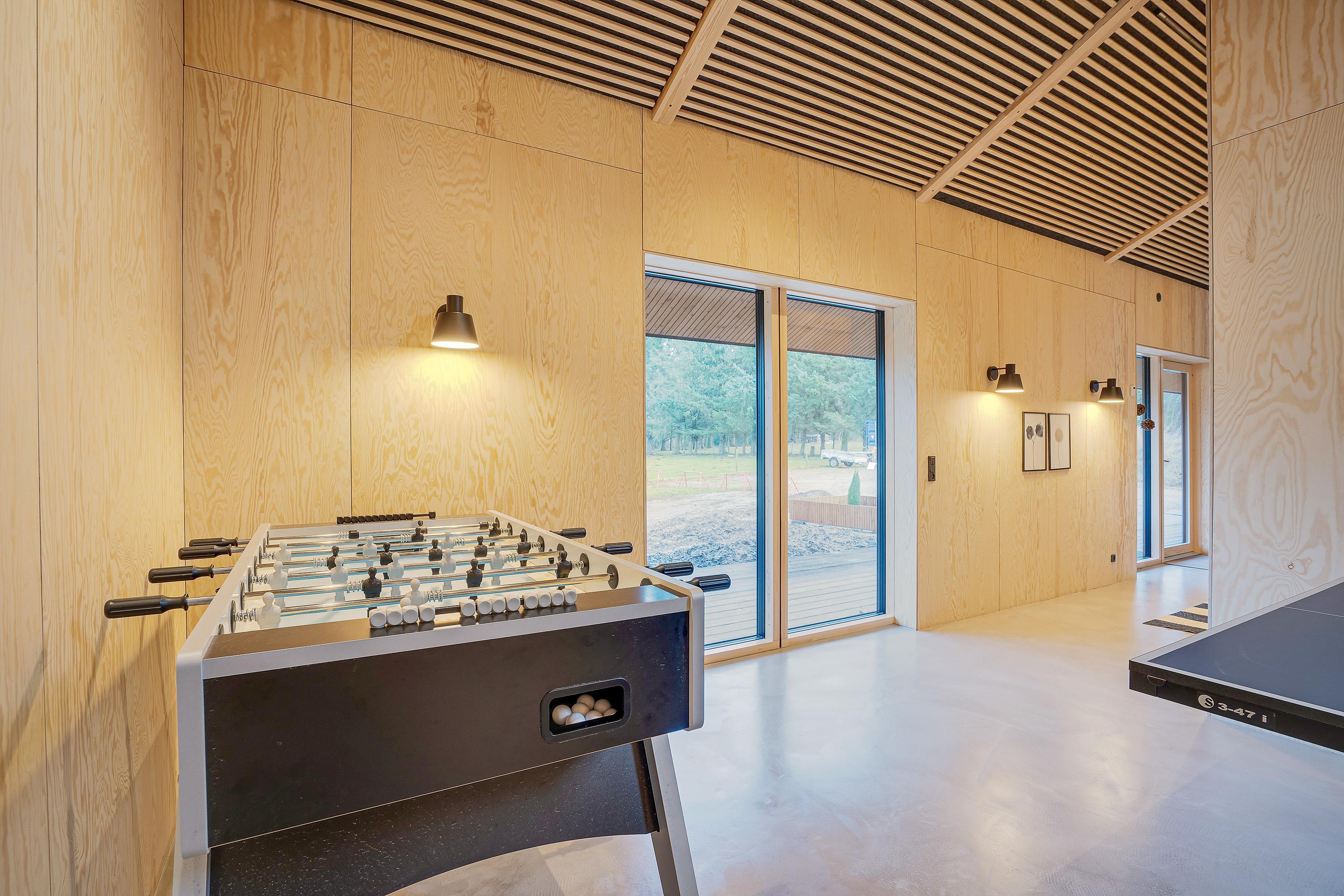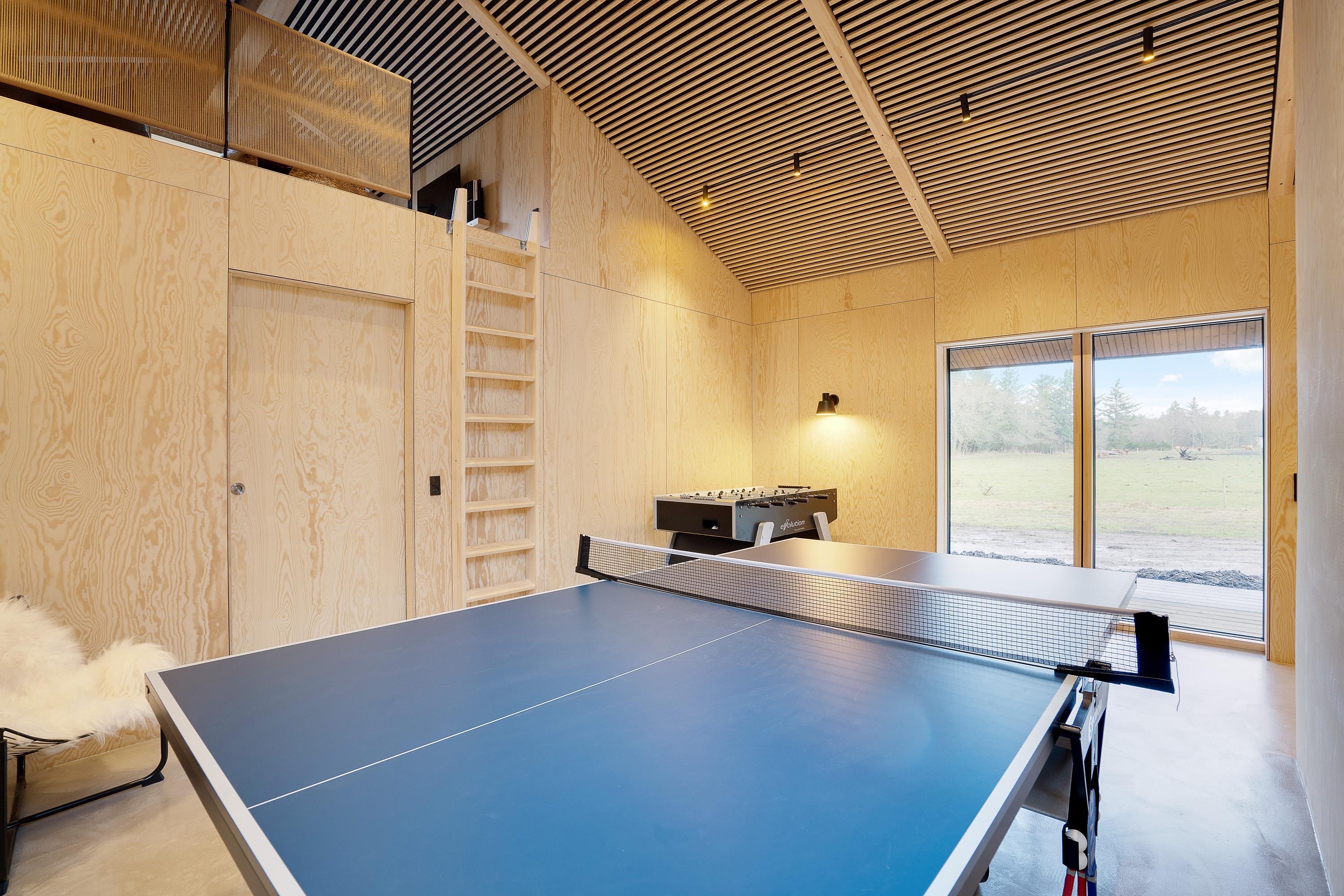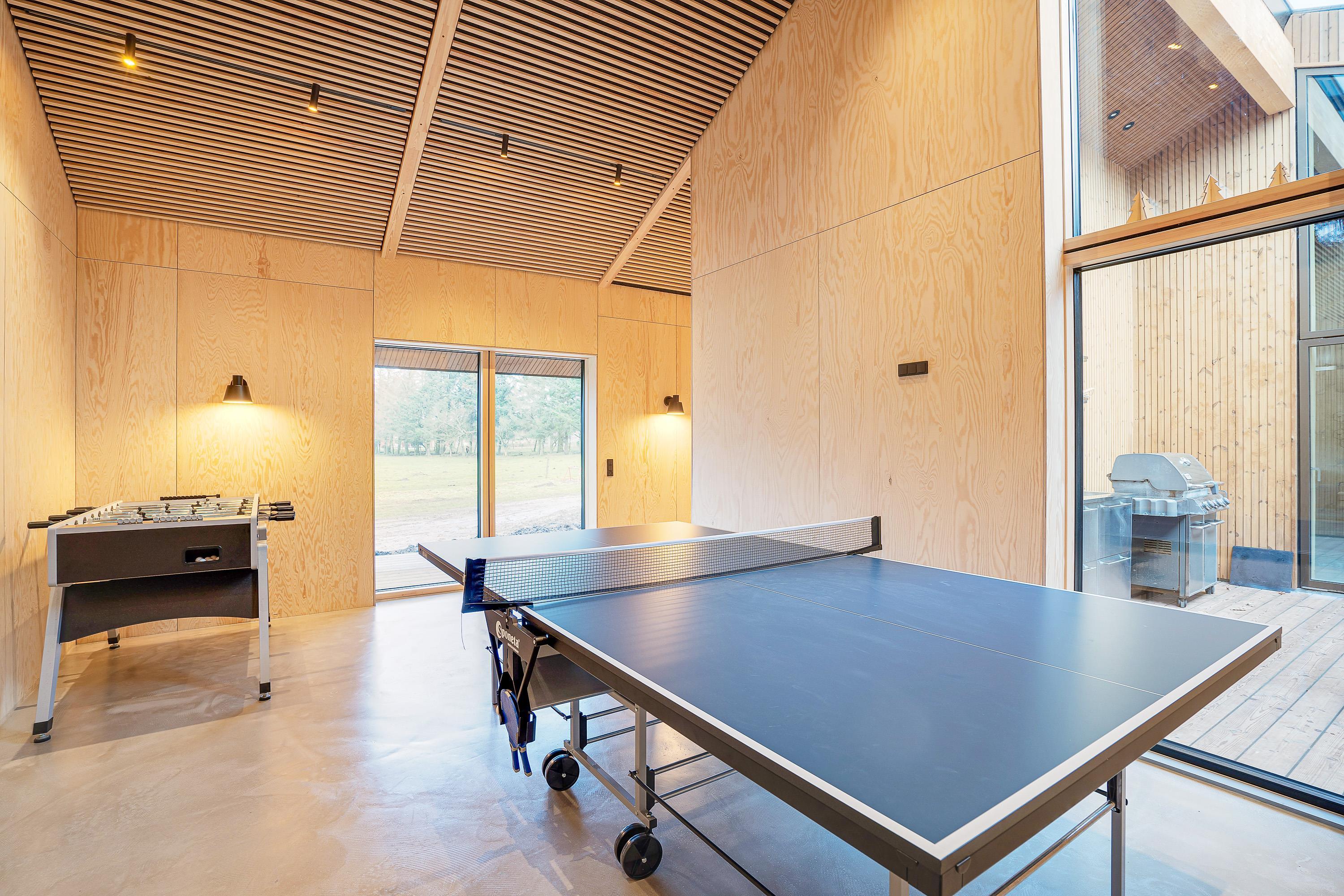 I det 190 kvadratmeter store sommerhus er der god plads til feriens gæster. Feriehuset rummer 4 gode soveværelser. Dertil er der et aktivitetsrum med både bordtennis og bordfodbold.