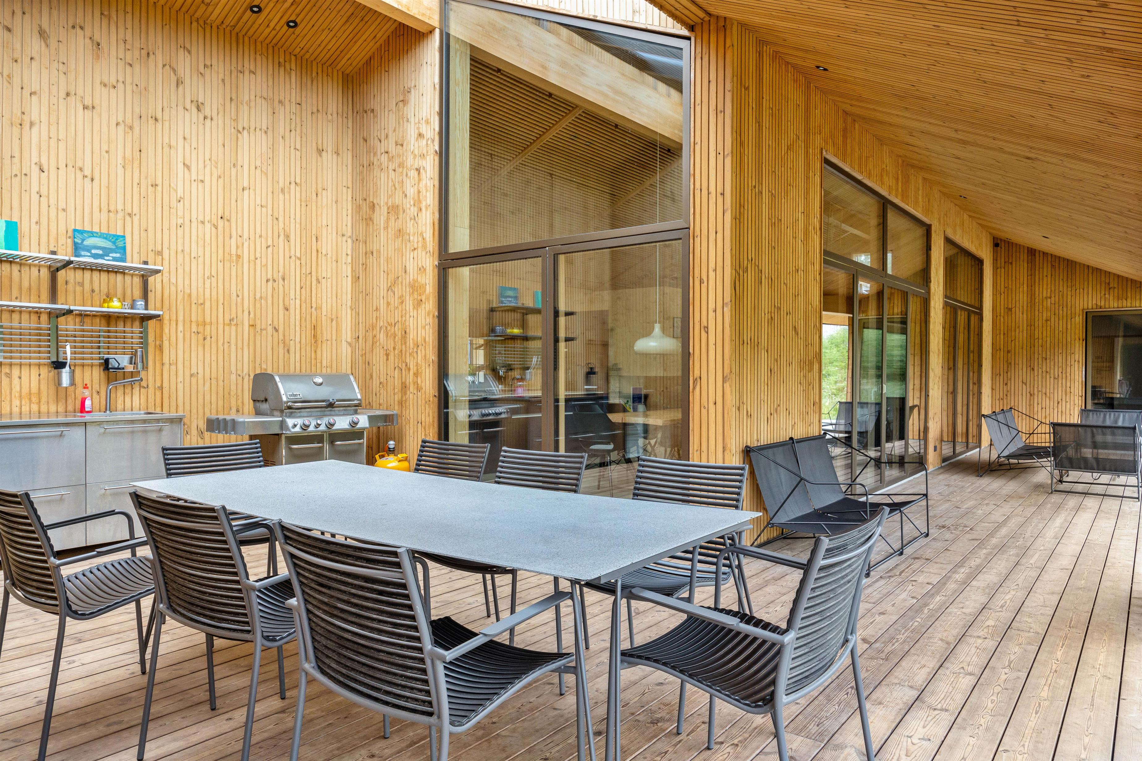 Sommerhuset har en skøn terrasse, der er delvist overdækket. På terrassen har I liggestole til rådighed, så I kan finde jer godt til rette på terrassen og få mest muligt ud af de solrige feriedage, som I kan afslutte med at lave en god grillmiddag med lækre bøffer på sommerhusets gasgrill.
