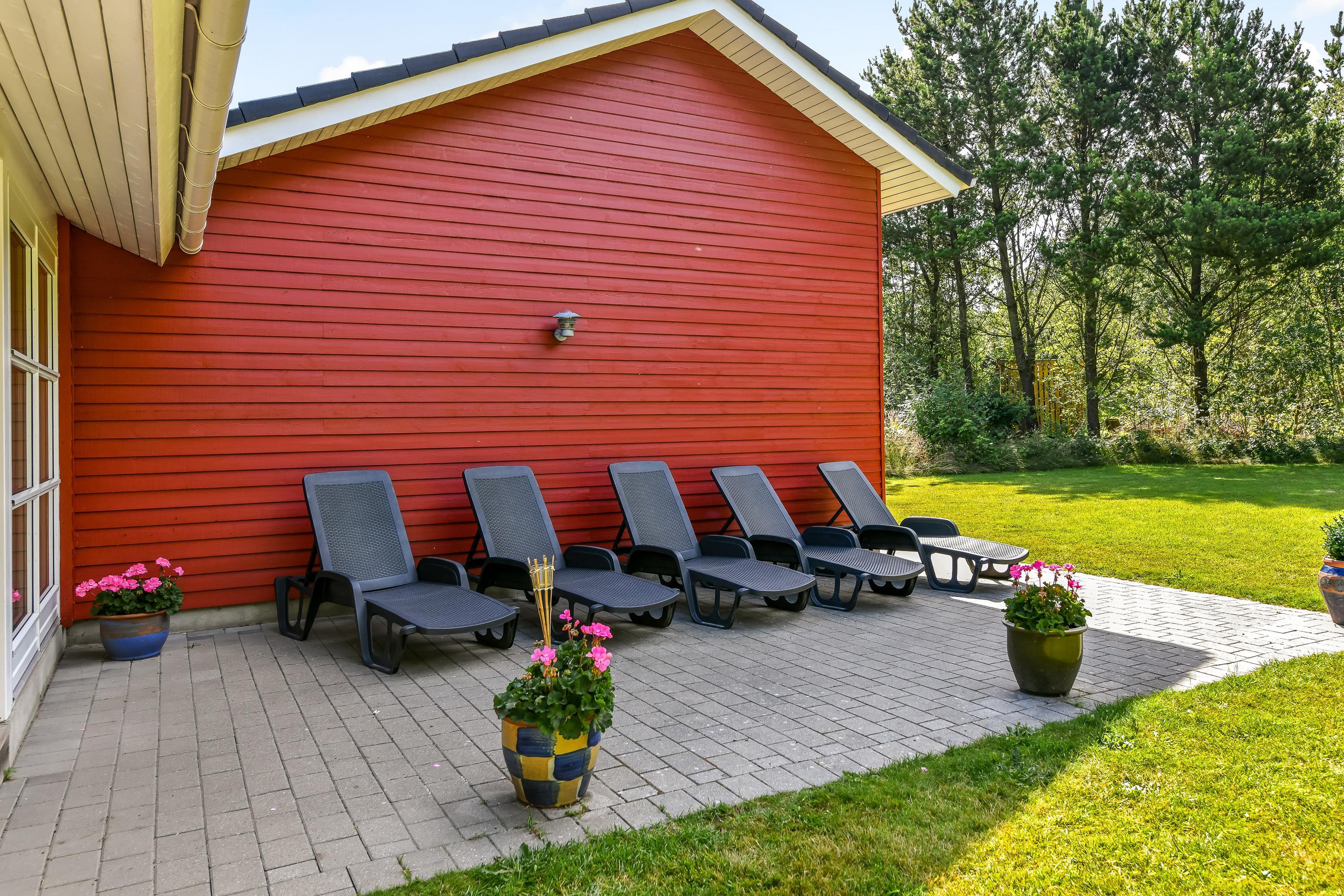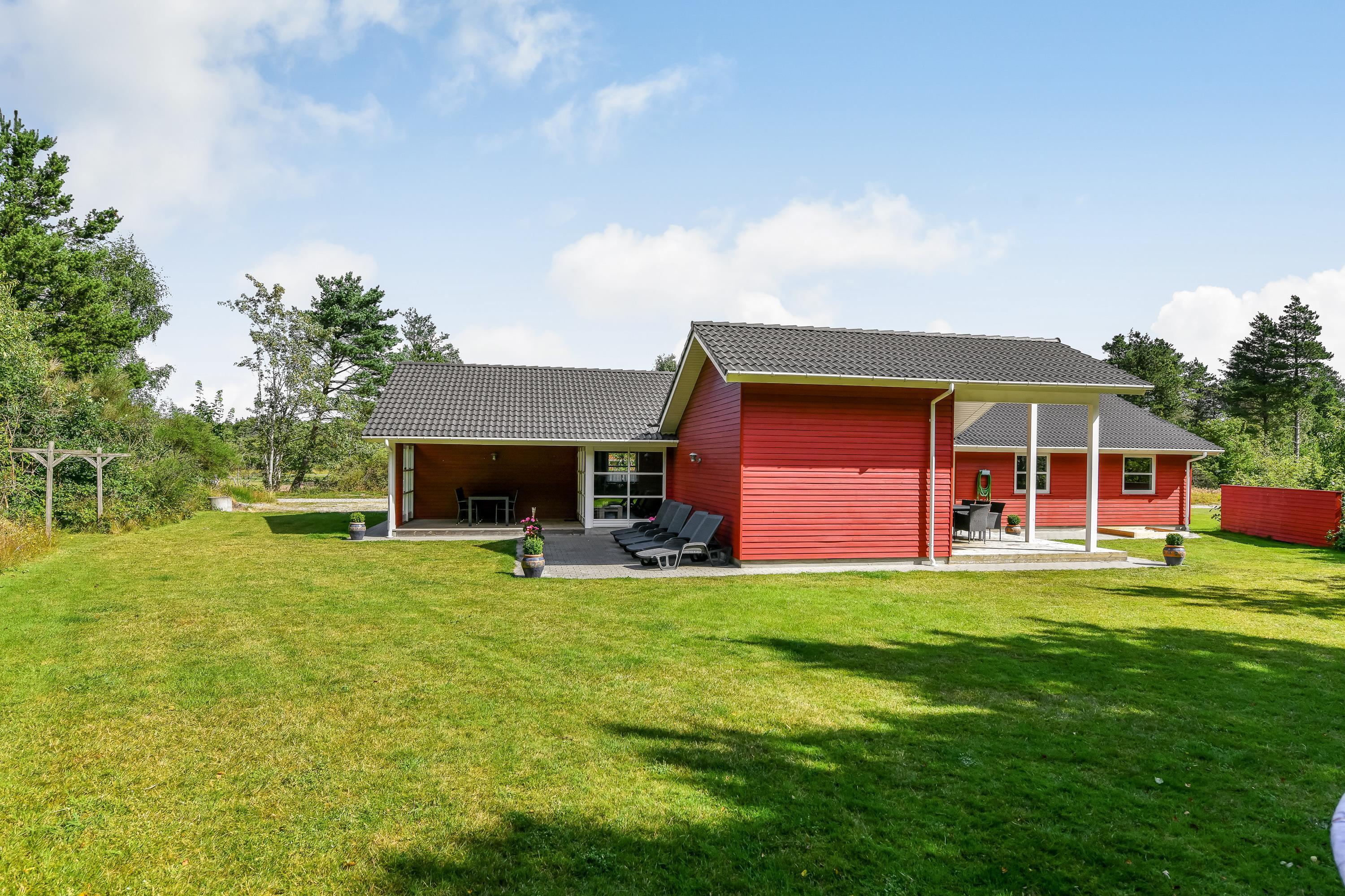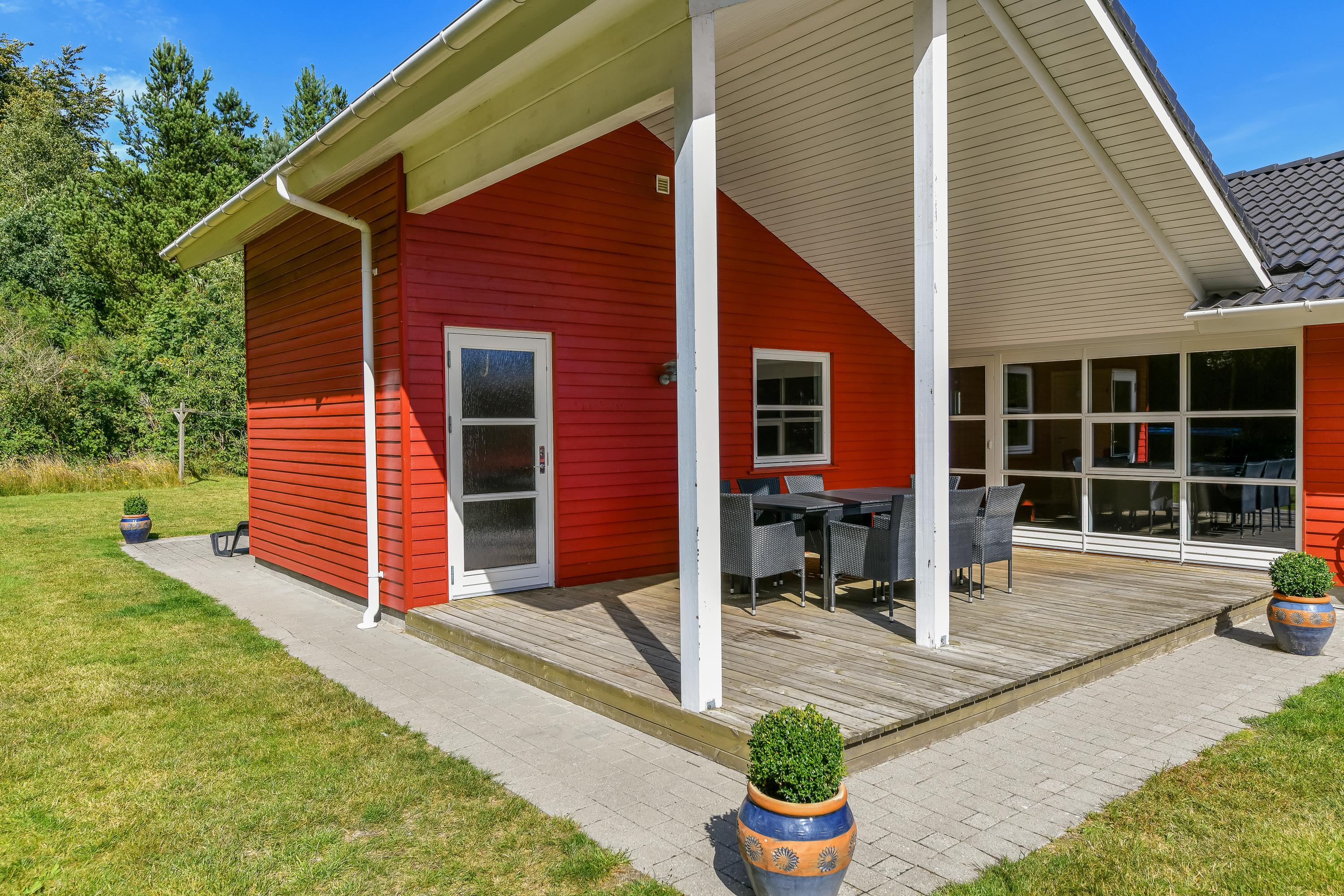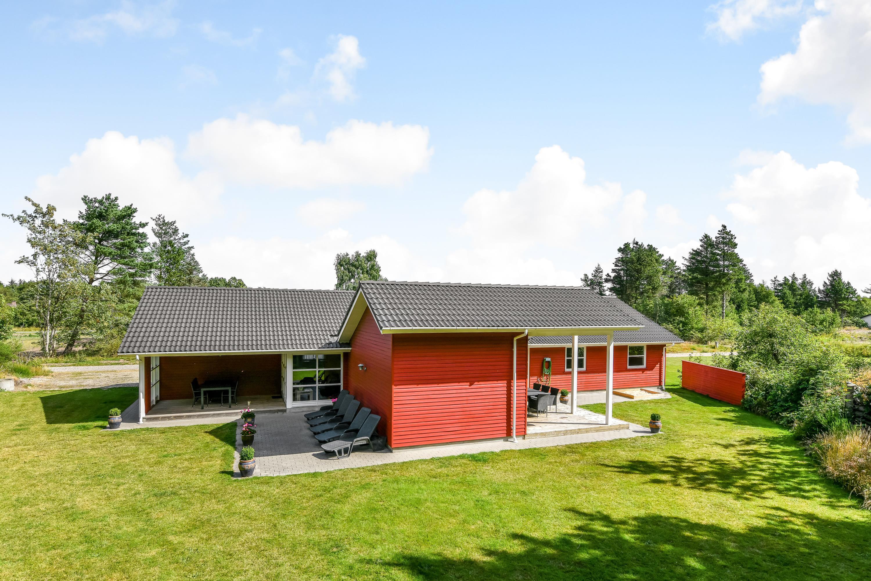 Den store grund er omgivet af høje træer, og I får en helt ugeneret beliggenhed - et godt udgangspunkt til en fredelig ferie. Begge terrasser er overdækket.