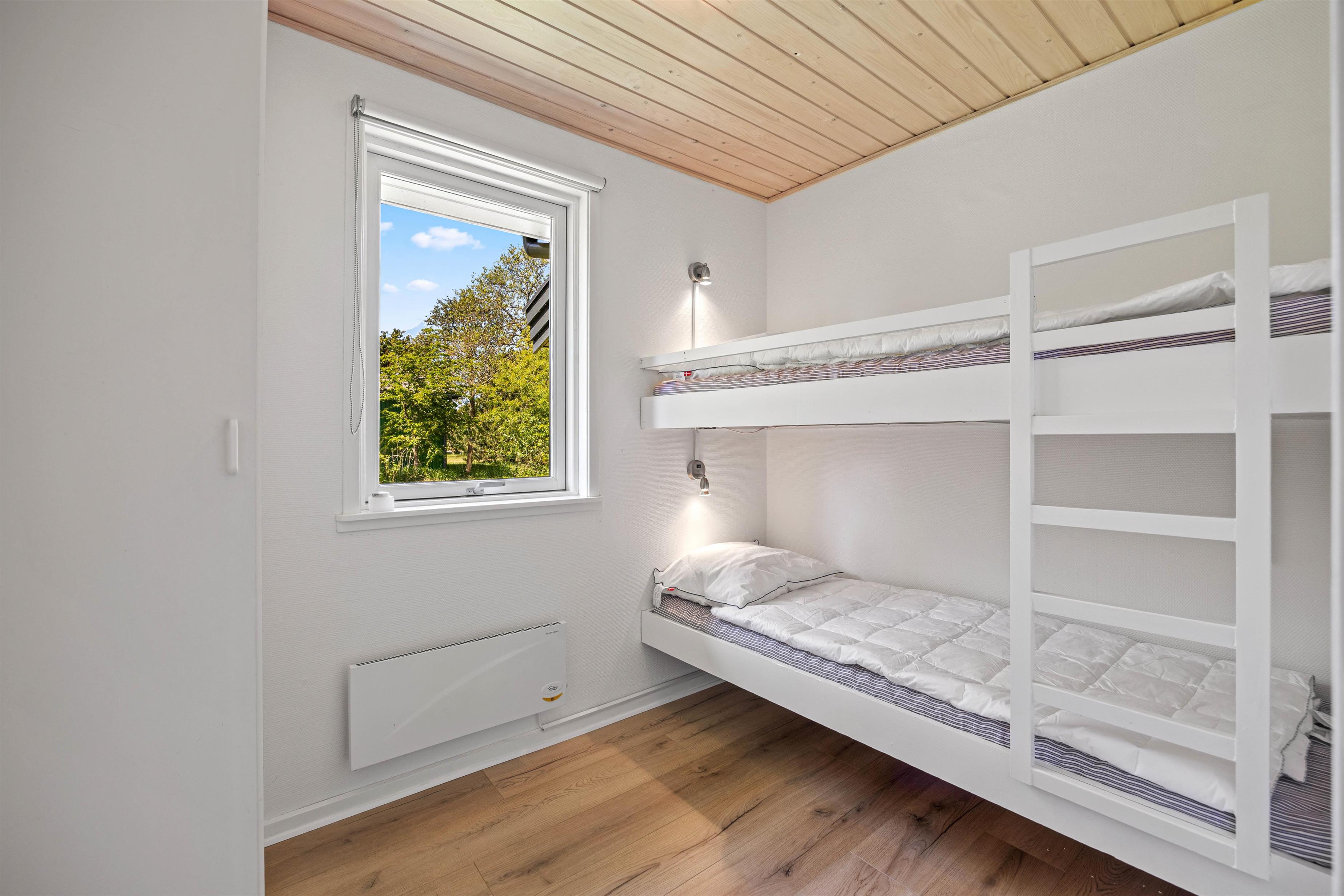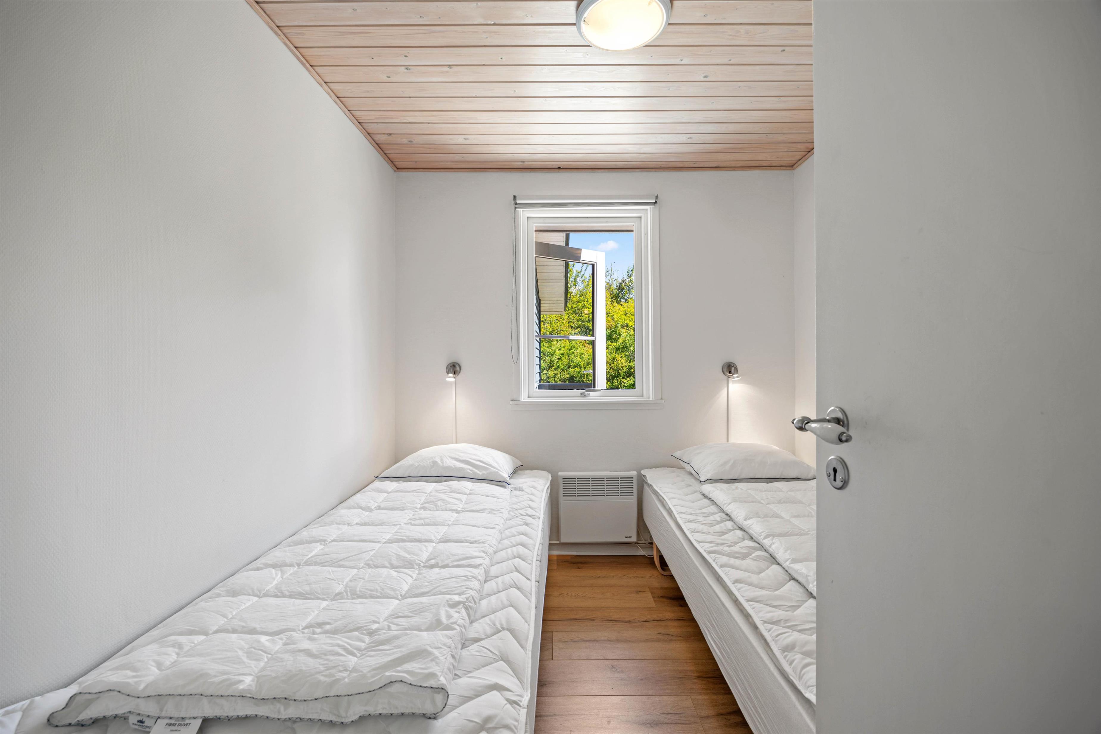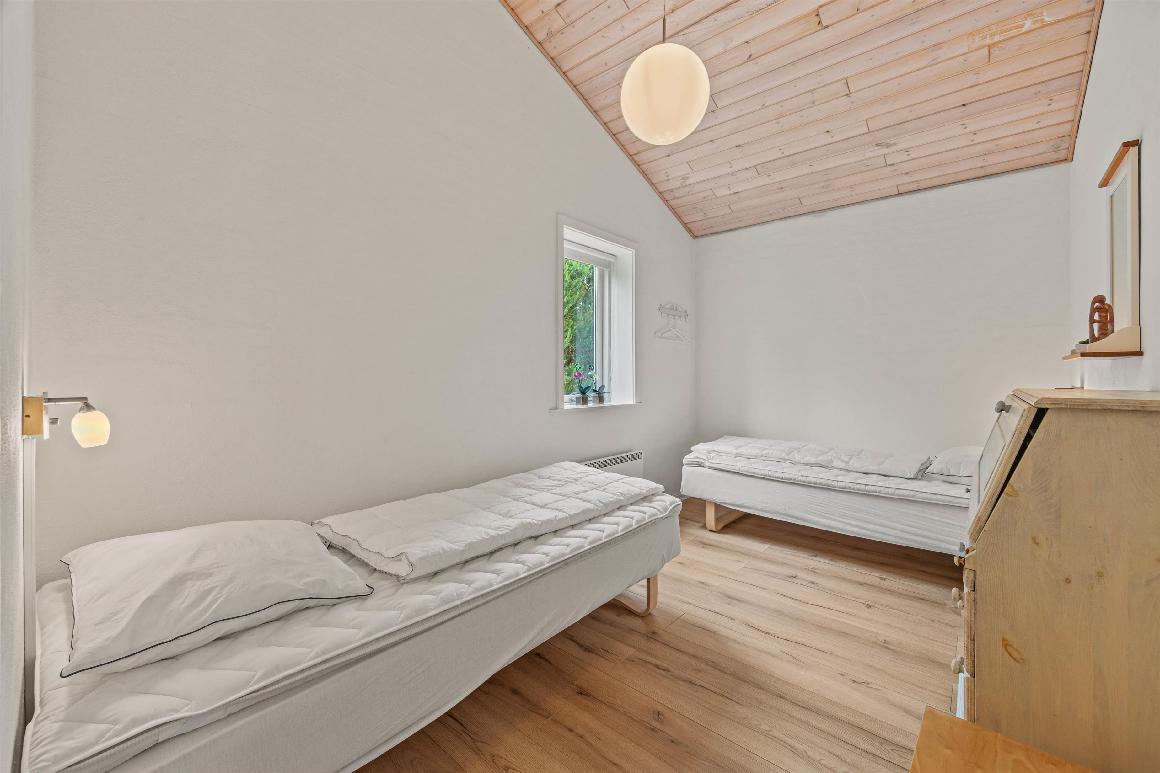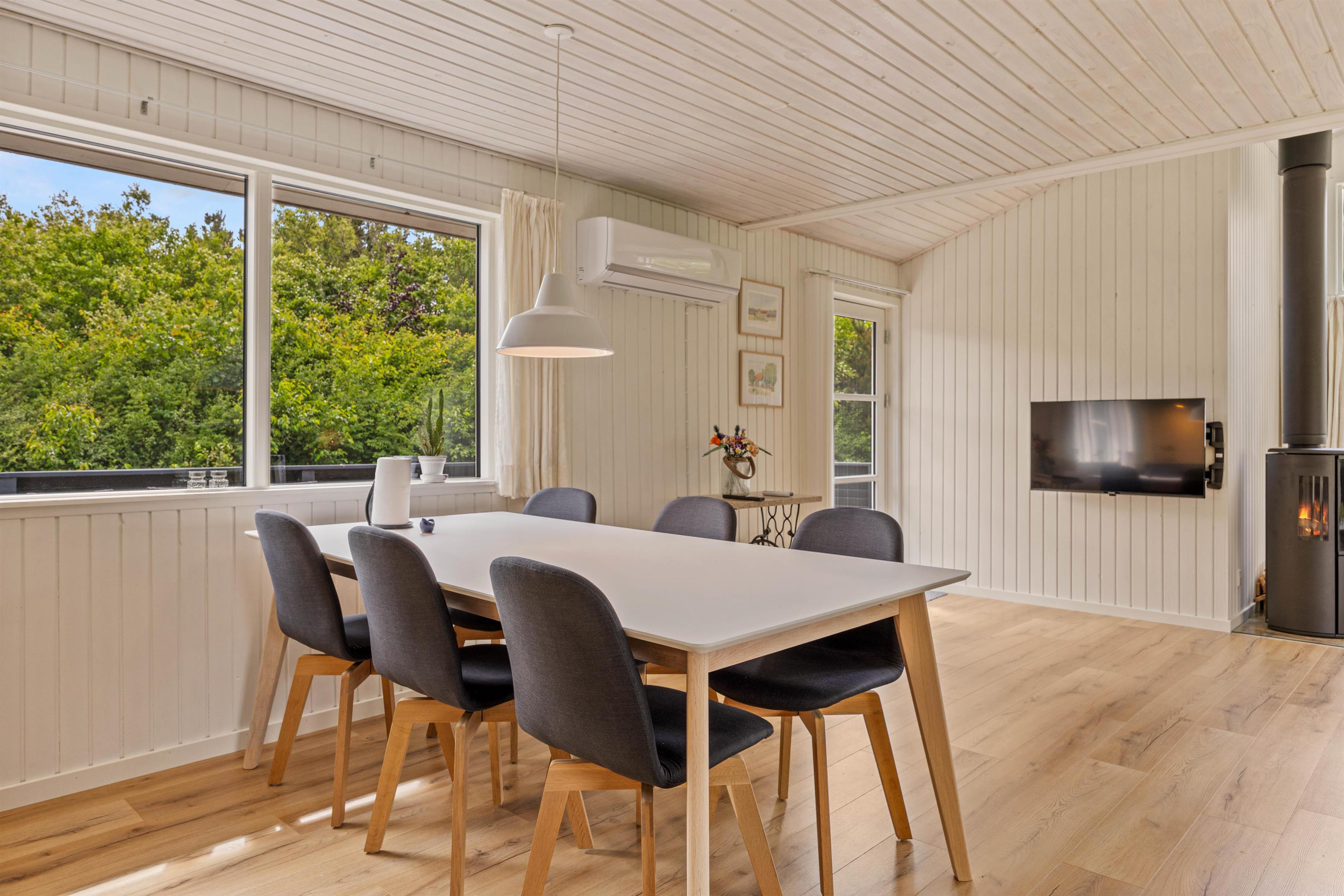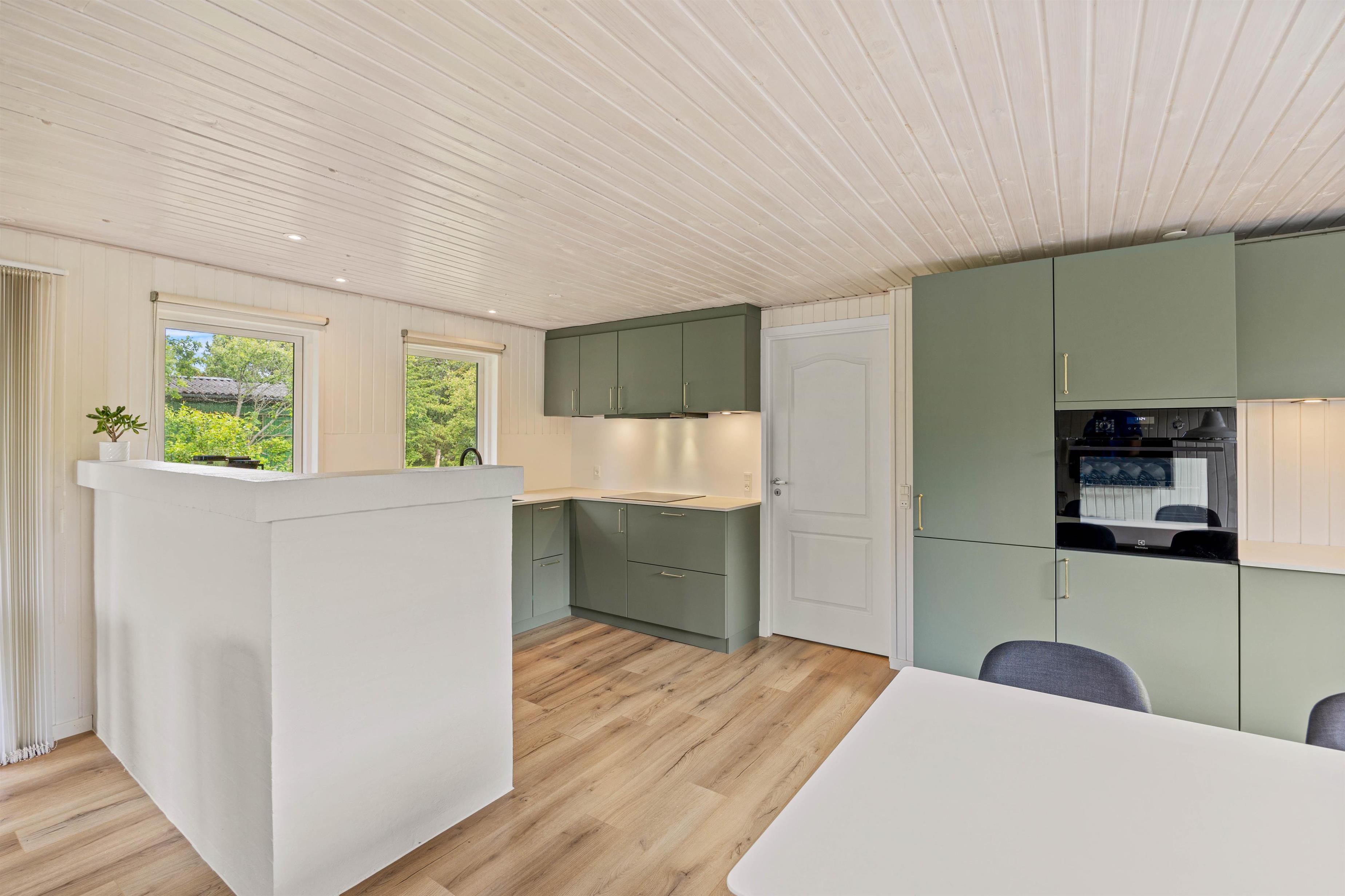 Samlingspunktet i feriehuset på Fuutvej 20 er det rummelige opholdsrum, hvor brændeovnen giver hyggelig varme på kølige dage og topper feriestemningen med en behagelig atmosfære. Det topmoderne og funktionelle køkken, som ligger i forlængelse af den hyggelige stue, byder op til samvær omkring den daglige madlavning. Soverpladserne til de tilladte 6 personer er fordelt på 3 soveværelser, et værelse med 1 dobbeltseng og 2 værelser med 2 enkeltsenge. Alle værelser har for nyligt fået nye gulve. En moderne varmepumpe er også tilgængelig, og badeværelset har praktisk gulvvarme. Feriehuset har i alt 2 badeværelser - hvoraf det ene har et spabad, som byder på ren afslapning. Feriehusets udstyr omfatter også opvaskemaskine, vaskemaskine og parabol til hyggelige tv-aftener, og kan I, skulle det være dårligt vejr, hygge jer sammen her.