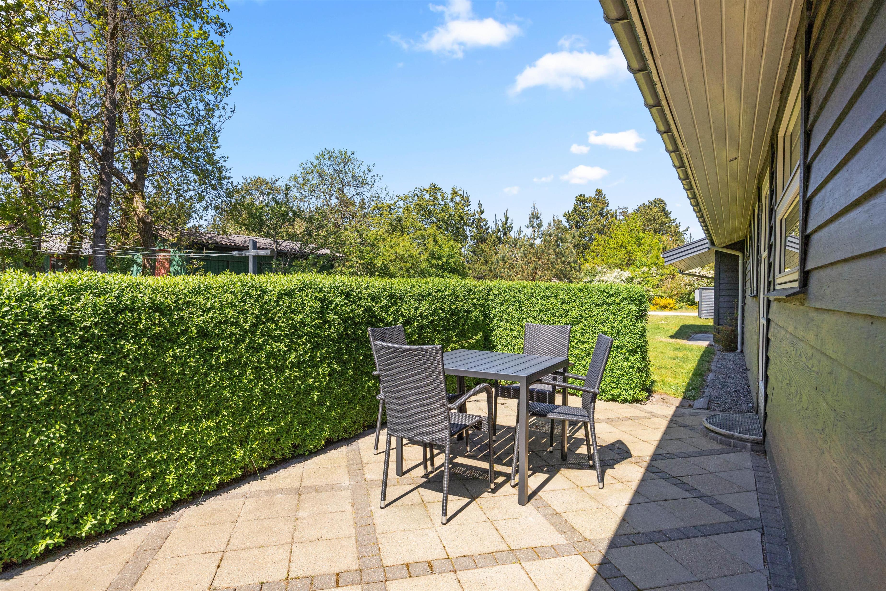Feriehuset byder på masser af muligheder for at nyde naturen. I kan slappe uforstyrret af på den beskyttede terrasse, grille eller bare nyde den friske luft i fulde drag. Plænegrunden indbyder børn og voksne til at lege eller træne med hunden. Det afskærmede udendørsområde gør feriehuset til et ideelt valg for alle, der sætter pris på privatlivets fred og nyder at tilbringe tid udendørs.