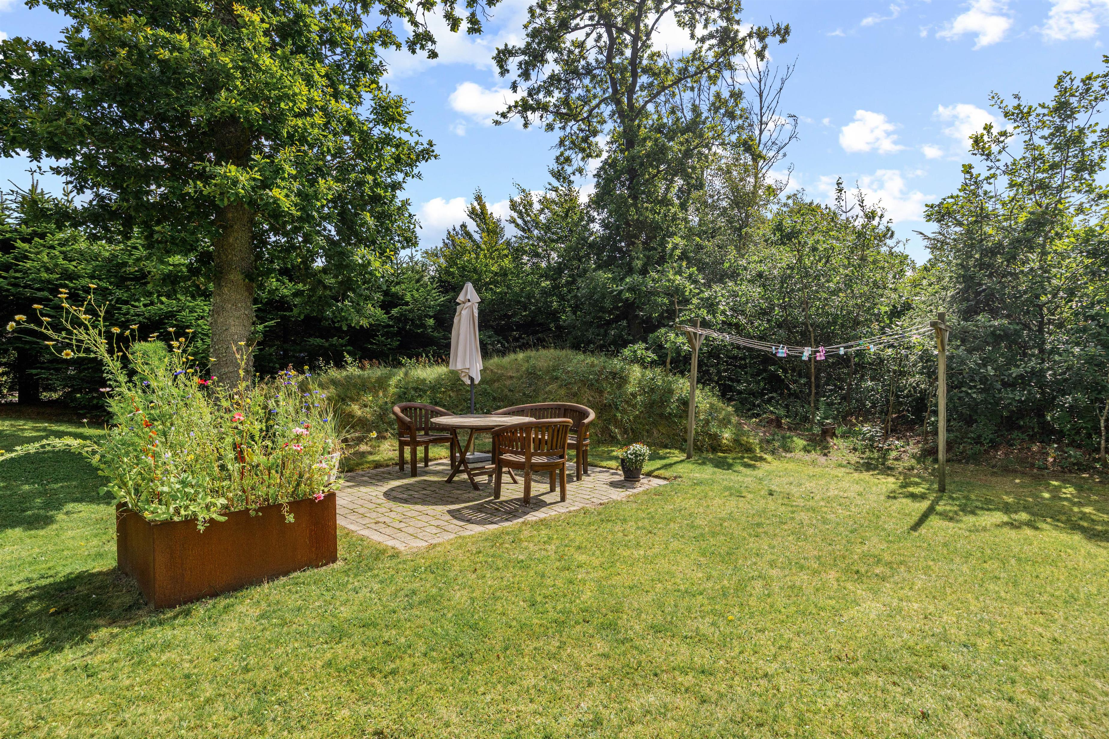 I haven er der tænkt på de yngste feriegæster. Til dem er der nemlig både et gyngestativ og en sandkasse, hvor de kan lege dagen lang. Som dagen lakker mod enden, kan I gøre klar til aftenens grillmiddag på terrassen, hvor I har en gasgrill til rådighed.
