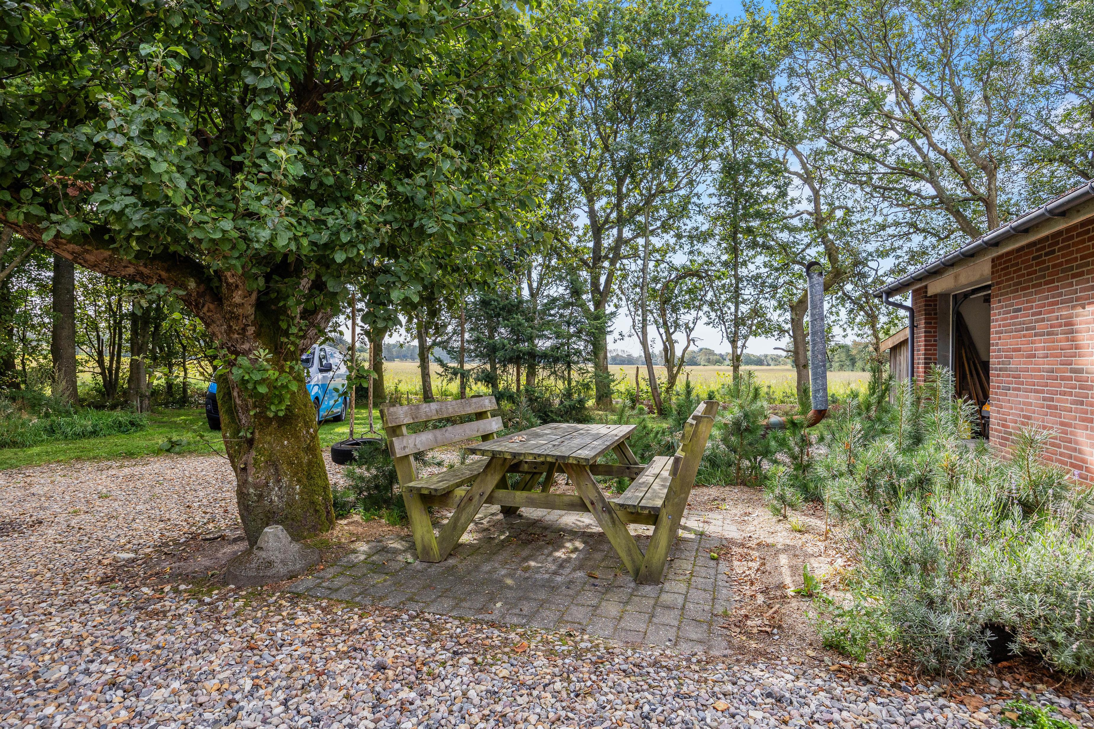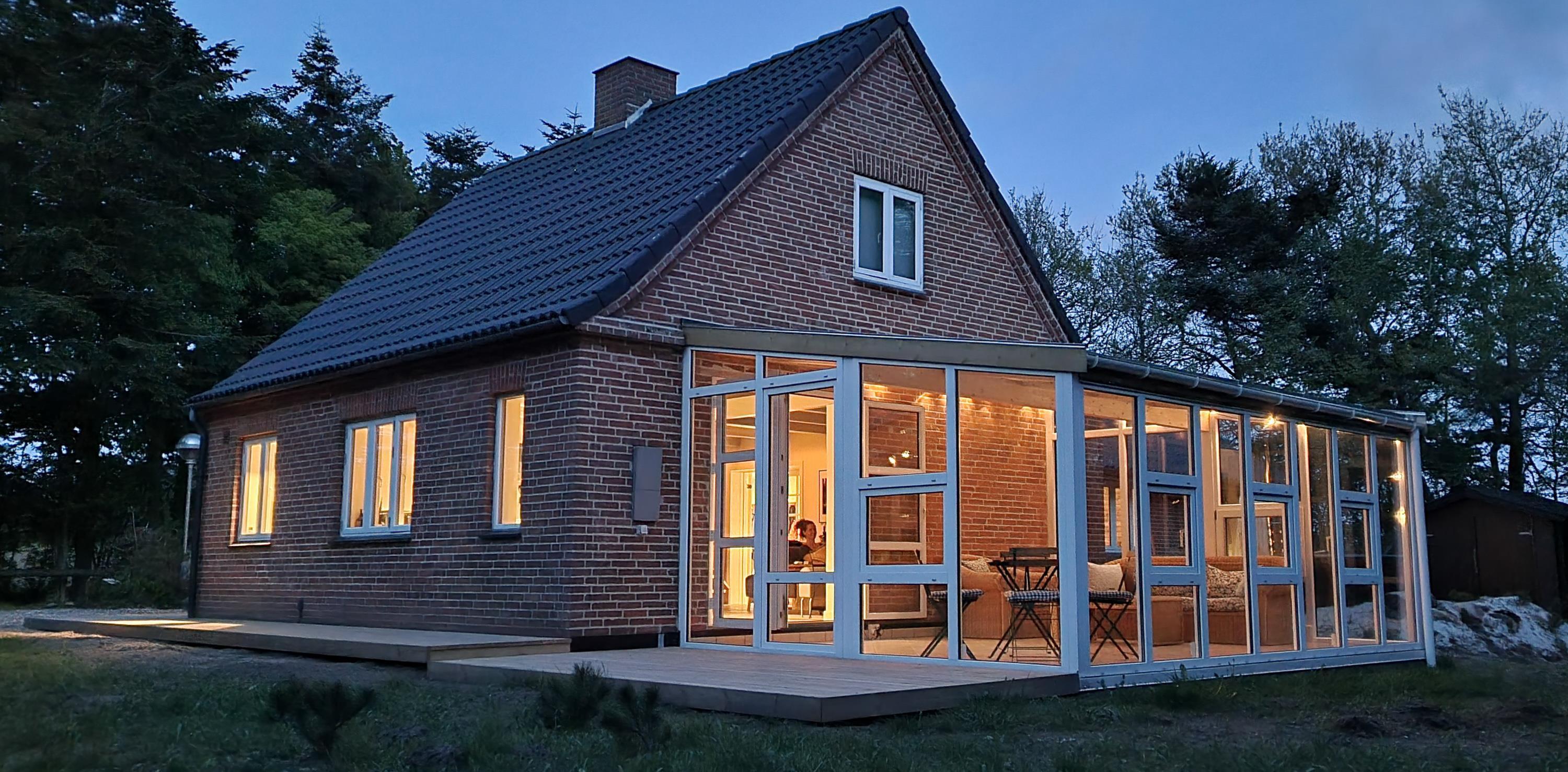 Fra opholdsrummet kan I træde ud i den hyggelige udestue. Herfra har I en skøn udsigt til den smukke omkringliggende natur, og her kan I nyde en god bog, et godt glas vin eller samles til et spil kort omkring bordet.